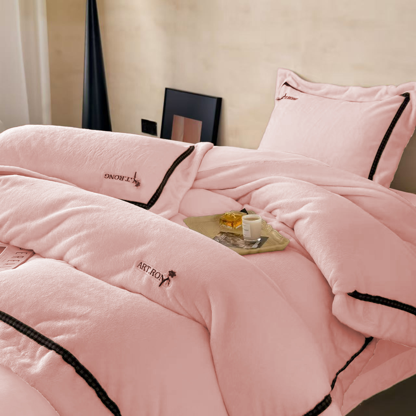 (总)玖玖爱家纺 2026新款波尔卡全棉全工艺AB版刺绣四件套,粉豆沙,暖米,浅绿,银灰