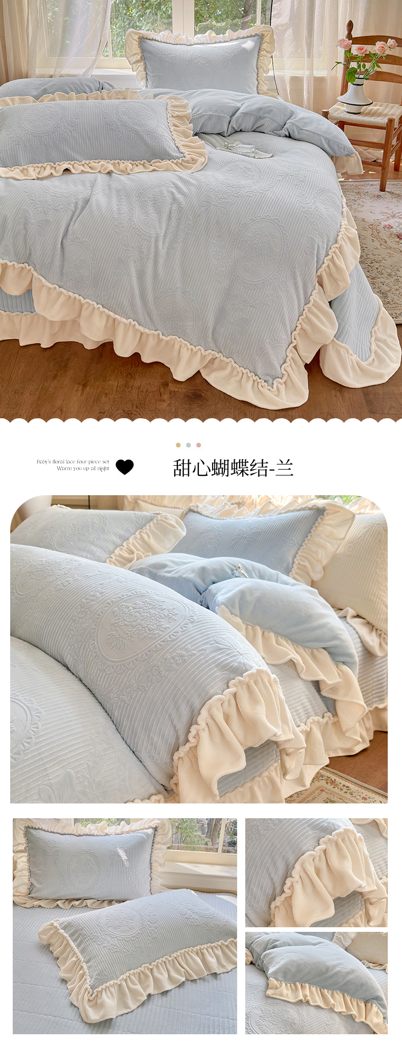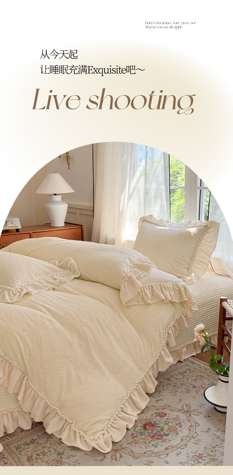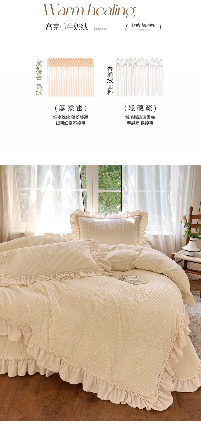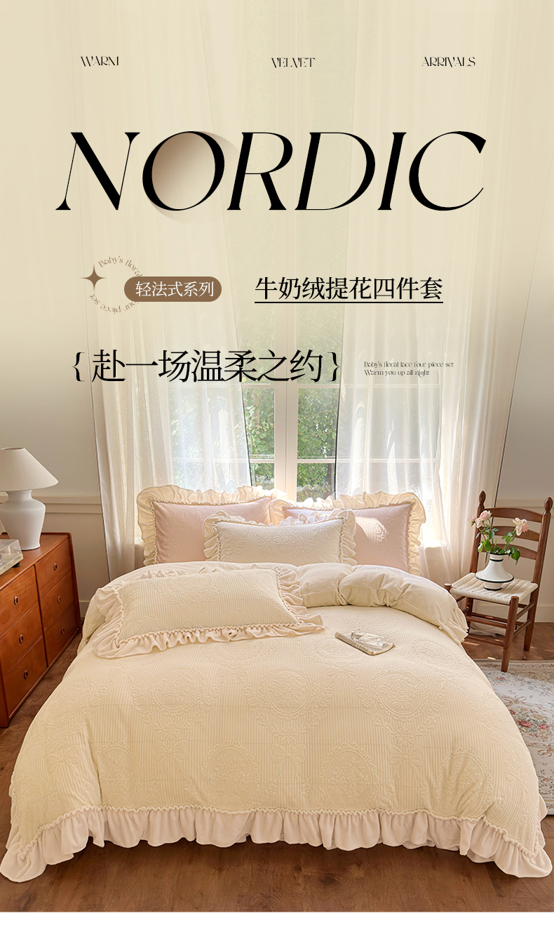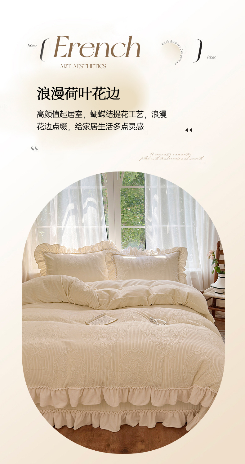 当前位置: 91家纺网 > 商品网购 > 床品套件 > 四件套 > 牛奶绒四件套 > 乐野家居 2025年新款轻法式甜心蝴蝶结高克重提花牛奶绒床盖四件套 甜心蝴蝶结-白