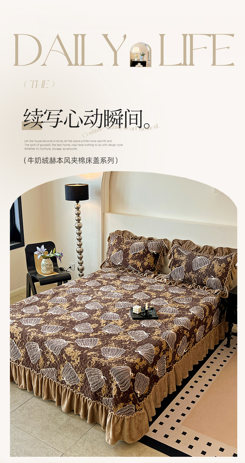 (总)鹿辉家居(原吉欧力) 2025新款牛奶绒赫本风夹棉床盖三件套,豹纹-陀,蝴蝶-陀,花海-绿,南瓜-咖,圈点-咖,雅韵-米,樱花-粉,知叶-灰,知叶-咖,组合图