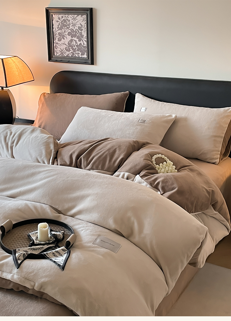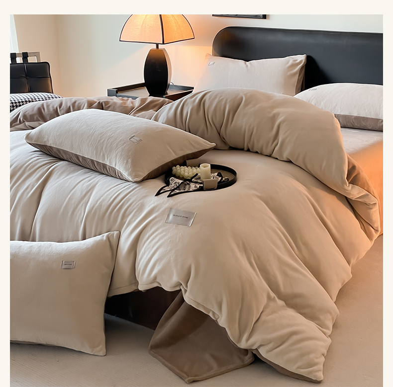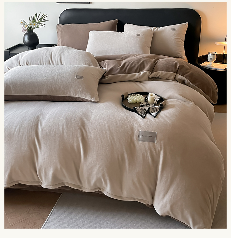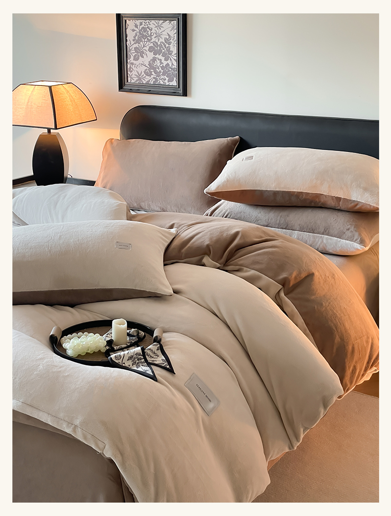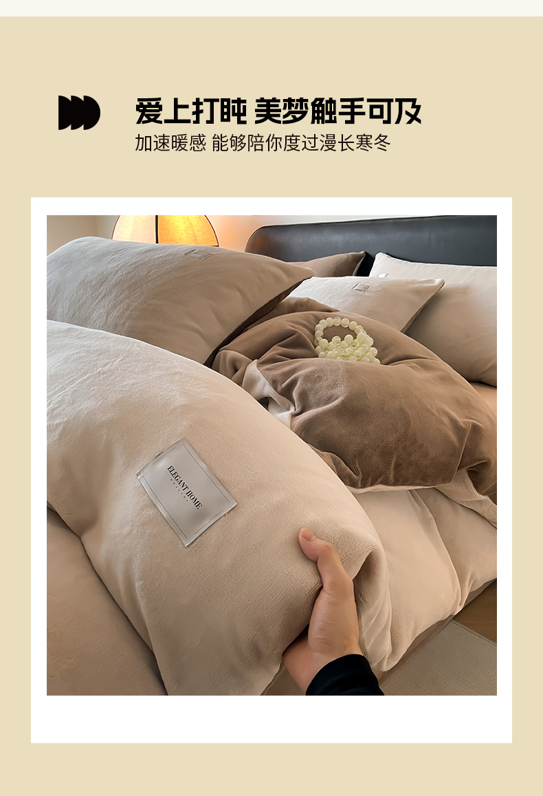 当前位置: 91家纺网 > 商品网购 > 床品套件 > 四件套 > 牛奶绒四件套 > ab家纺 2025新款保暖舒适纯色牛奶绒四件套 米咖