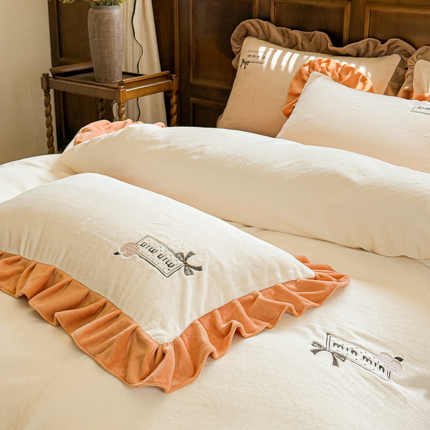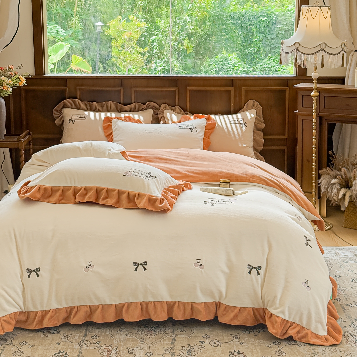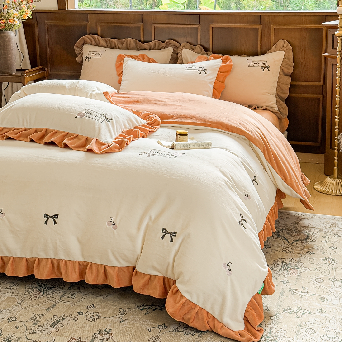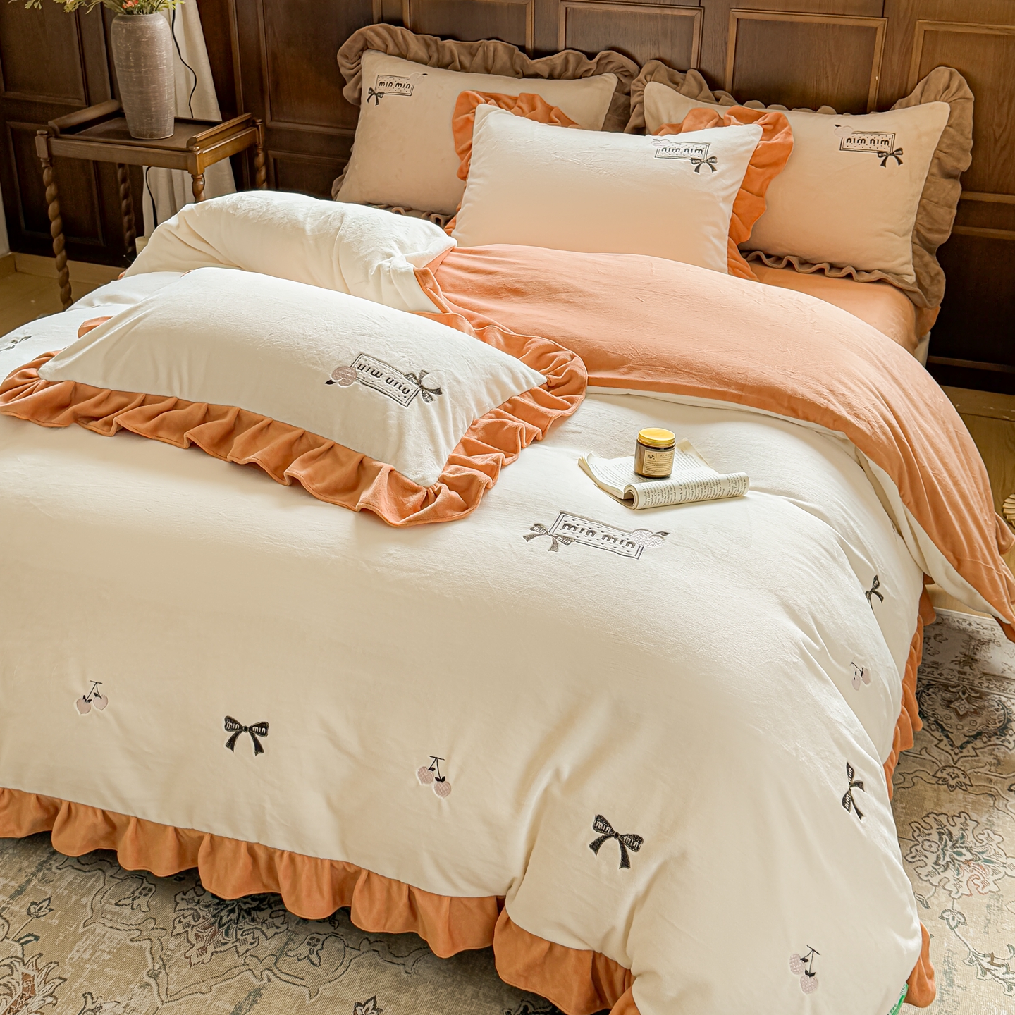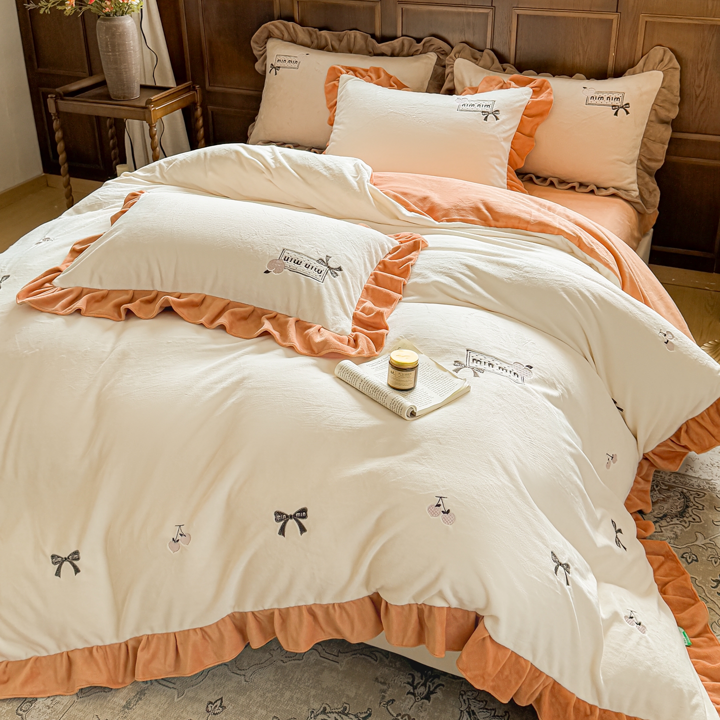 商品名称:(总)阿那亚 2025新款加厚煦暖绒牛奶绒四件套韩版花边四件套刺绣四件套
