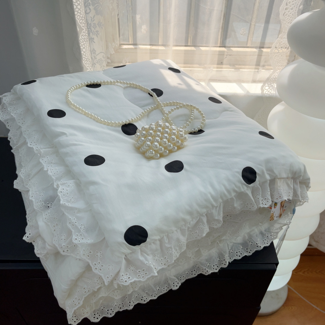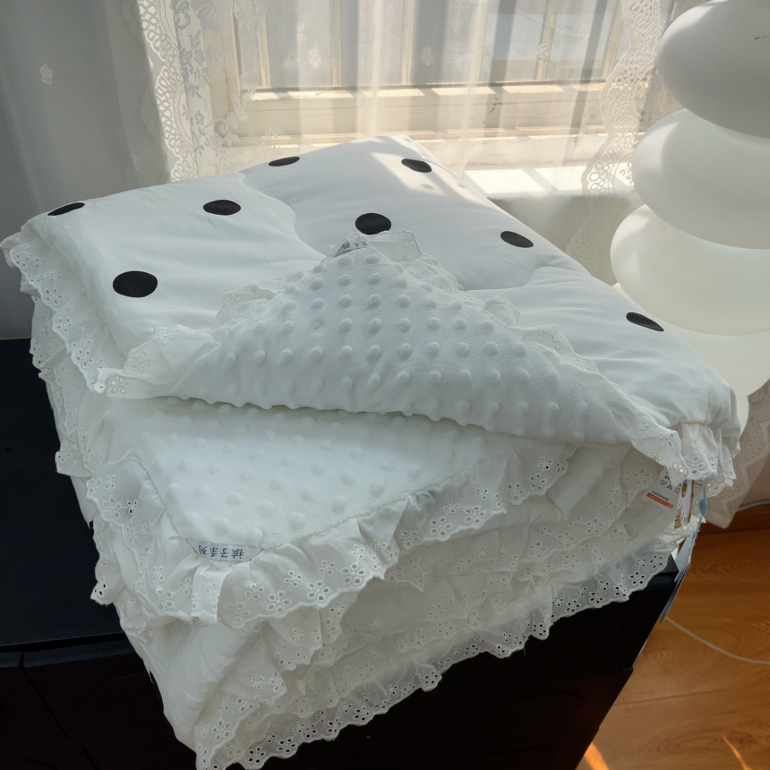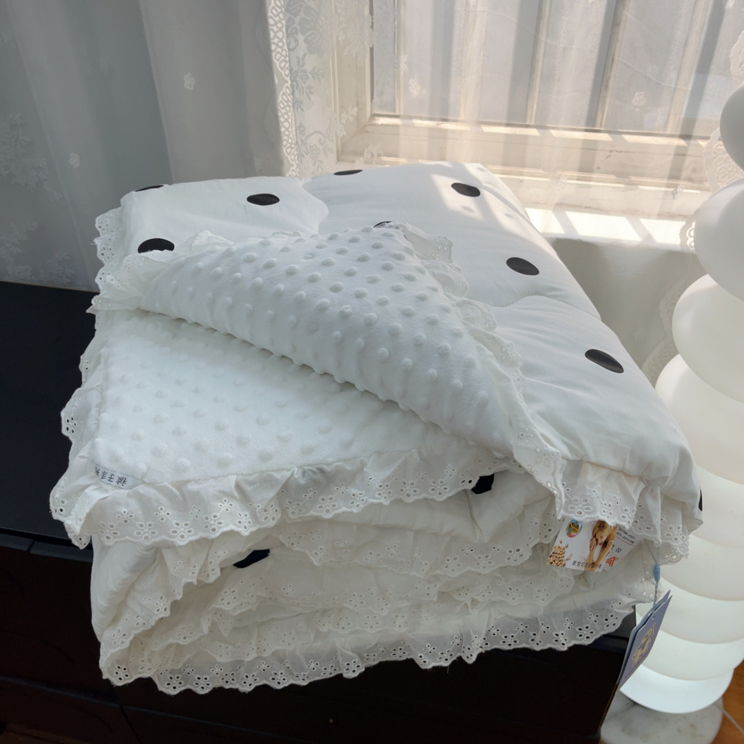 暖居 2025新款纯棉花边款春秋豆豆被四季通用 波点白