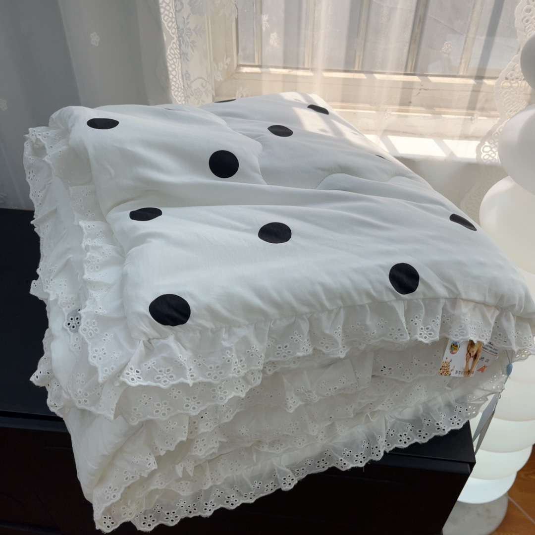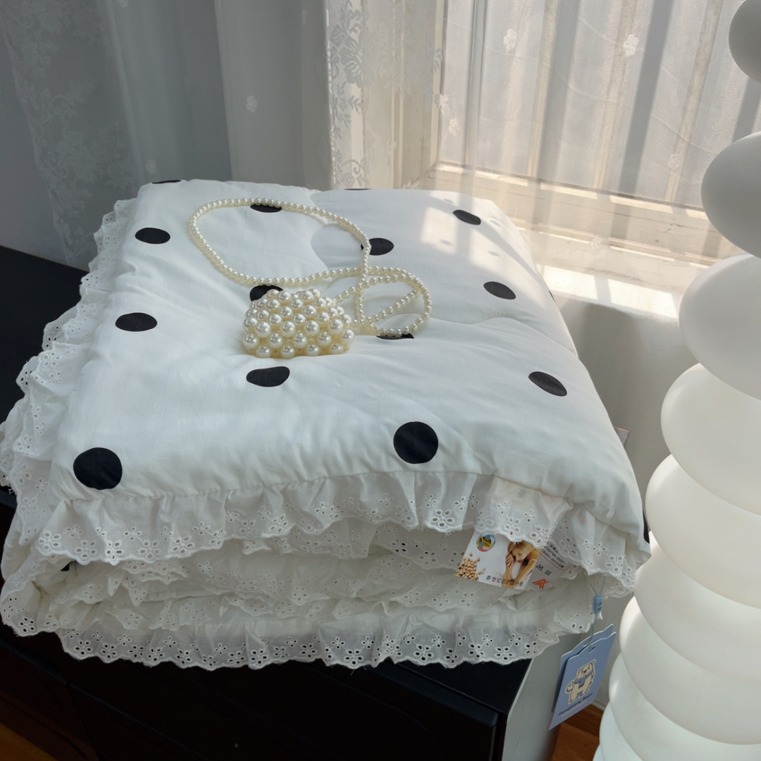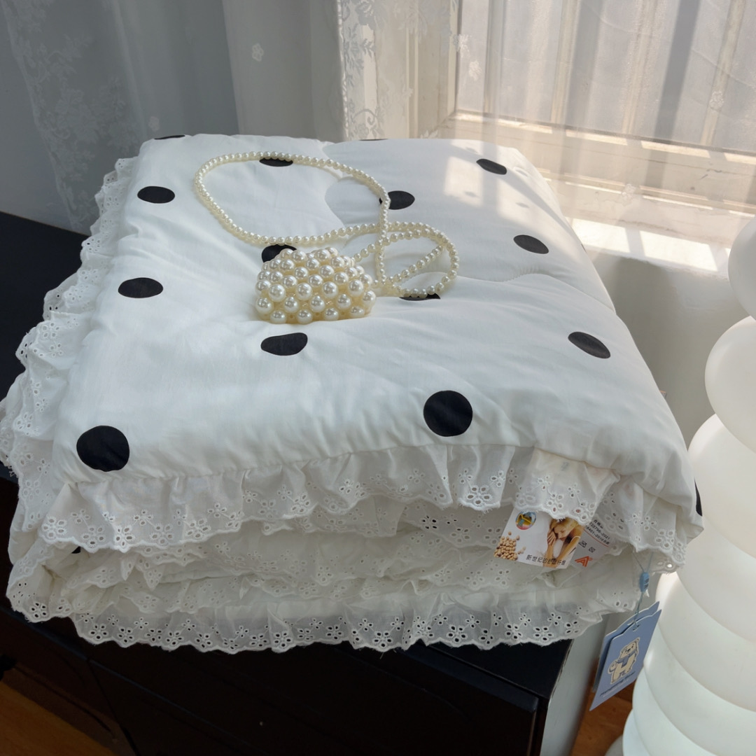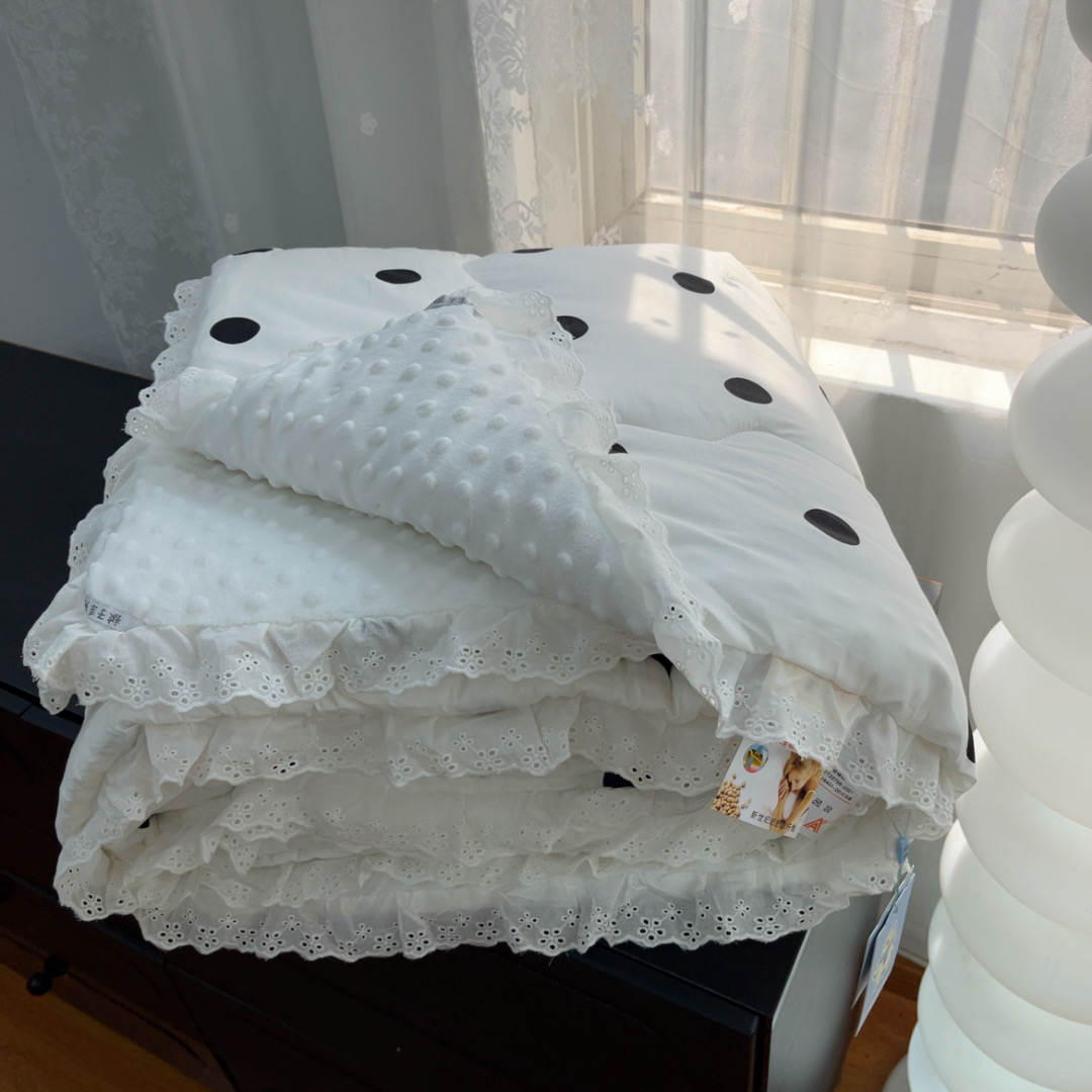 暖居 2025新款纯棉花边款春秋豆豆被四季通用 波点白