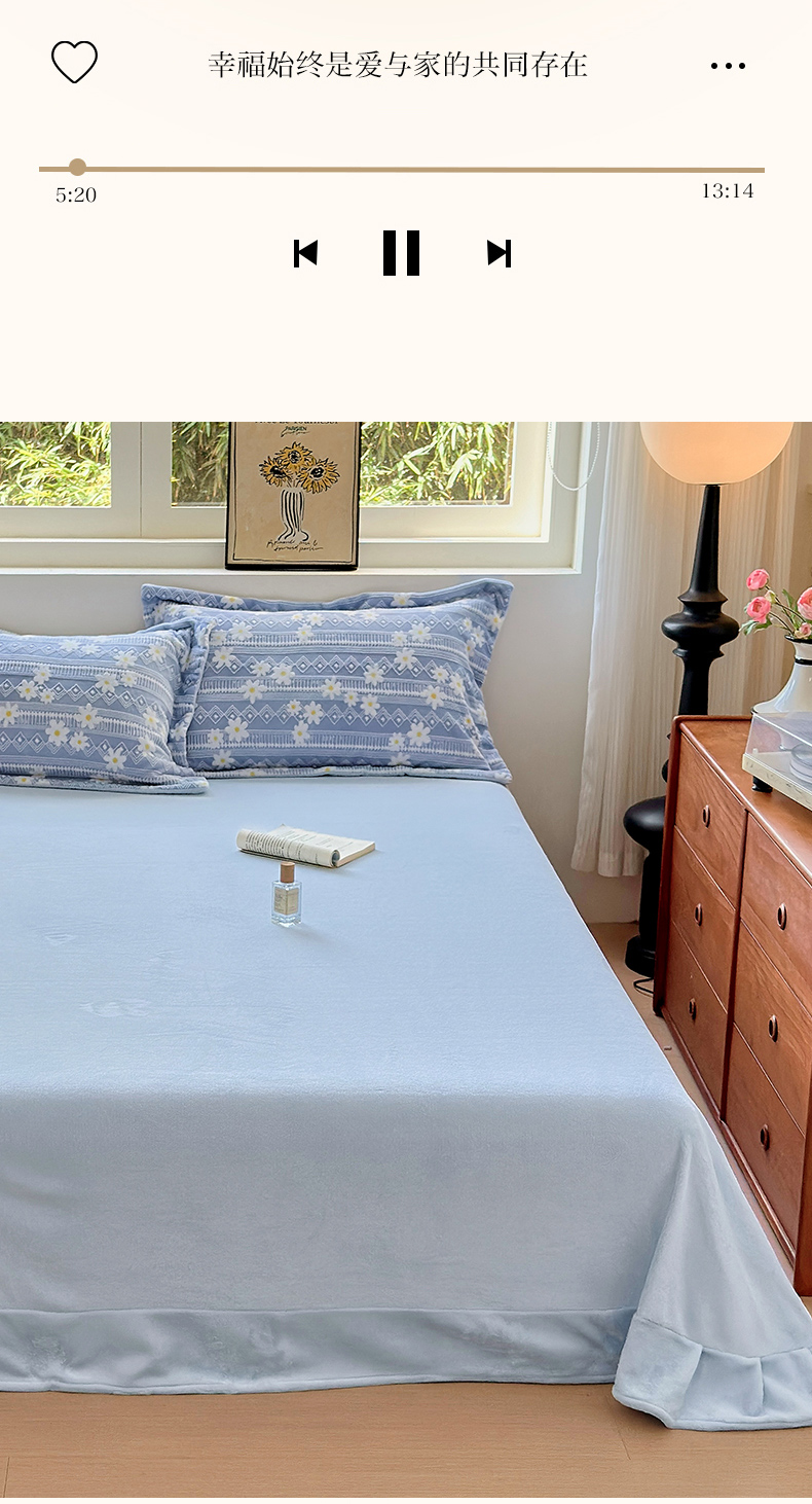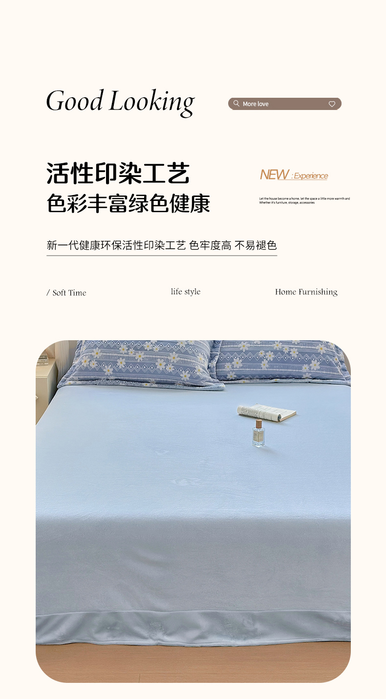 商品名称:娜娜 2025新款高克重牛奶绒百花齐放系列单品床单 天空蓝