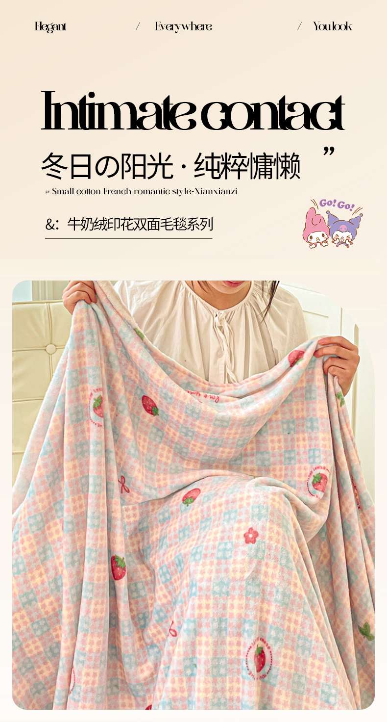 商品名称:Mata蔓塔家 2025新款四季款双面印花牛奶绒午休毯毛毯毯子空调毯 甜茶小美