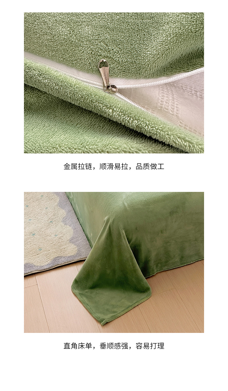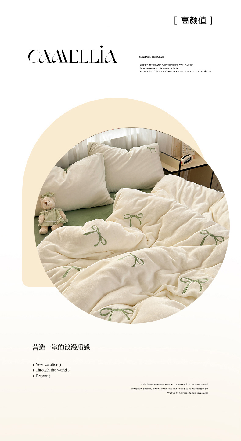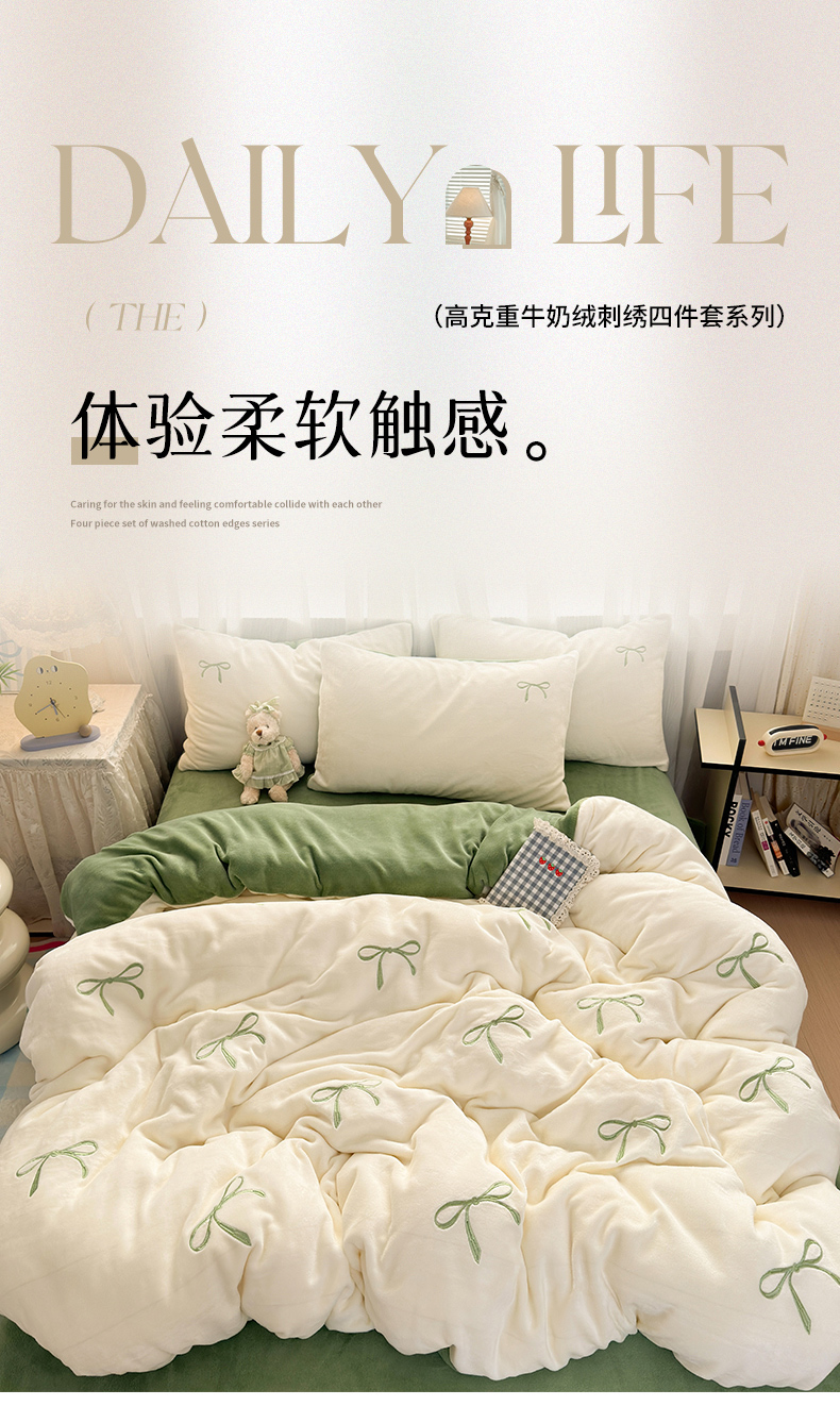 商品名称:娜娜 2025新款高克重牛奶绒同心结系列四件套 同心结奶昔白+绿