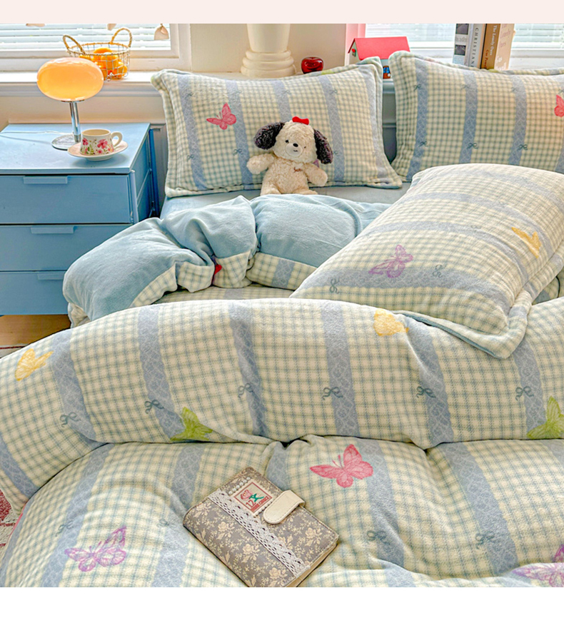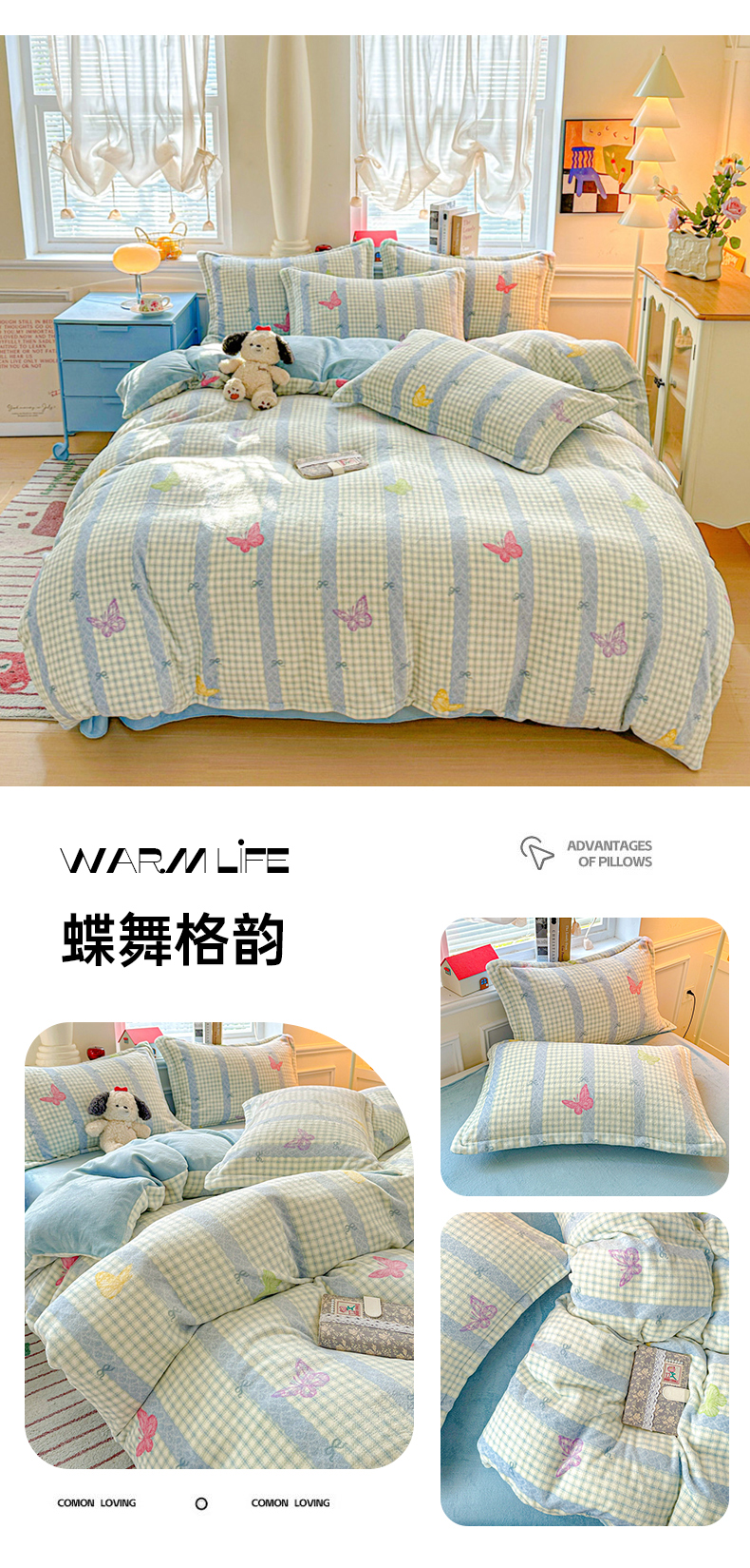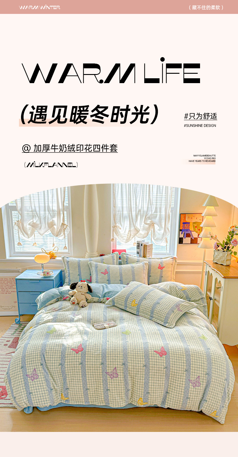 商品名称:卡普家居 2025新款加厚保暖牛奶绒系列--四件套 蝶舞格韵