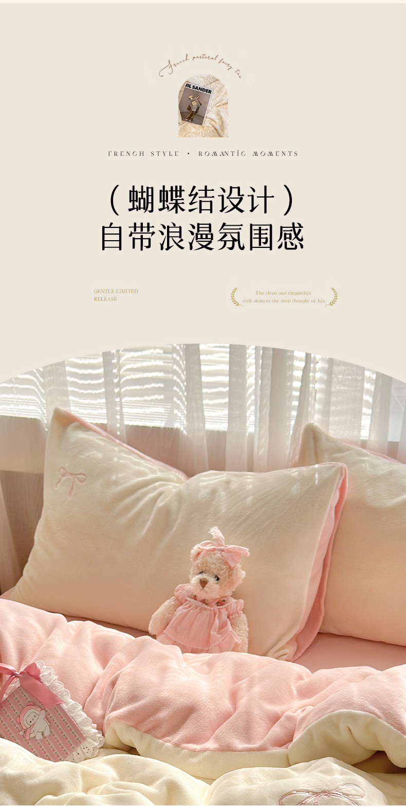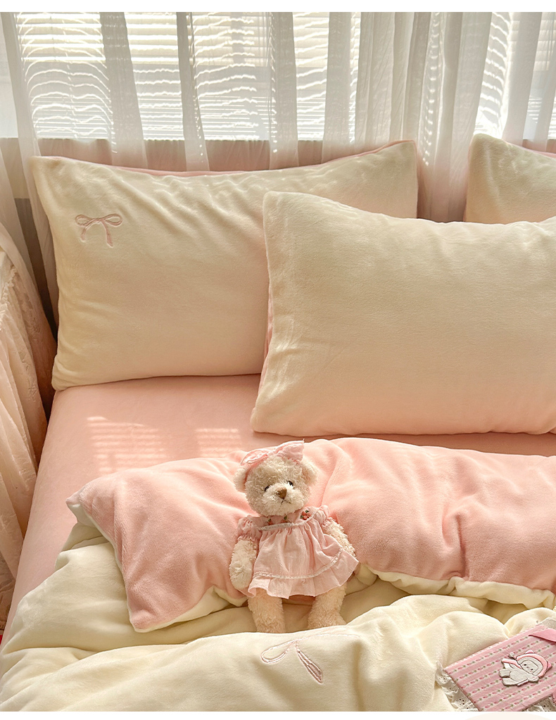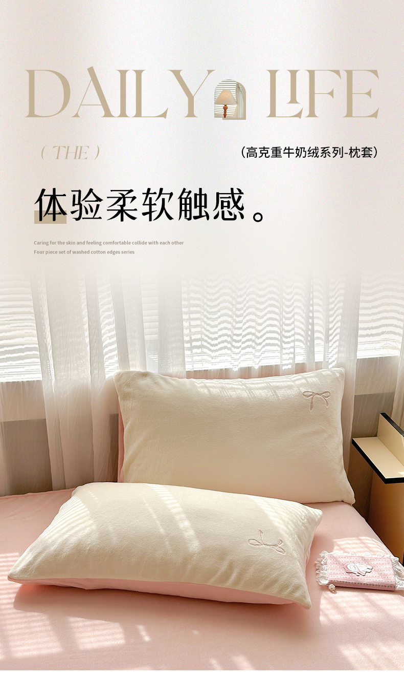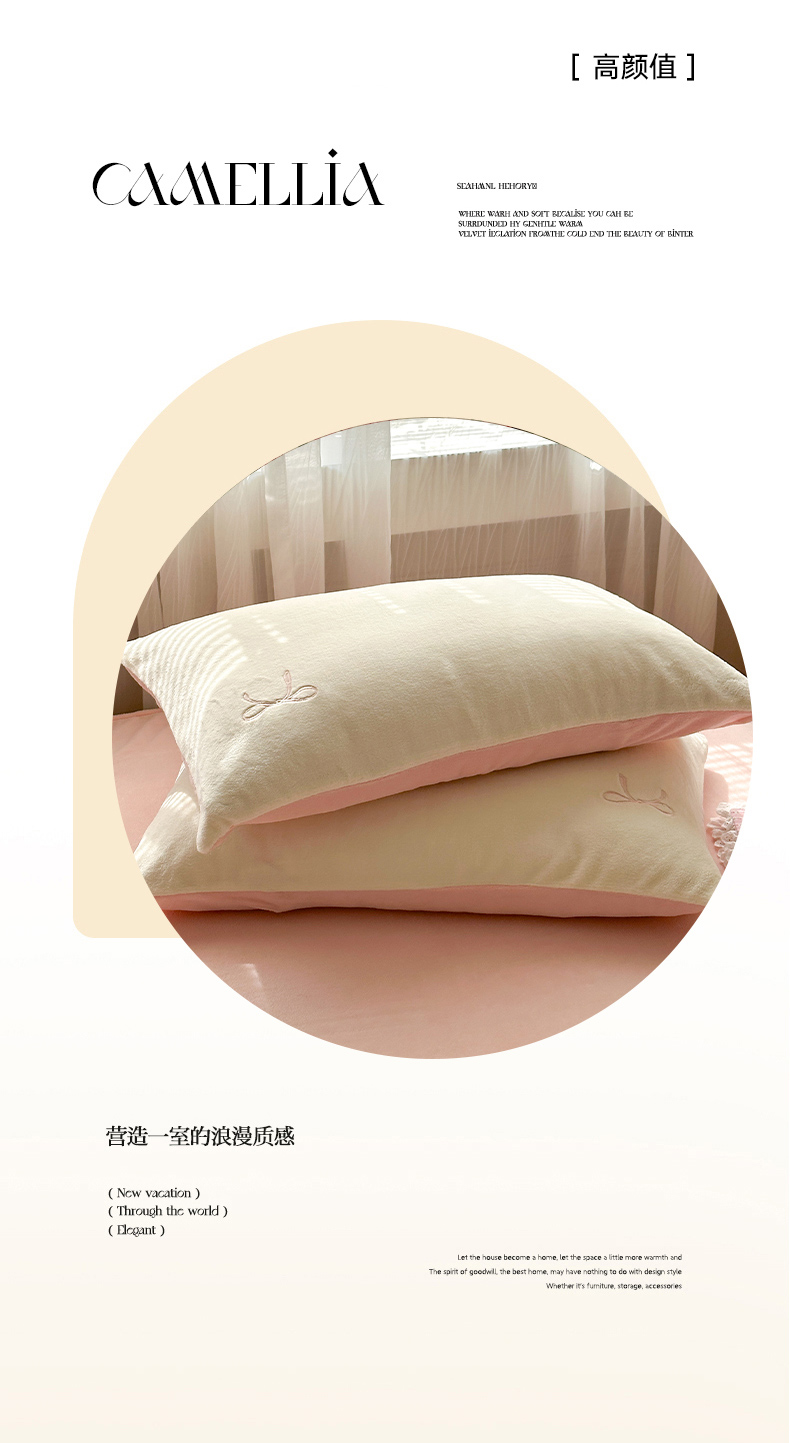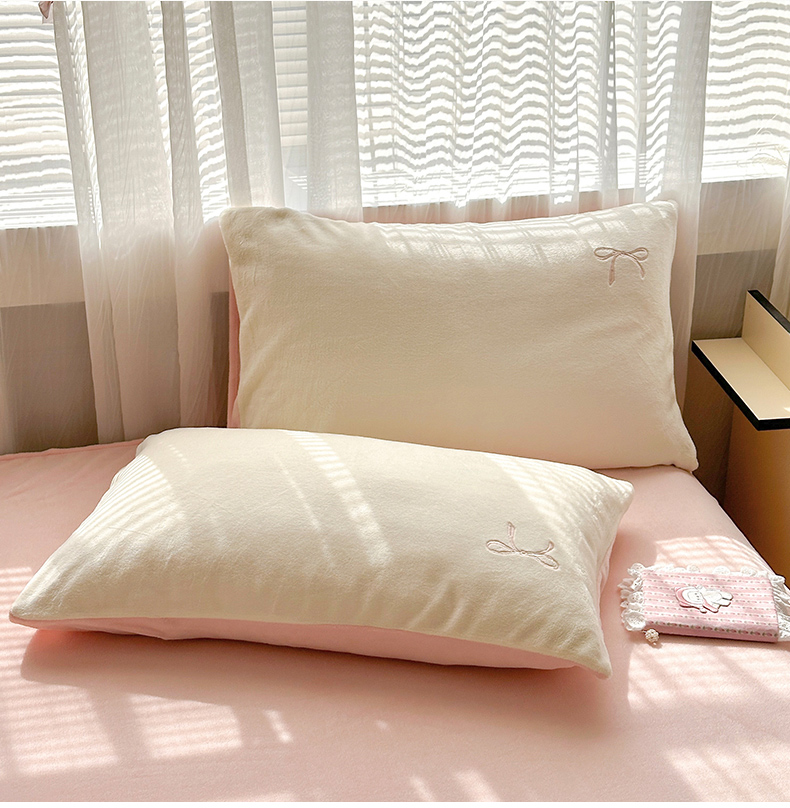 娜娜 2025新款高克重牛奶绒同心结系列单品枕套 同心结白+粉