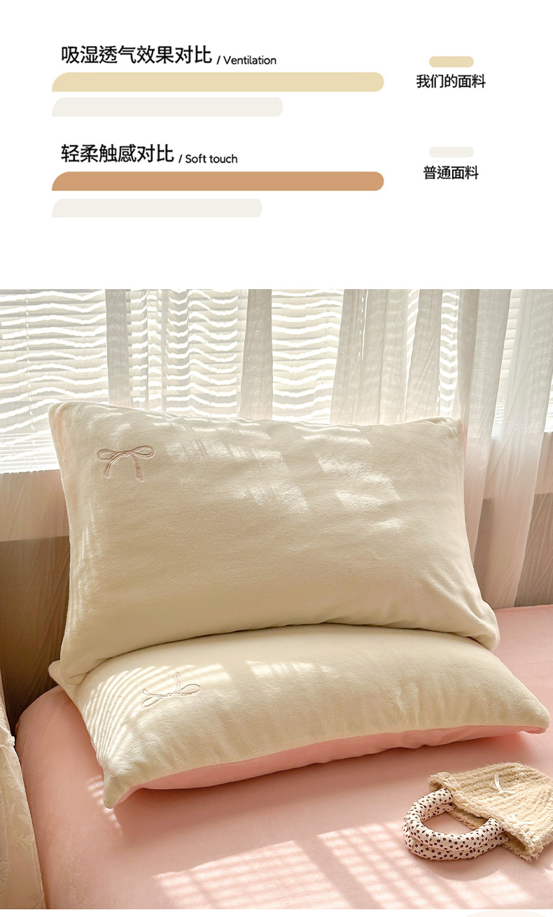 商品名称:娜娜 2025新款高克重牛奶绒同心结系列单品枕套 同心结白+粉