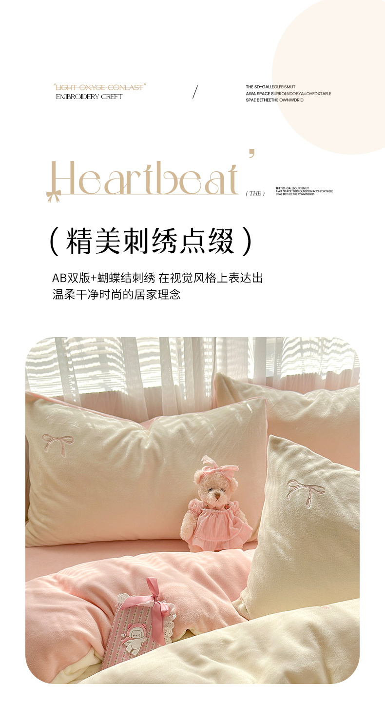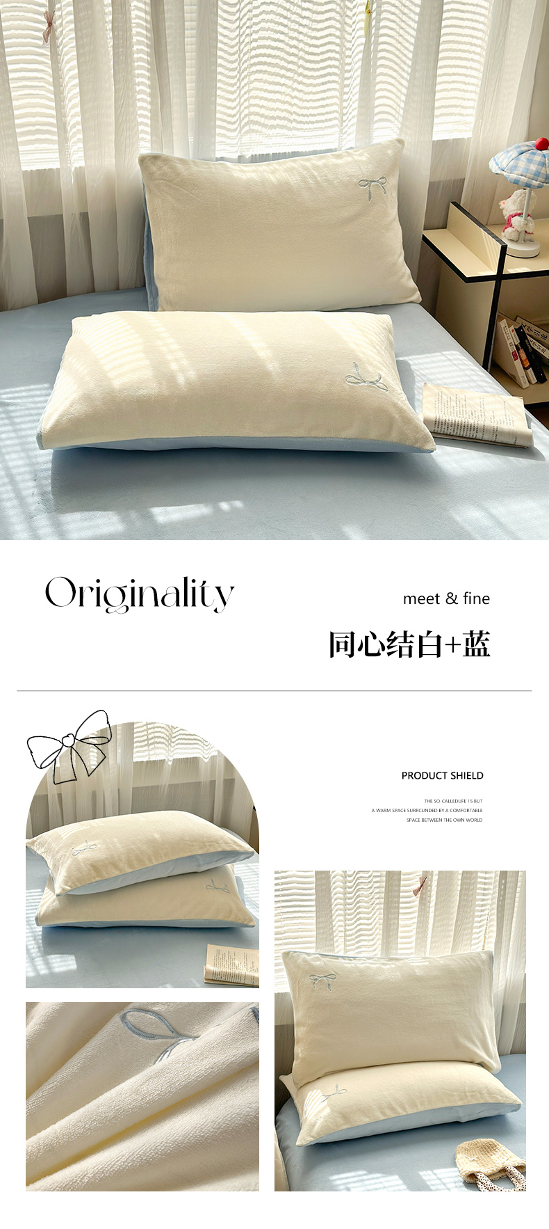 (总)娜娜 2025新款高克重牛奶绒同心结系列单品枕套,同心结白+绿,同心结白+粉,同心结白+咖,同心结白+蓝