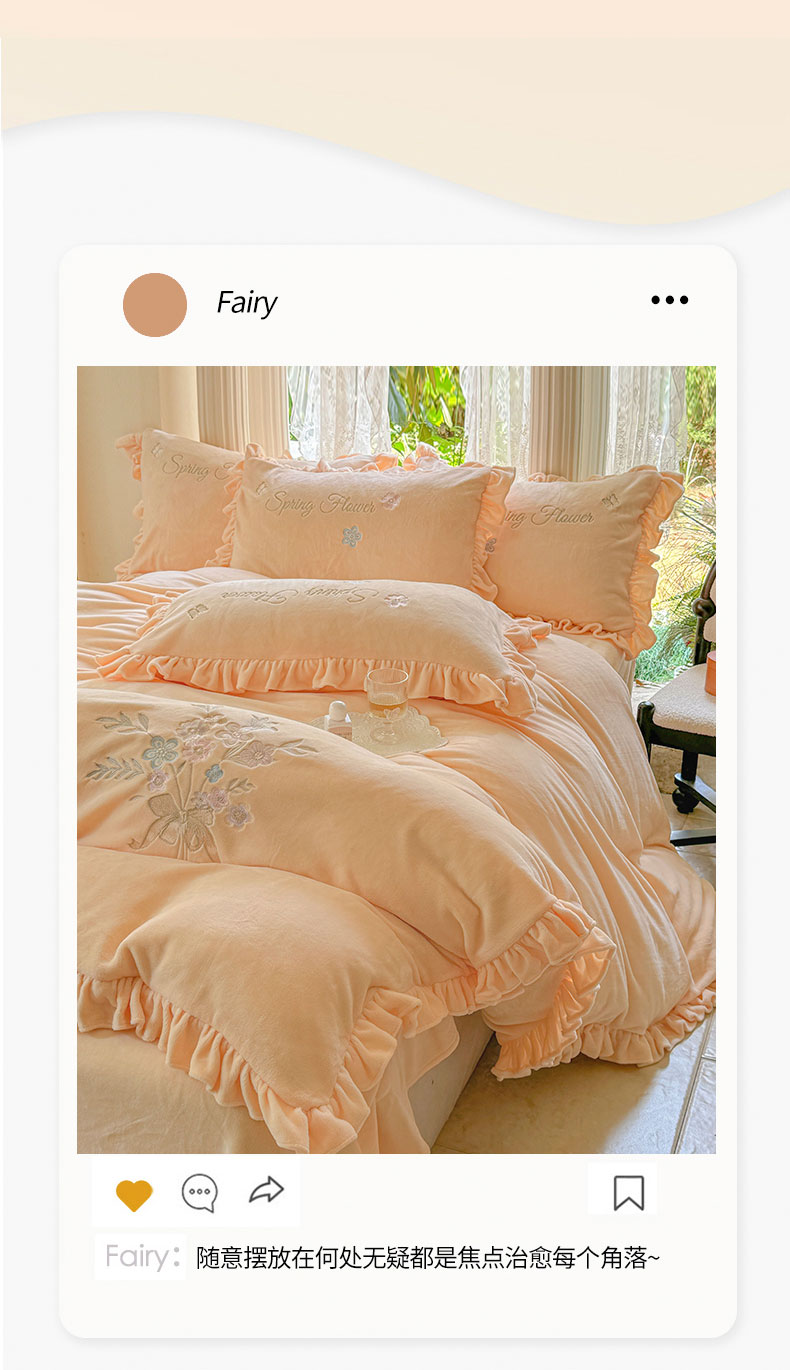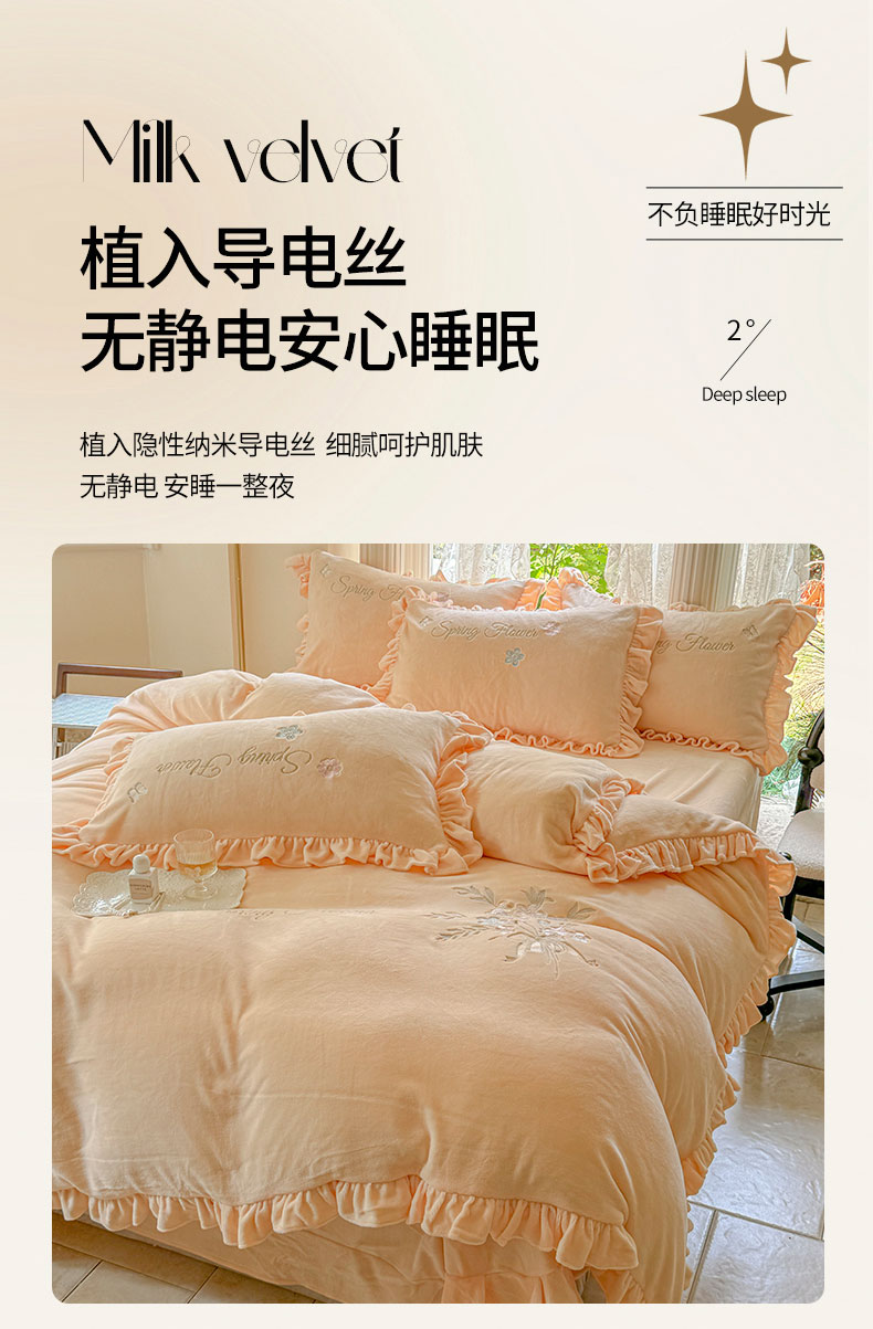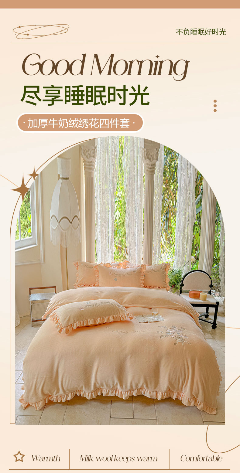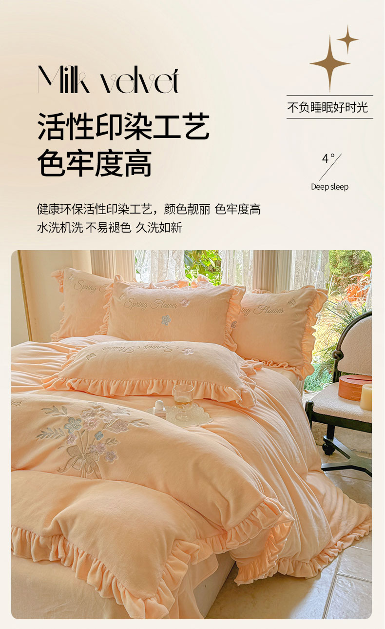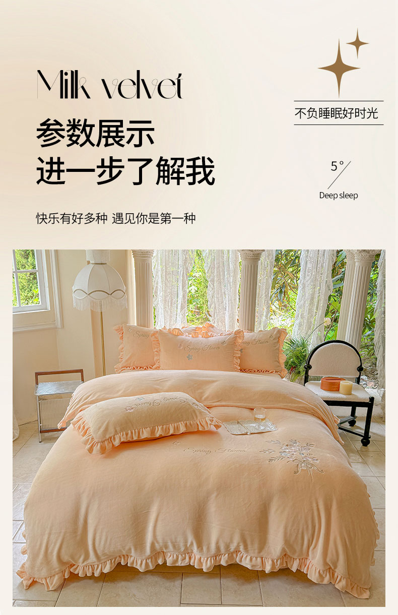 商品名称:美洲琳 2025新款高克重牛奶绒绣花四件套 手捧花-奶黄