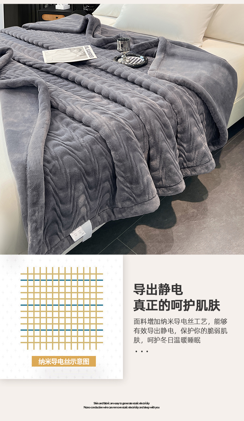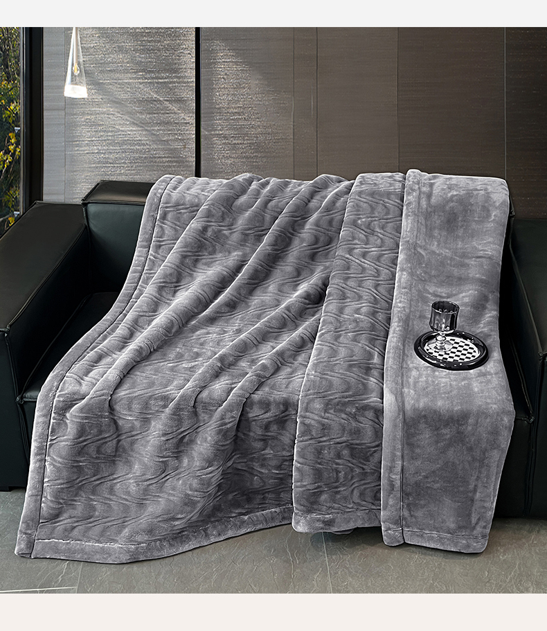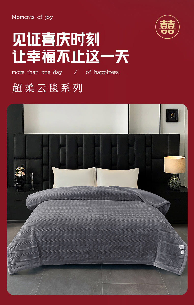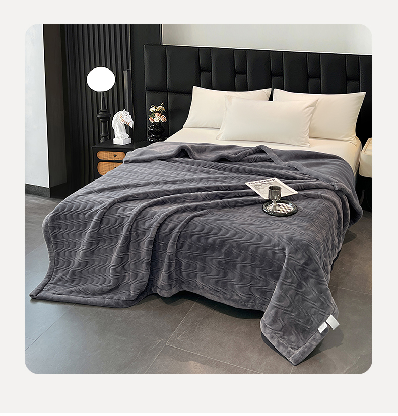 凯轩毛毯网销专供 2025新款水波纹精品婚庆云毯毛毯 水波纹-绅士灰