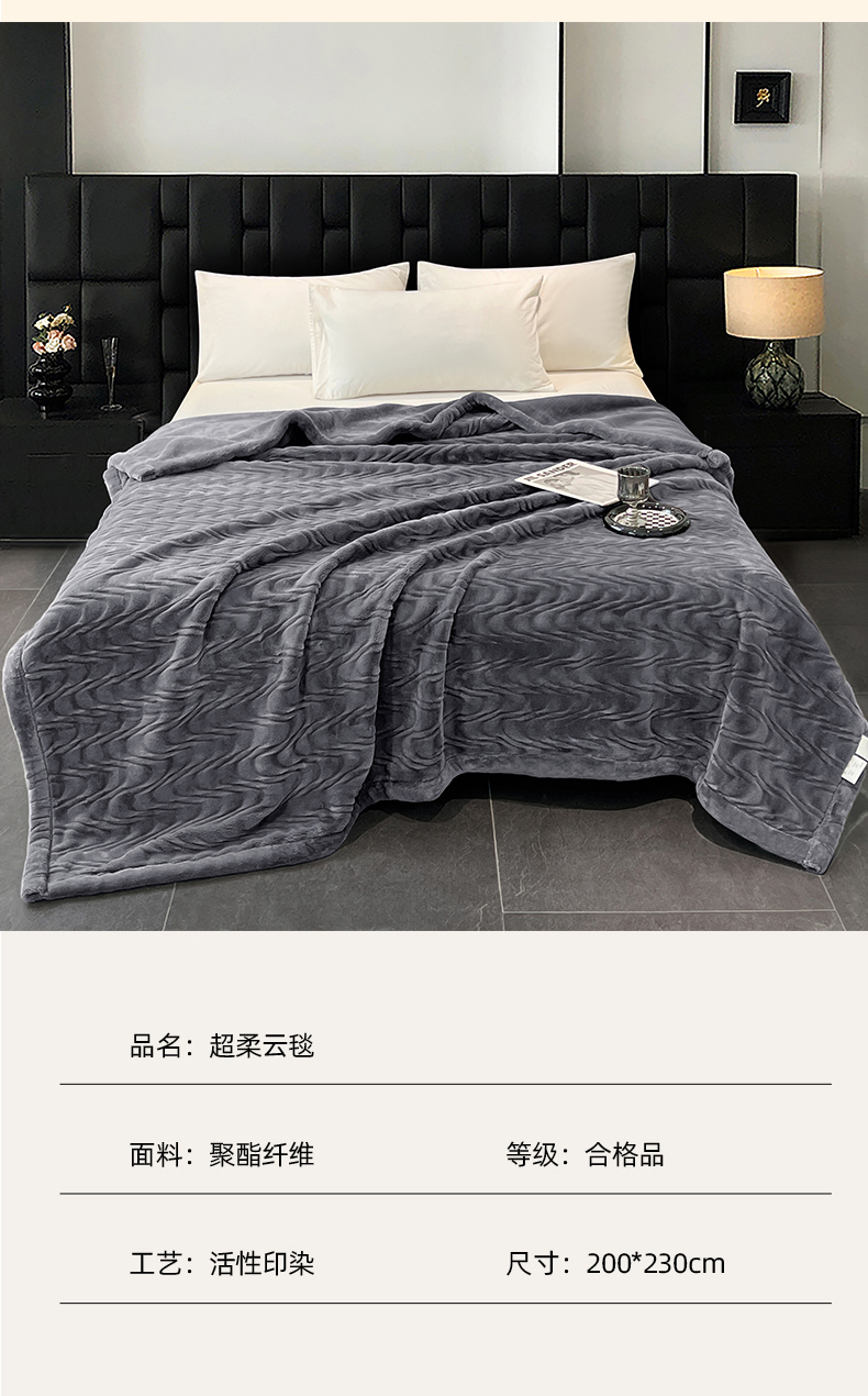 商品名称:凯轩毛毯网销专供 2025新款水波纹精品婚庆云毯毛毯 水波纹-绅士灰
