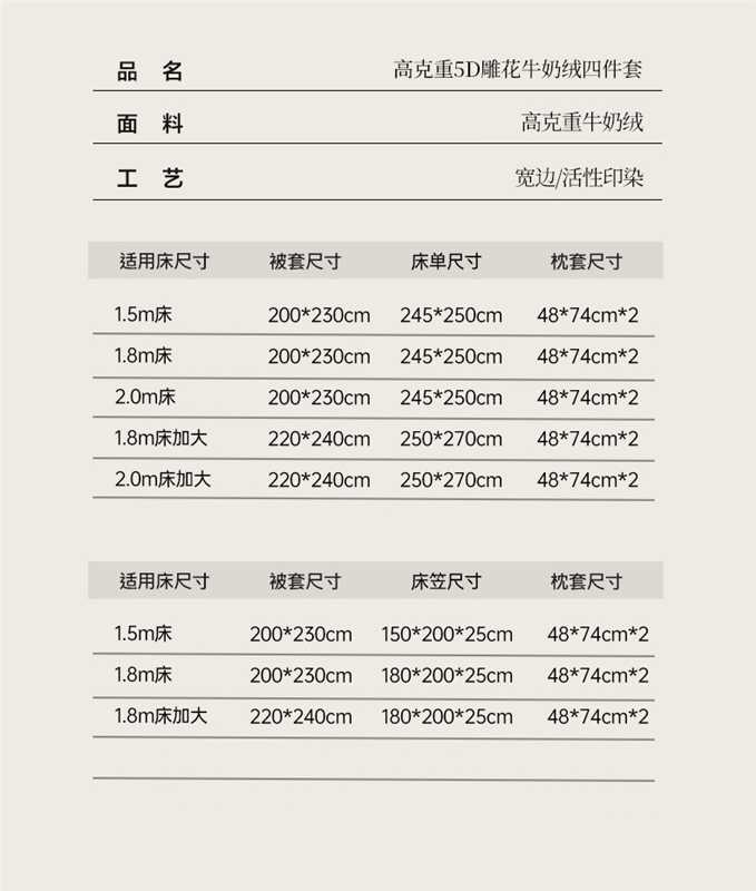 1.8床被套220*240床笠四件套 | ¥155.00 |