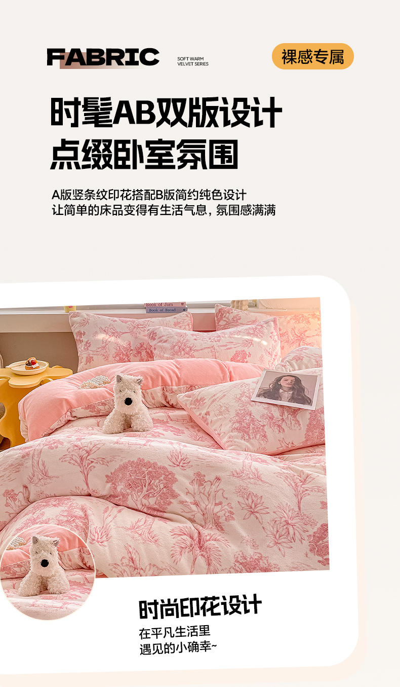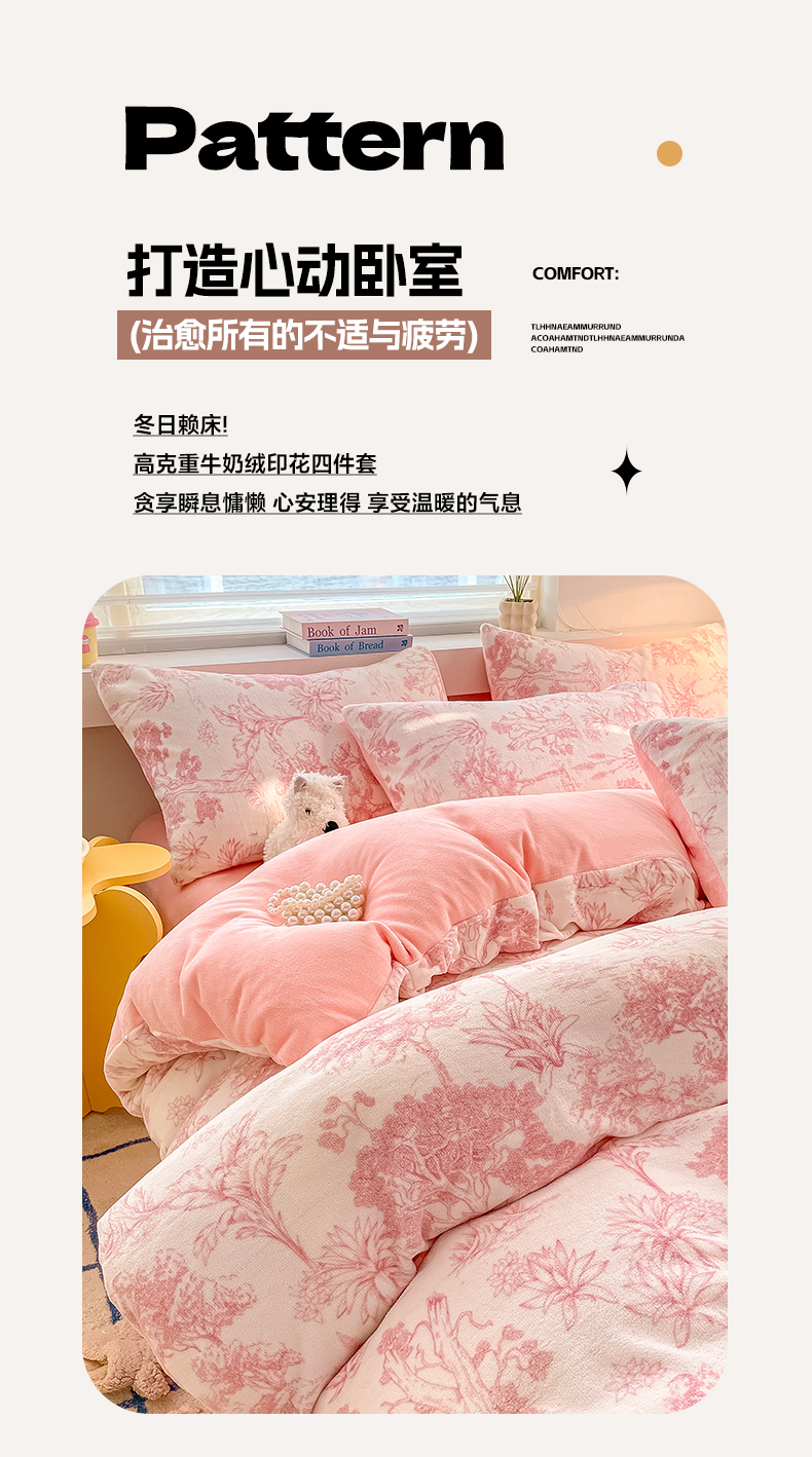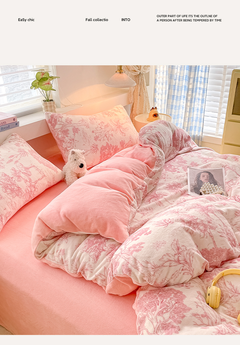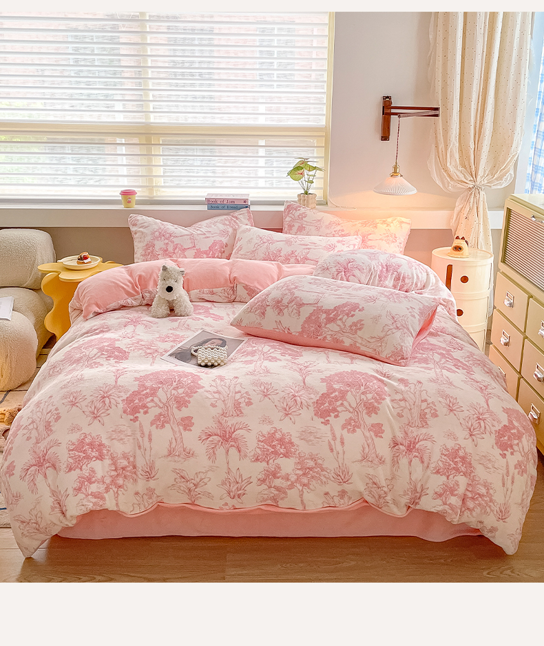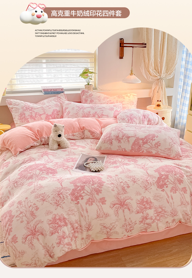 当前位置: 91家纺网 > 商品网购 > 床品套件 > 四件套 > 牛奶绒四件套 > 雅居纺家纺 2025新款高克重牛奶绒印花四件套 幻境-粉