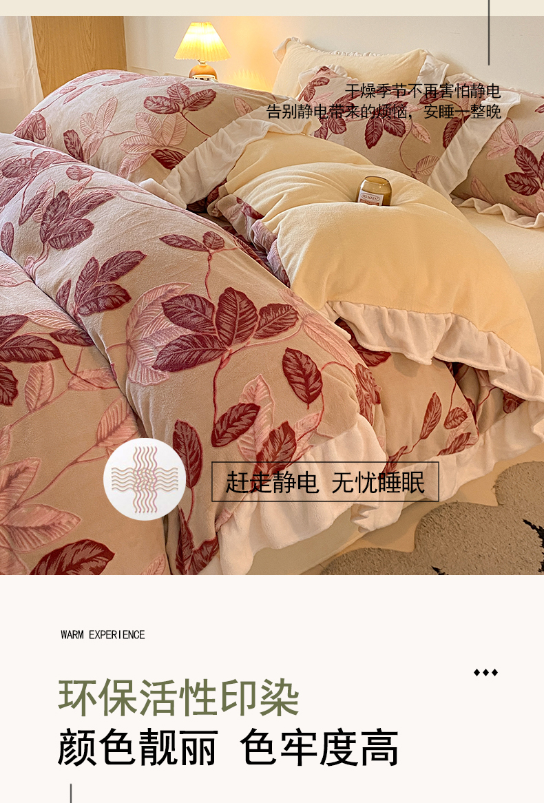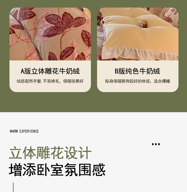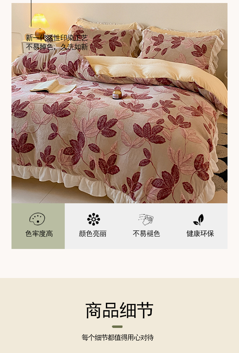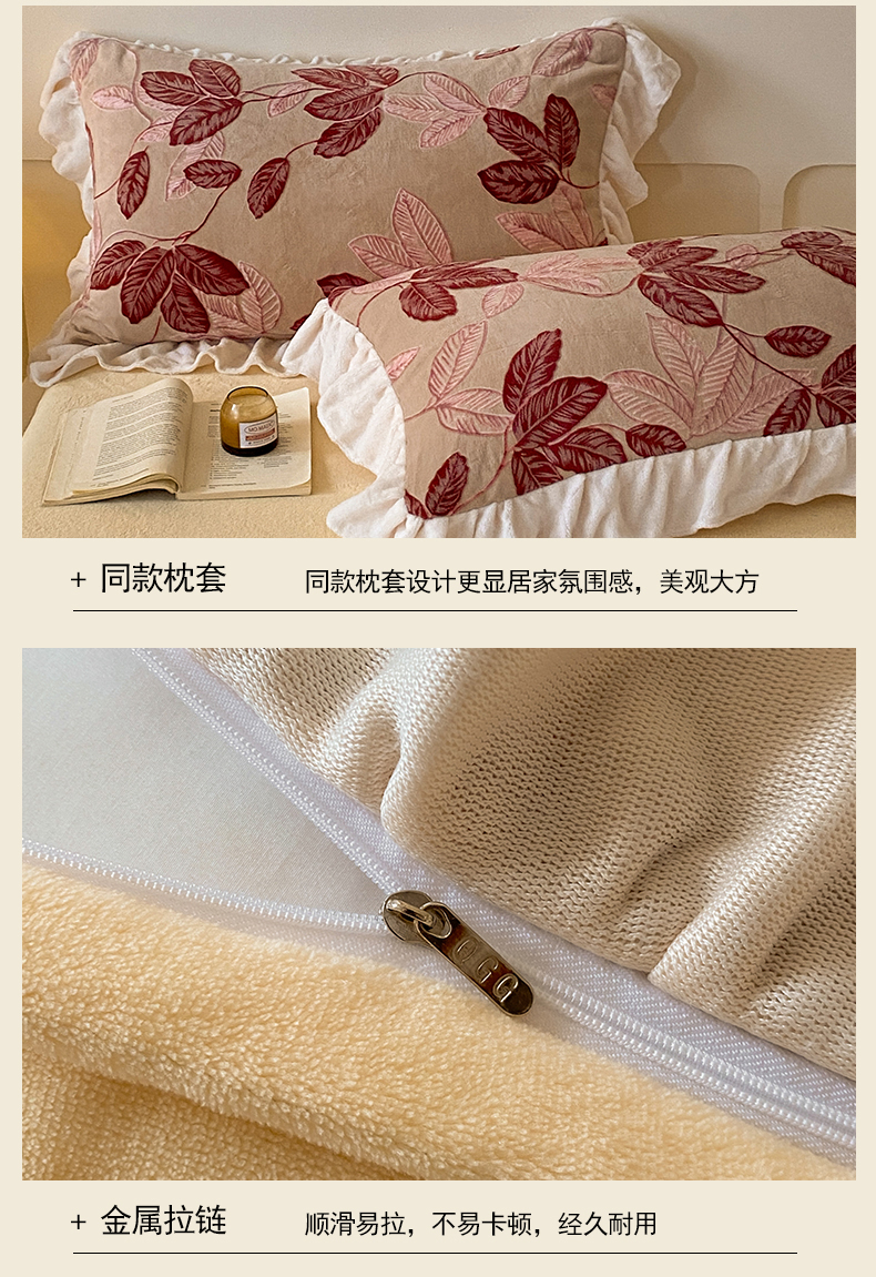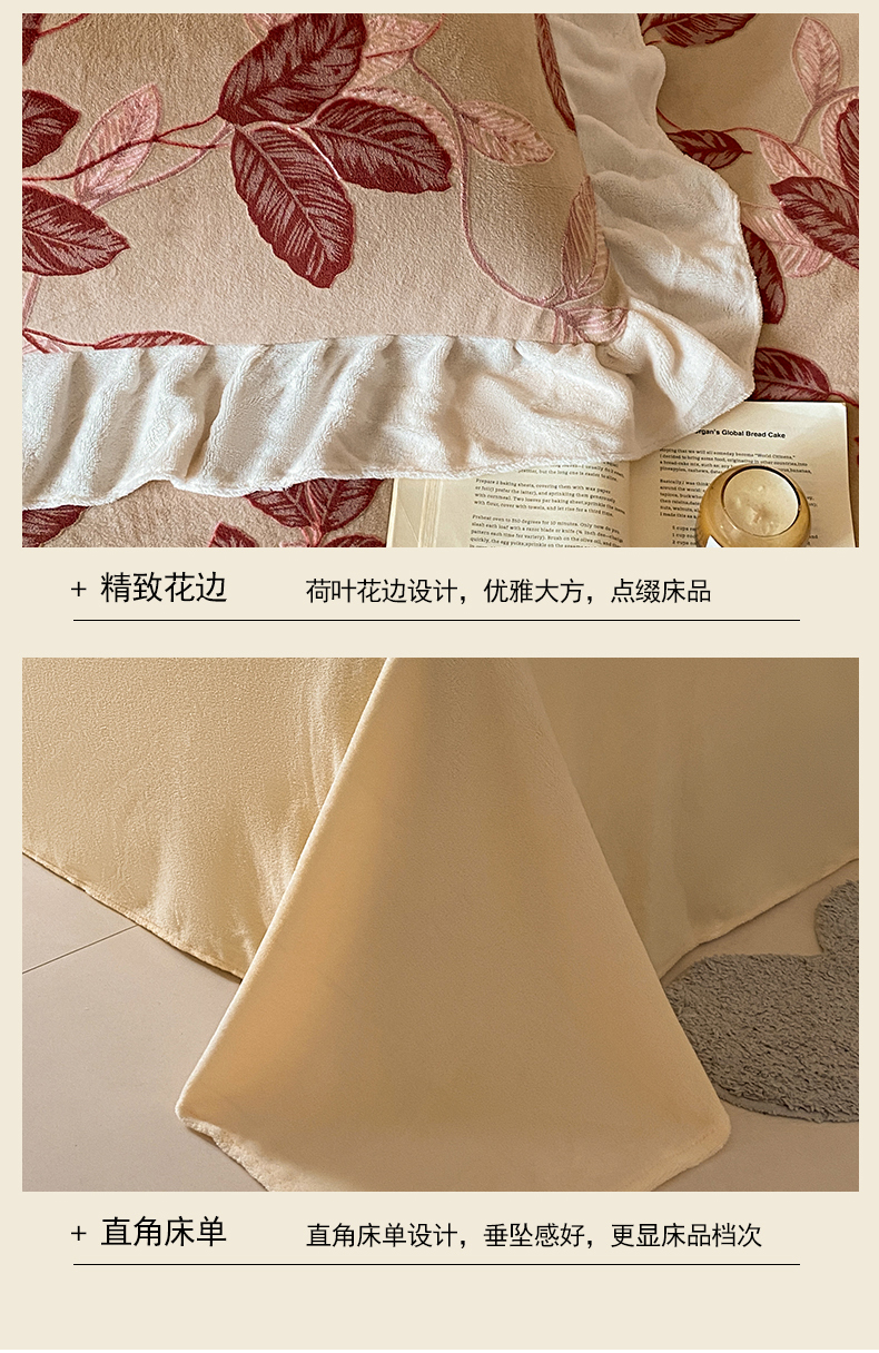 当前位置: 91家纺网 > 商品网购 > 床品套件 > 四件套 > 牛奶绒四件套 > 琪格格纺织 2025新款全消光小清新花边款雕花牛奶绒四件套 雕花花边-秋色宜人酒红