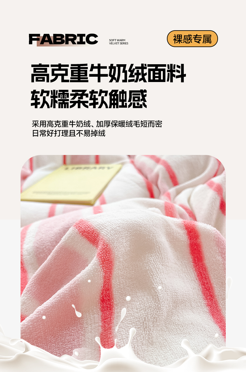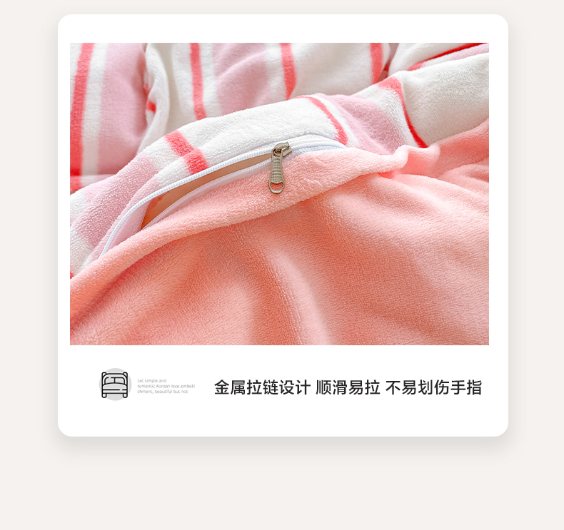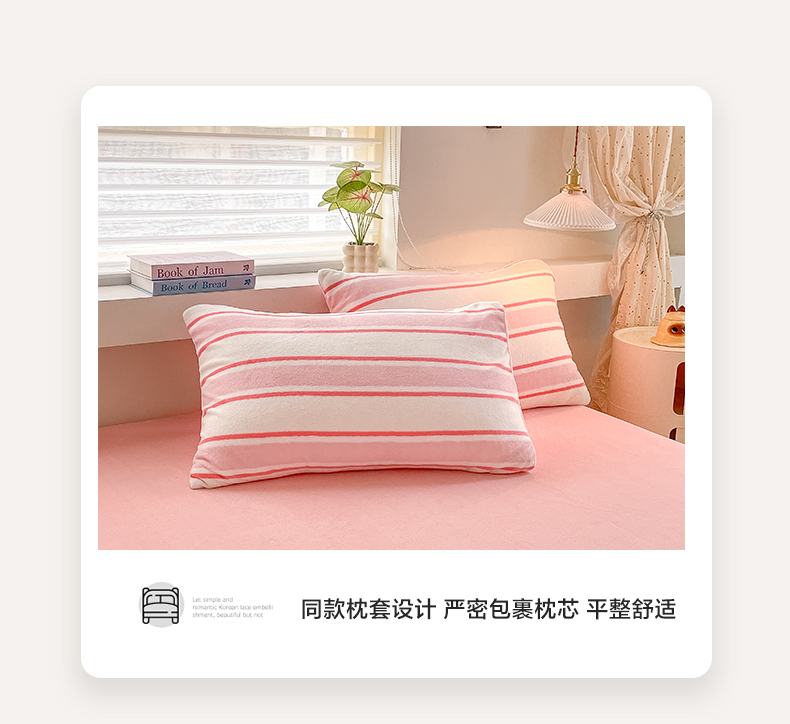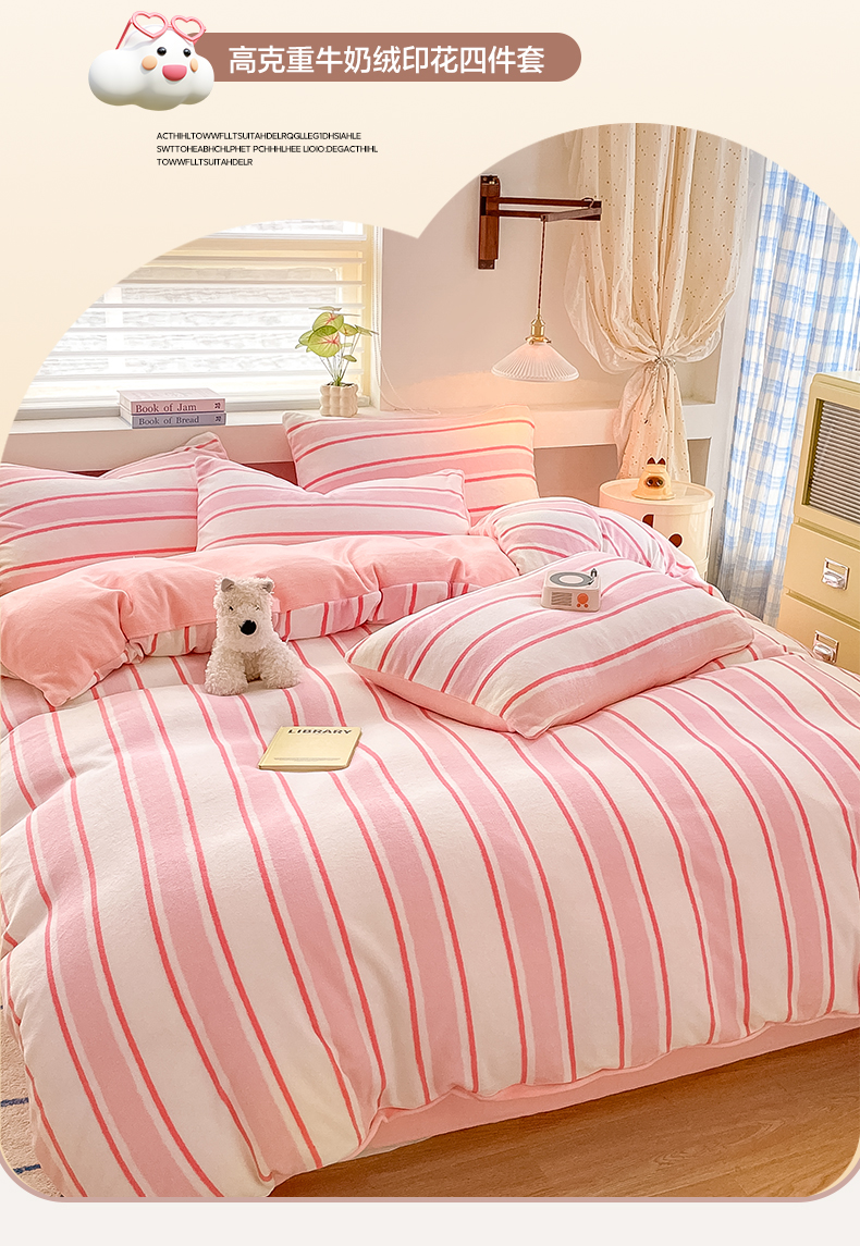 商品名称:雅居纺家纺 2025新款高克重牛奶绒印花单被套 粉色竖条