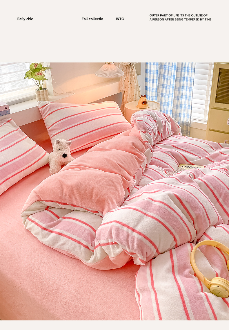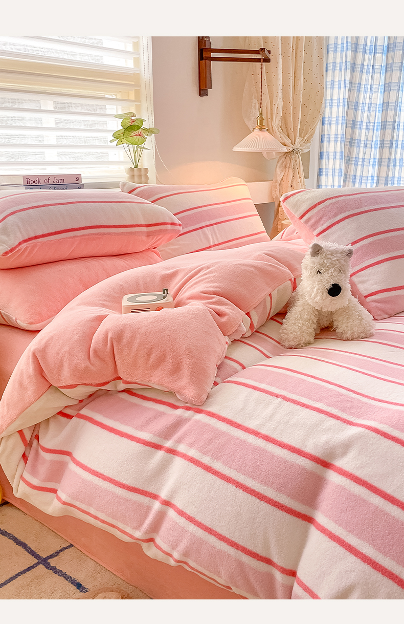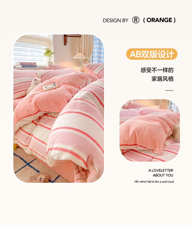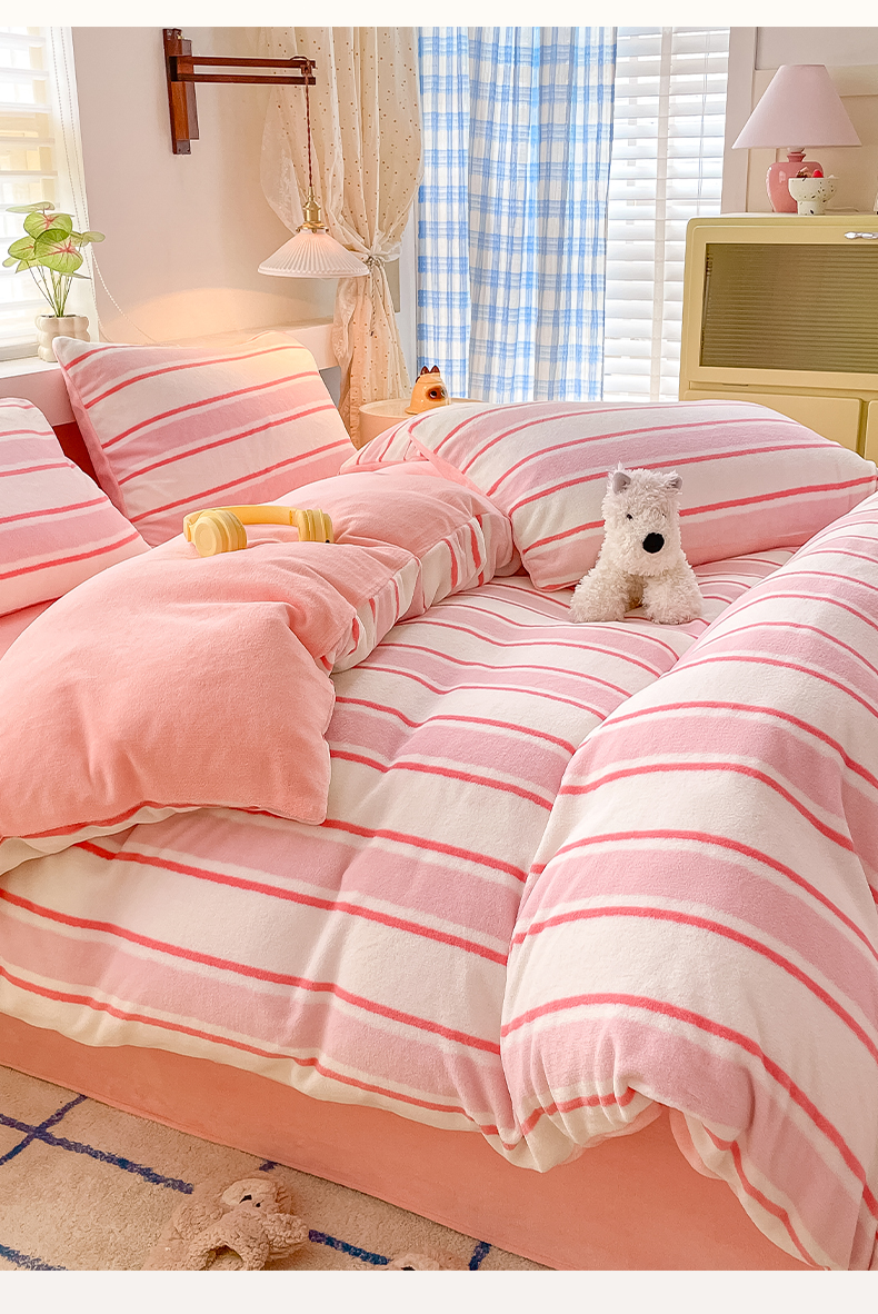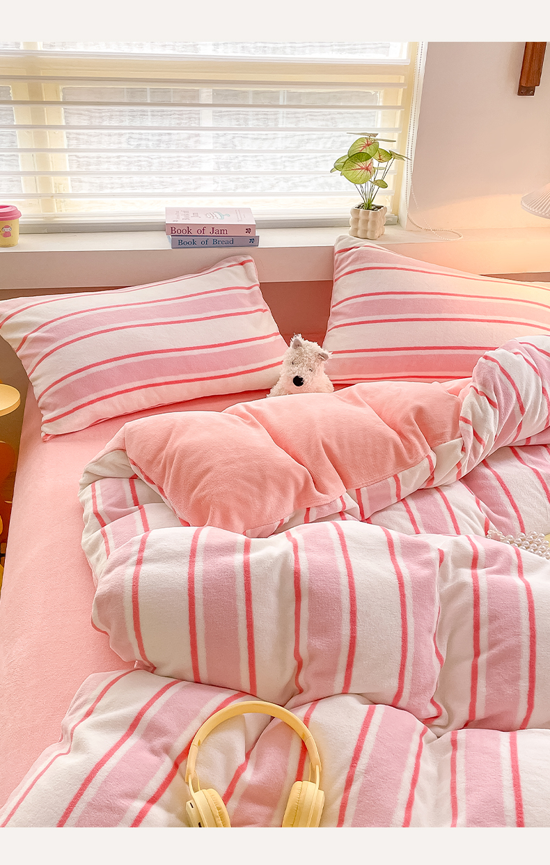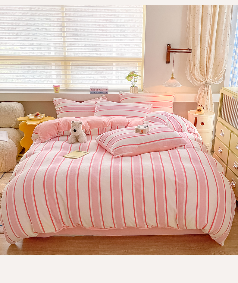 雅居纺家纺 2025新款高克重牛奶绒印花单被套 粉色竖条