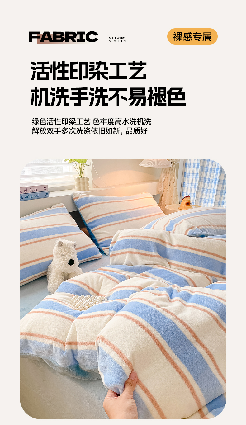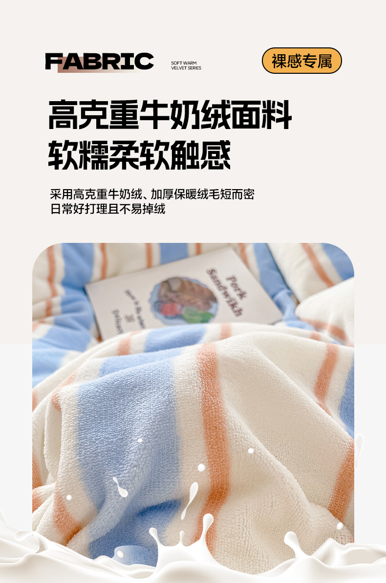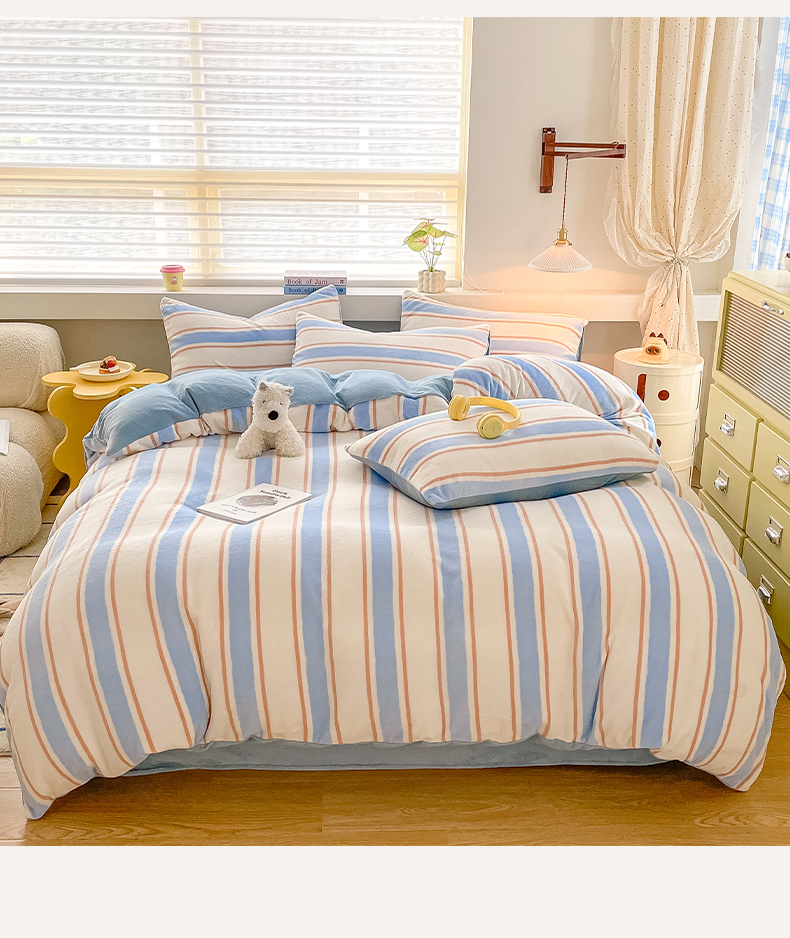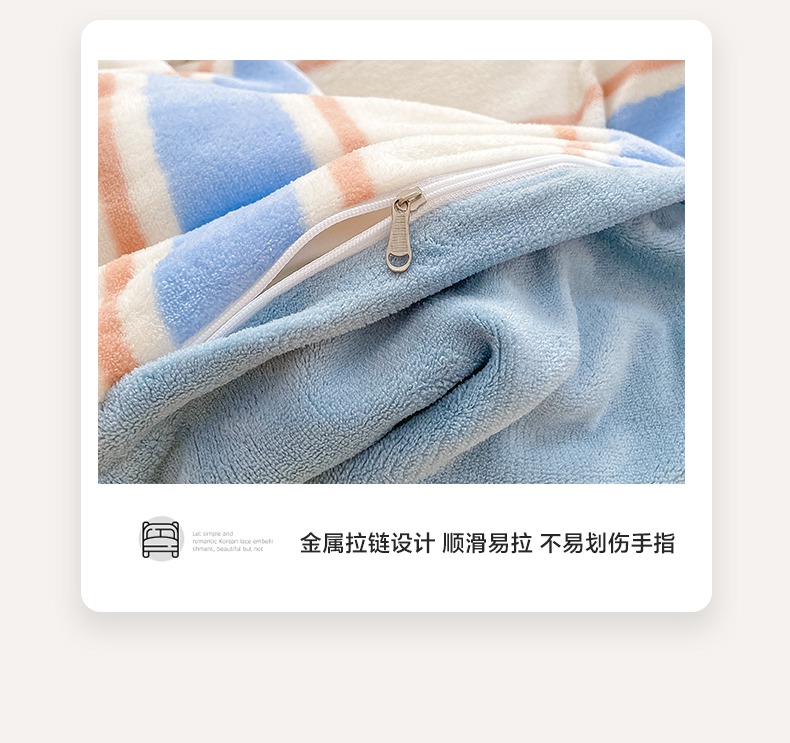 雅居纺家纺 2025新款高克重牛奶绒印花单被套 蓝色竖条