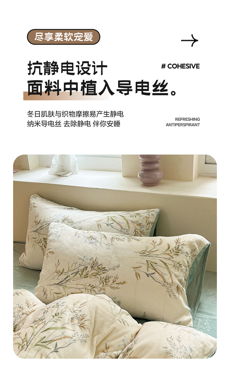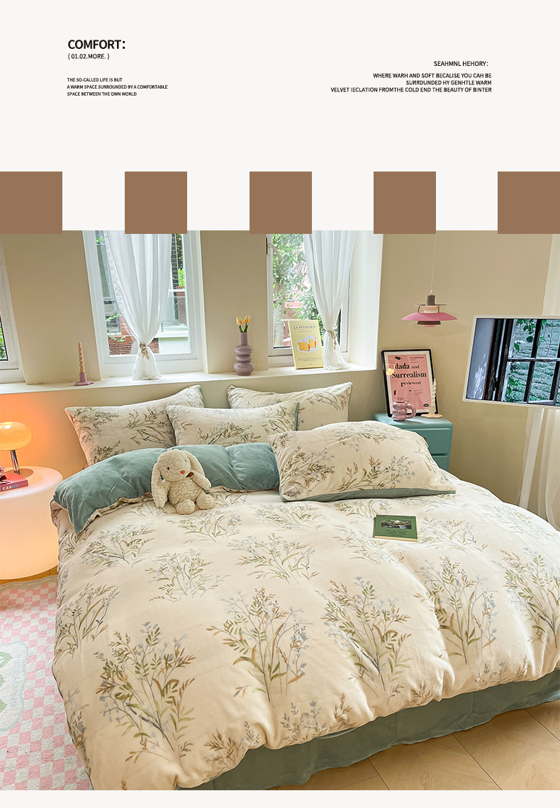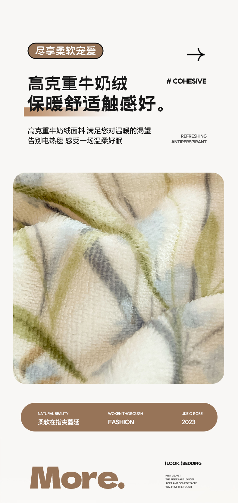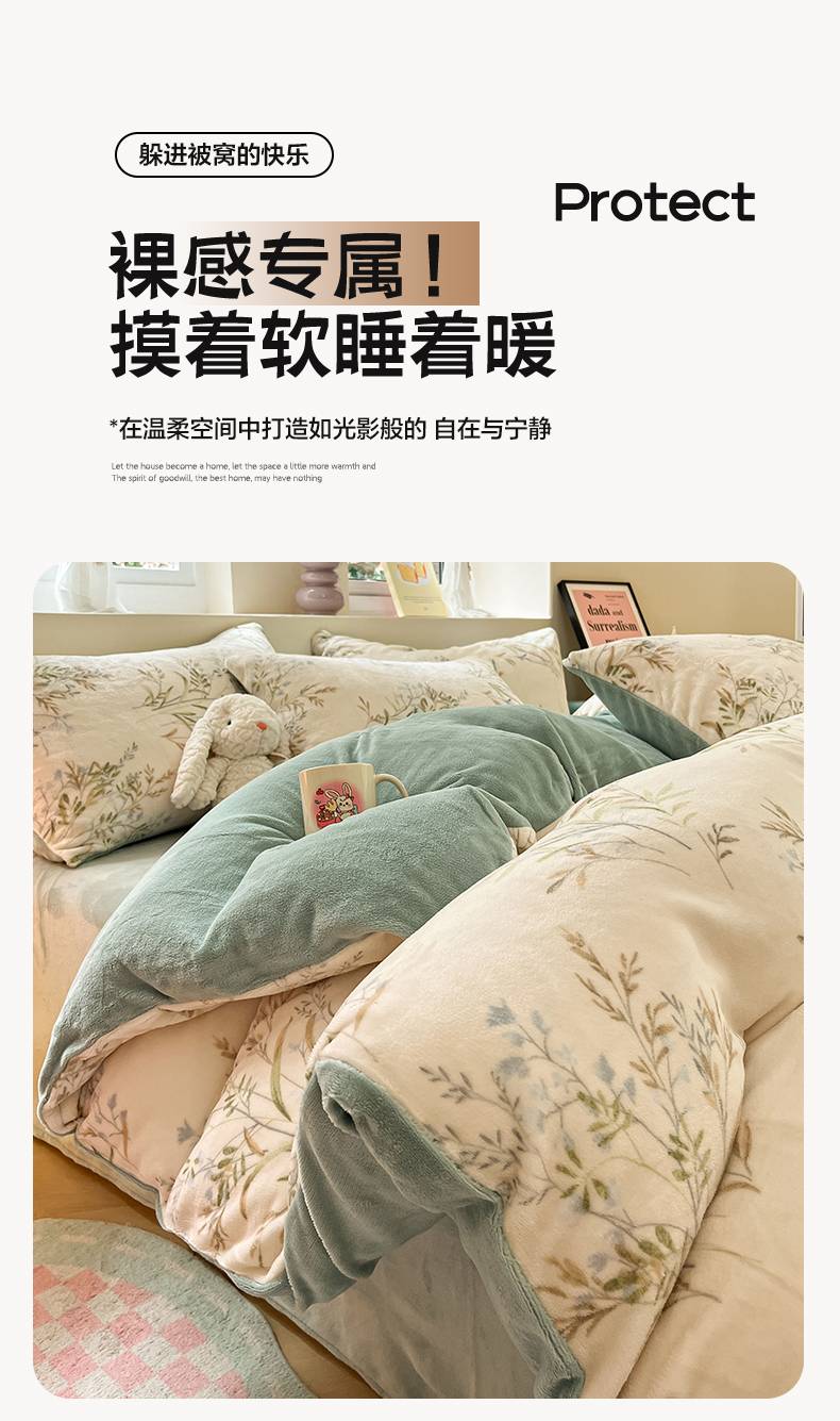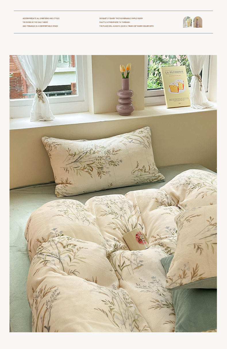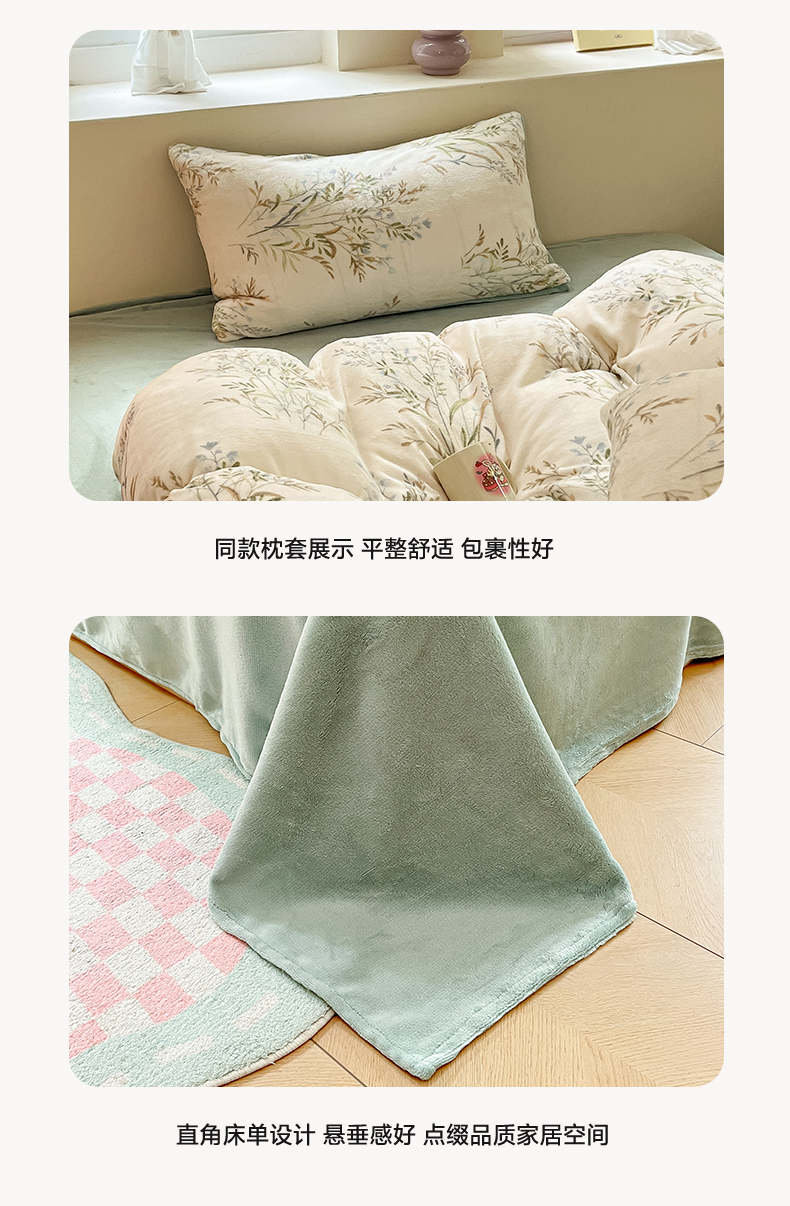 商品名称:雅居纺家纺 2025新款高克重牛奶绒印花单被套 仙草
