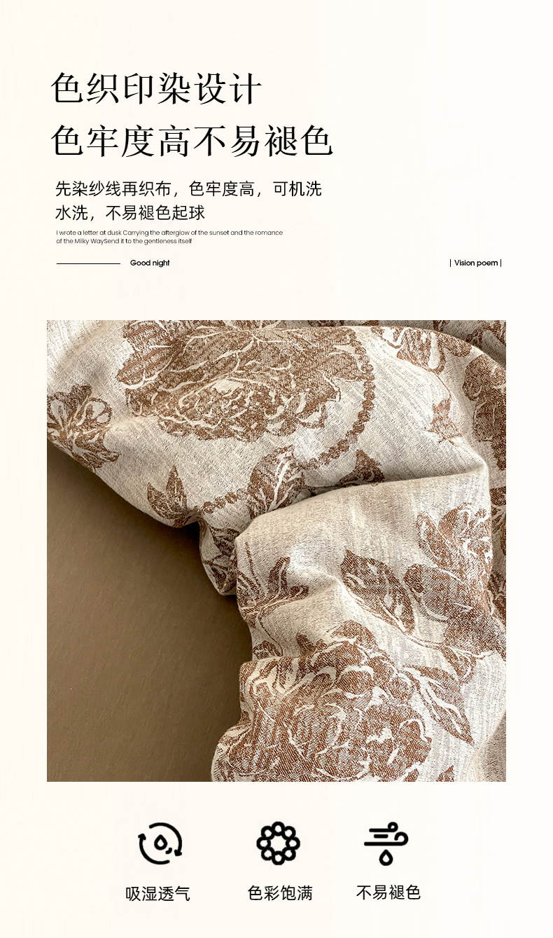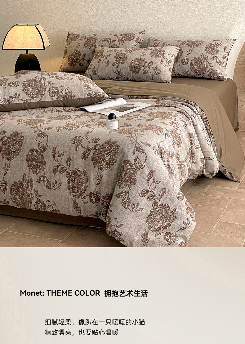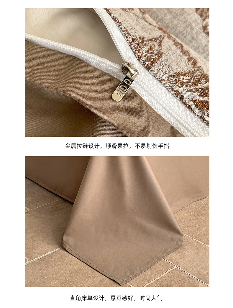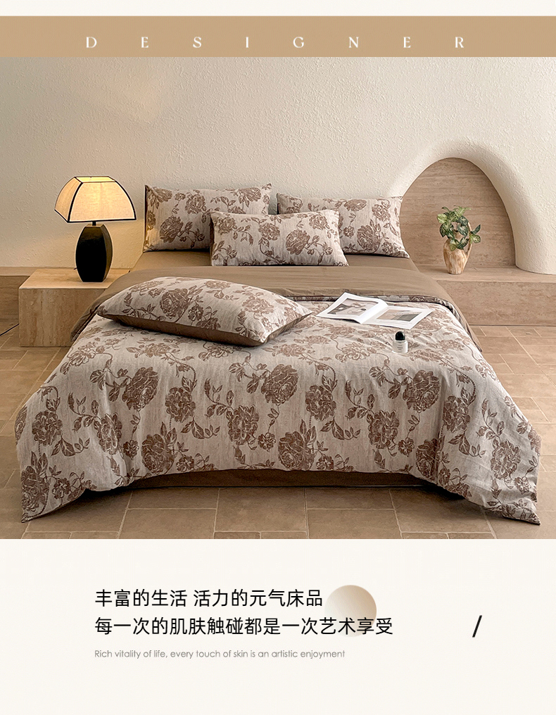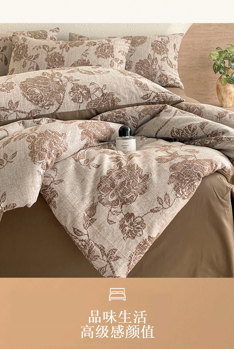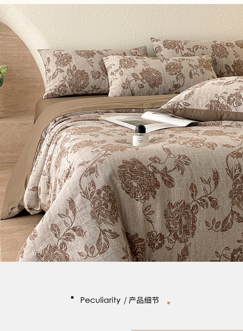 当前位置: 91家纺网 > 商品网购 > 床品套件 > 四件套 > 双层纱四件套 > 琪格格纺织 2025新款全棉纯棉双层纱提花四件套 双层纱-蔓春咖