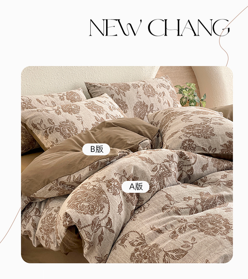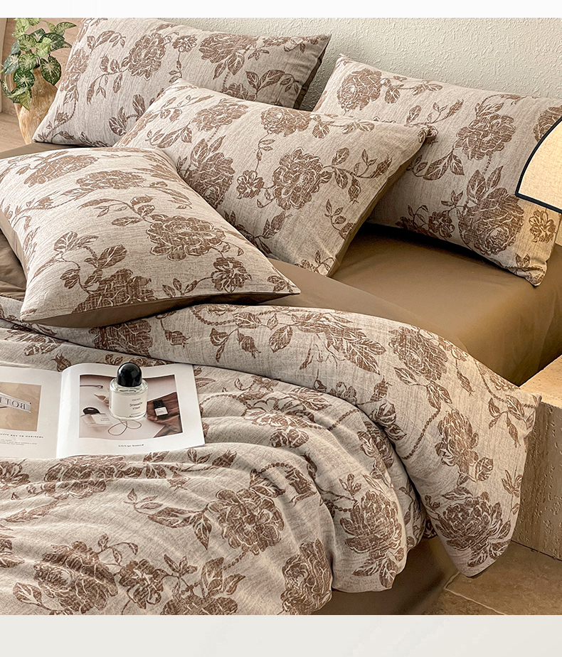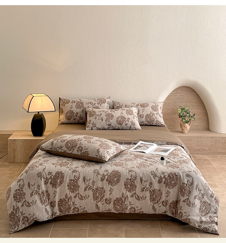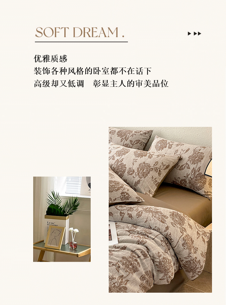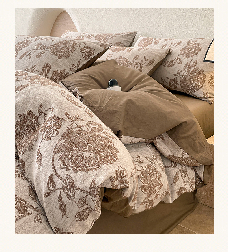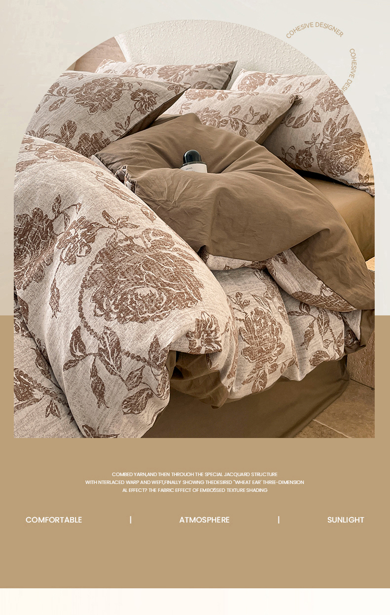 当前位置: 91家纺网 > 商品网购 > 床品套件 > 四件套 > 双层纱四件套 > 琪格格纺织 2025新款全棉纯棉双层纱提花四件套 双层纱-蔓春咖