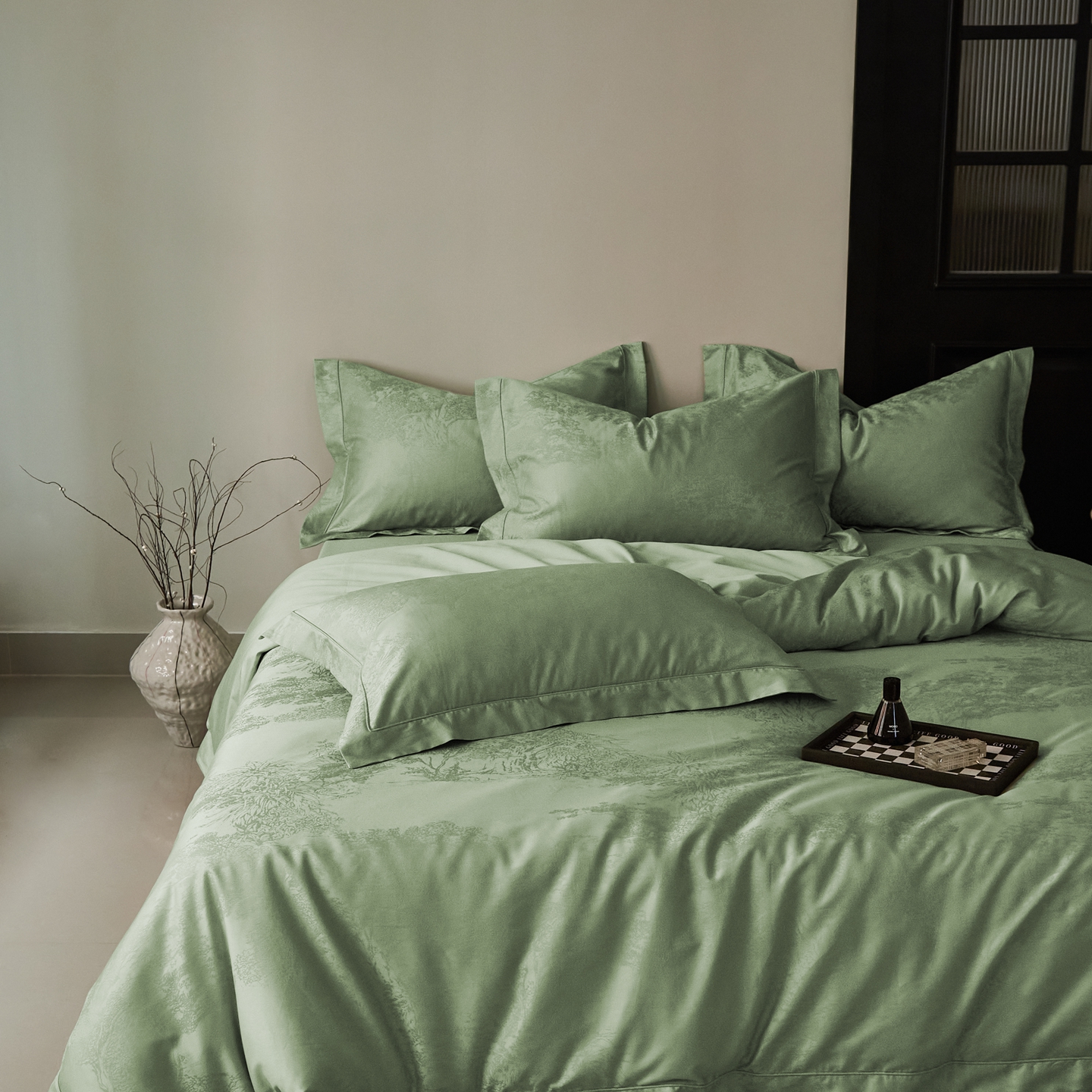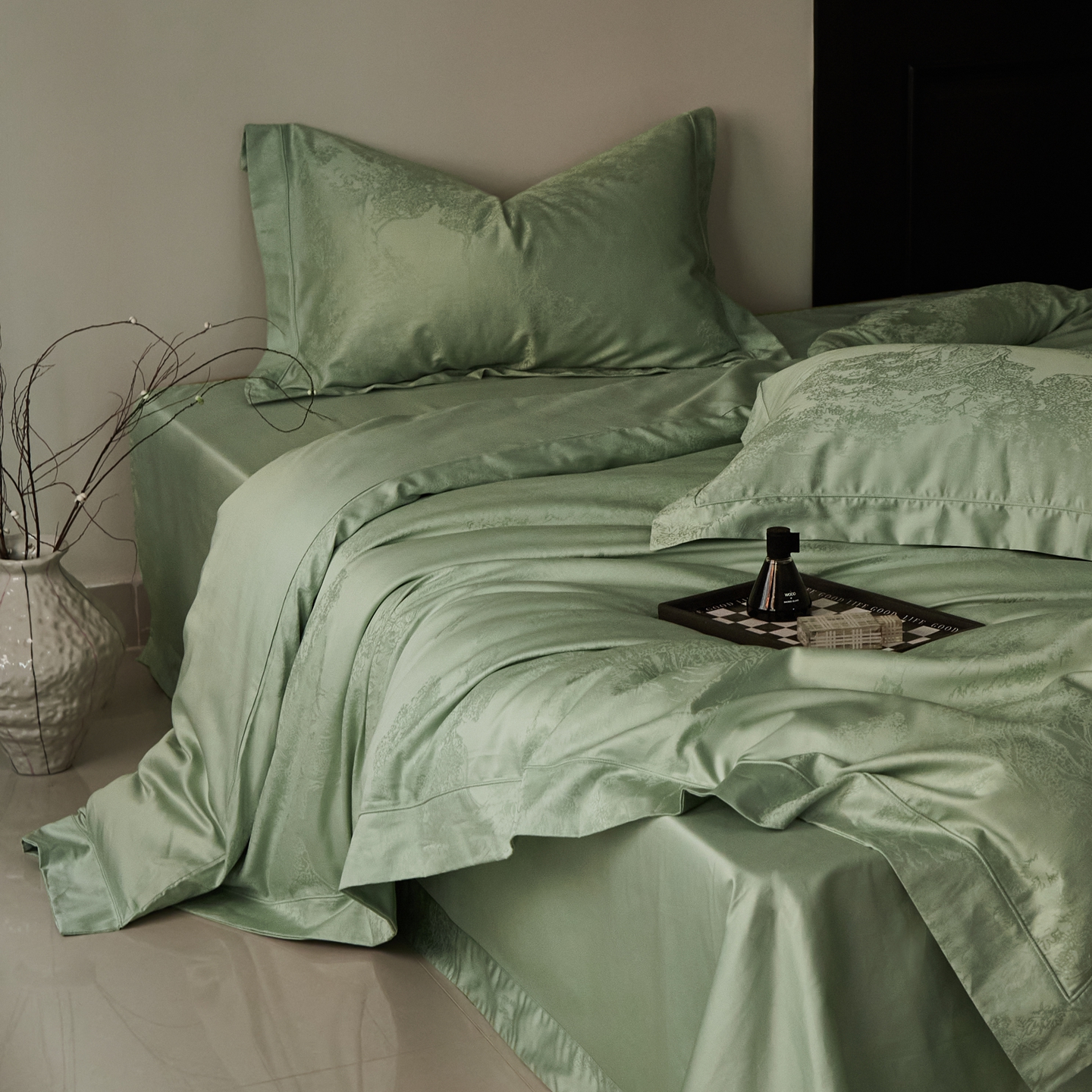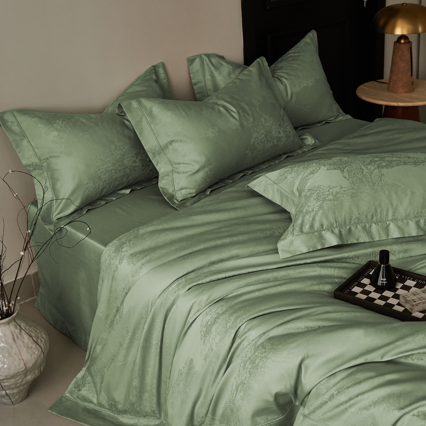 顾家家居 2025新款亲肤舒适全棉纯棉提花四件套 铃兰屿--水漾绿