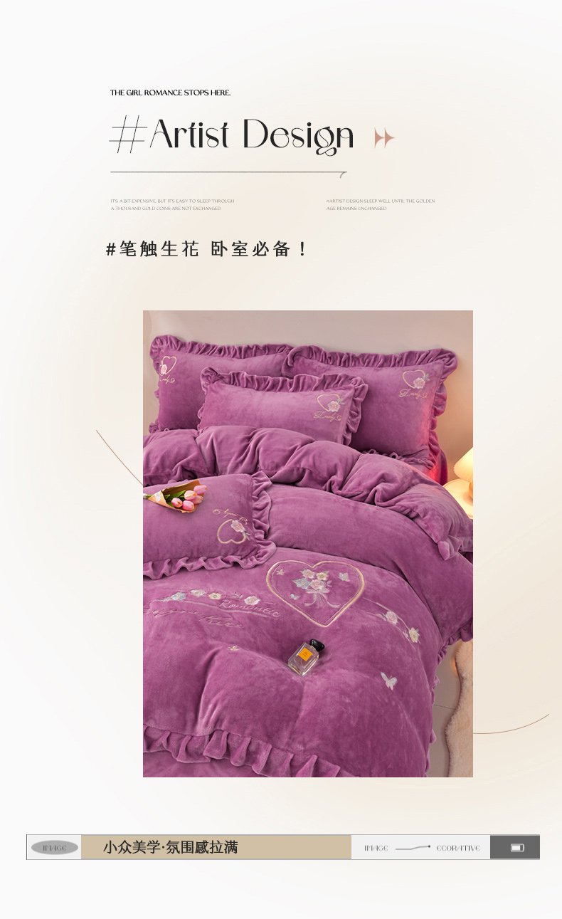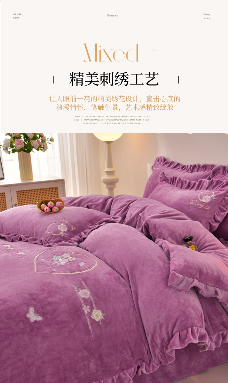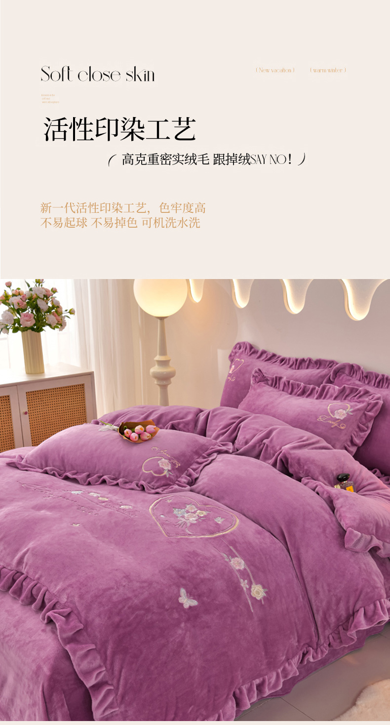 商品名称:畅畅家纺 2025新款亲肤舒适冬季刺绣花边保暖牛奶绒四件套-爱心之旅 爱心之旅-淡紫