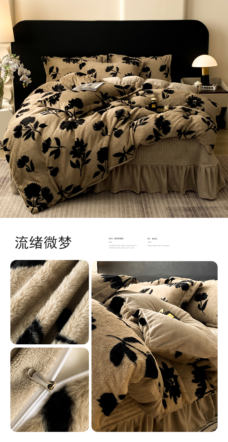 大麦家纺 25年新款高克重兔毛牛奶绒床盖四件套 流绪微梦
