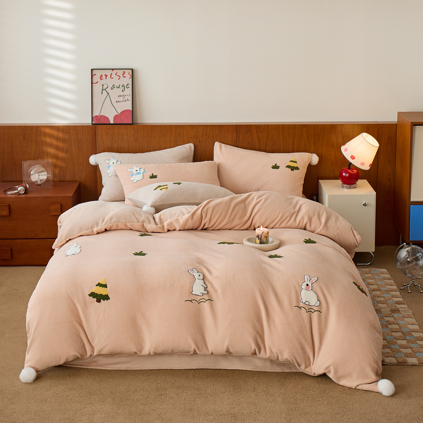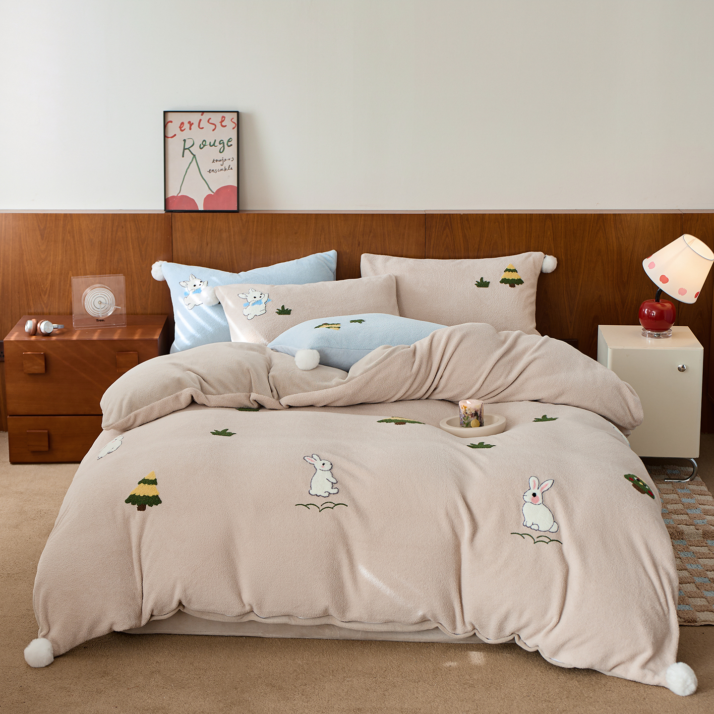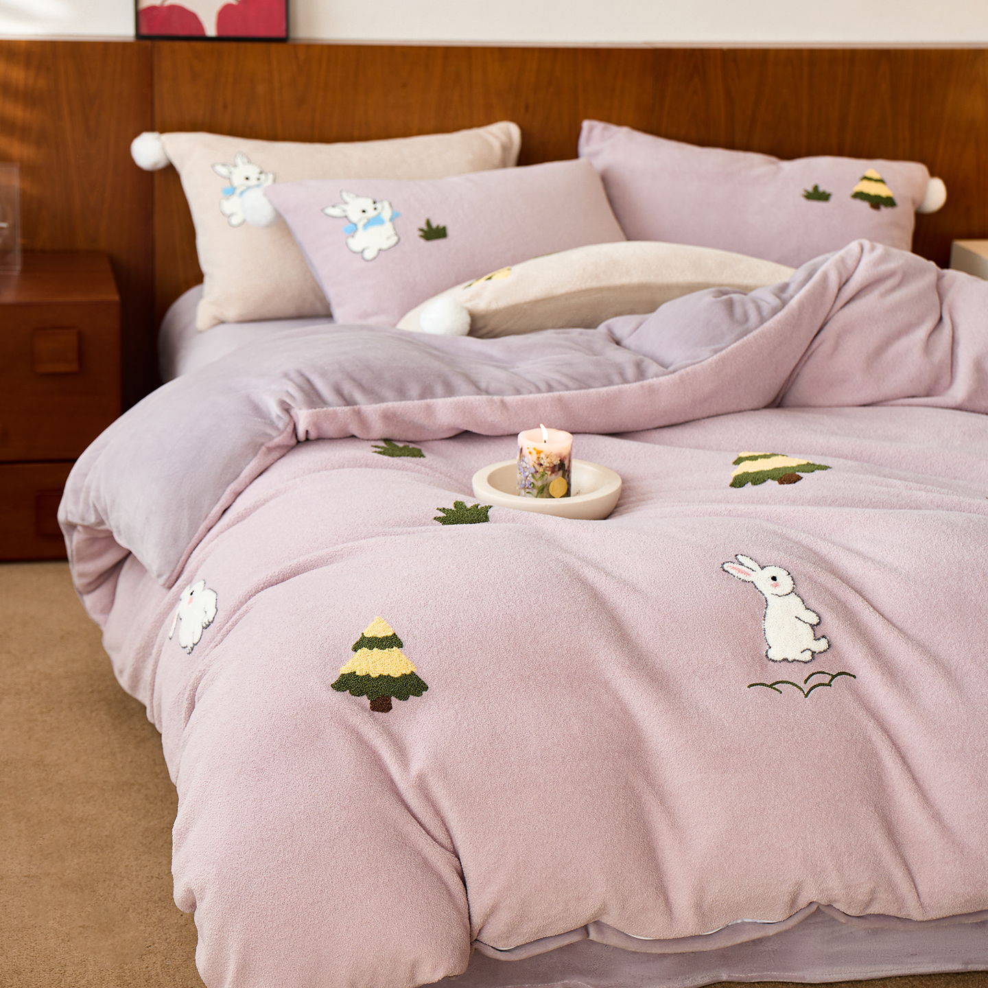 商品名称:蓝梦 2025新款全消光毛巾绣艾尼绒四件套-艾尼兔系列 罗兰紫