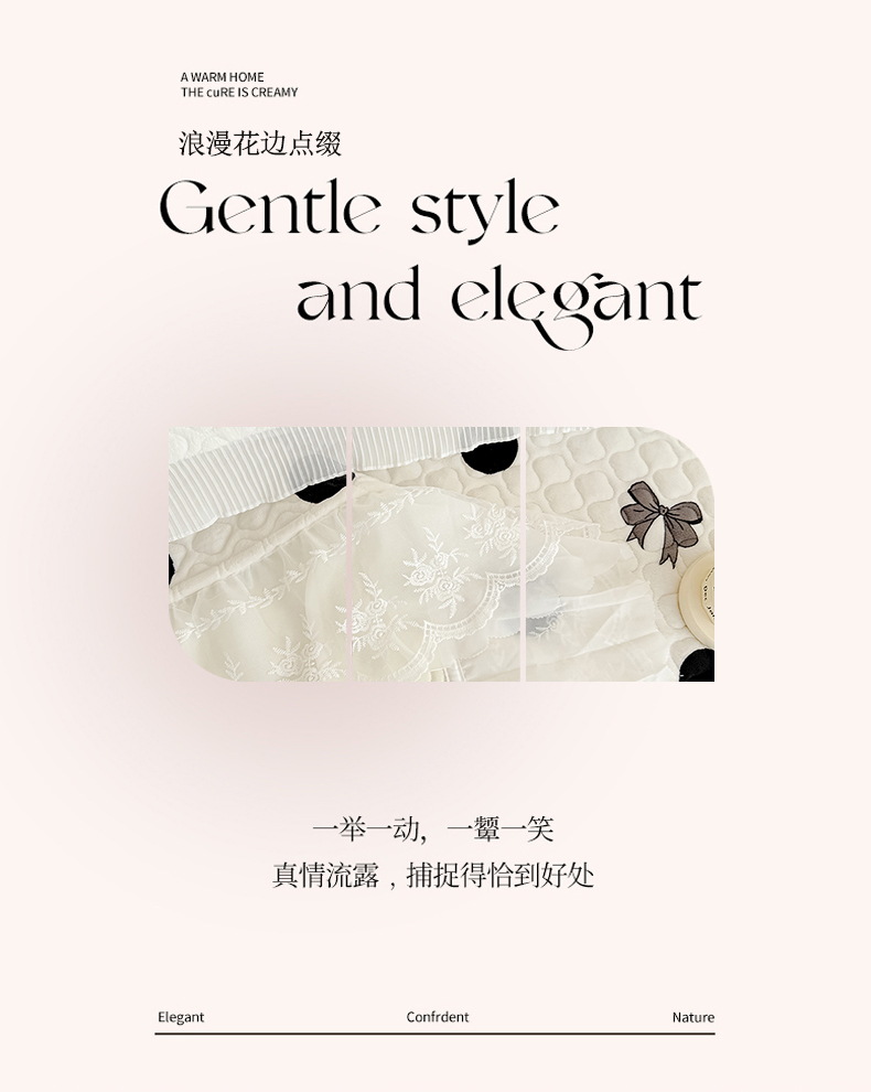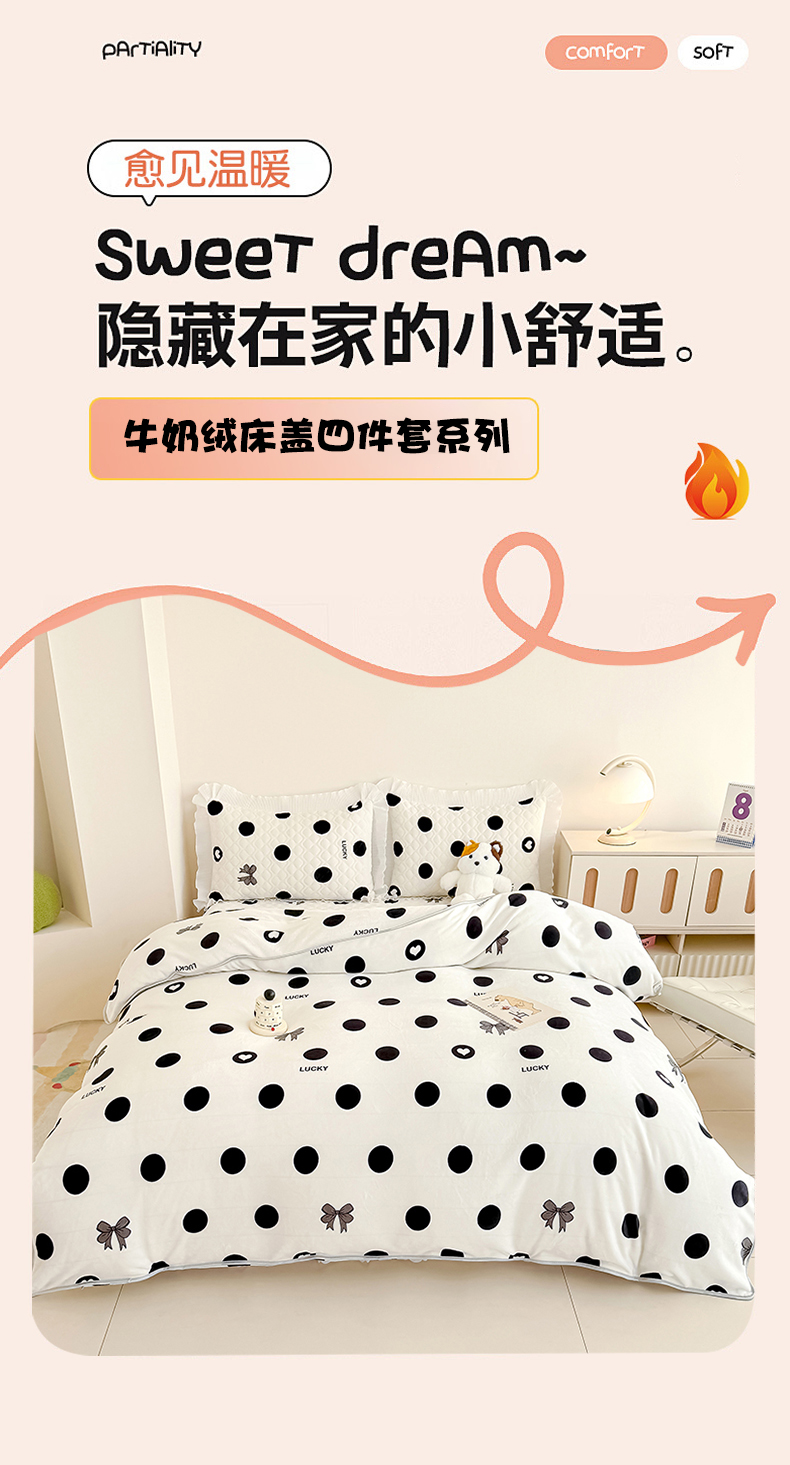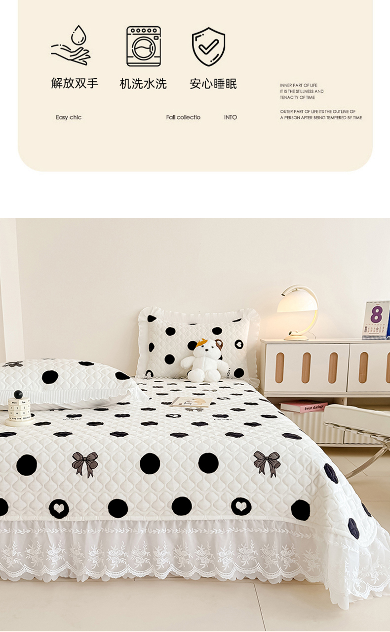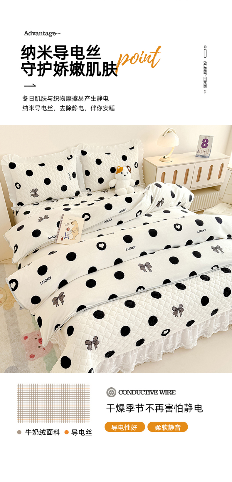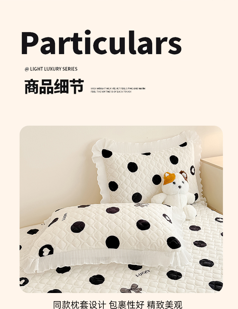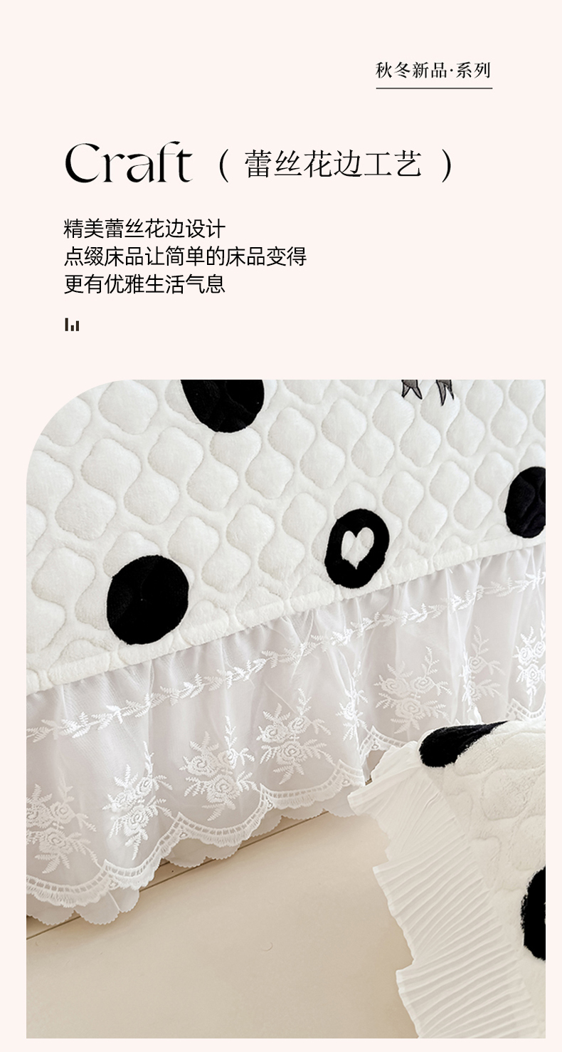 商品名称:冬然家纺 2025新款高克重牛奶绒蕾丝花边床盖系列 幸运点点