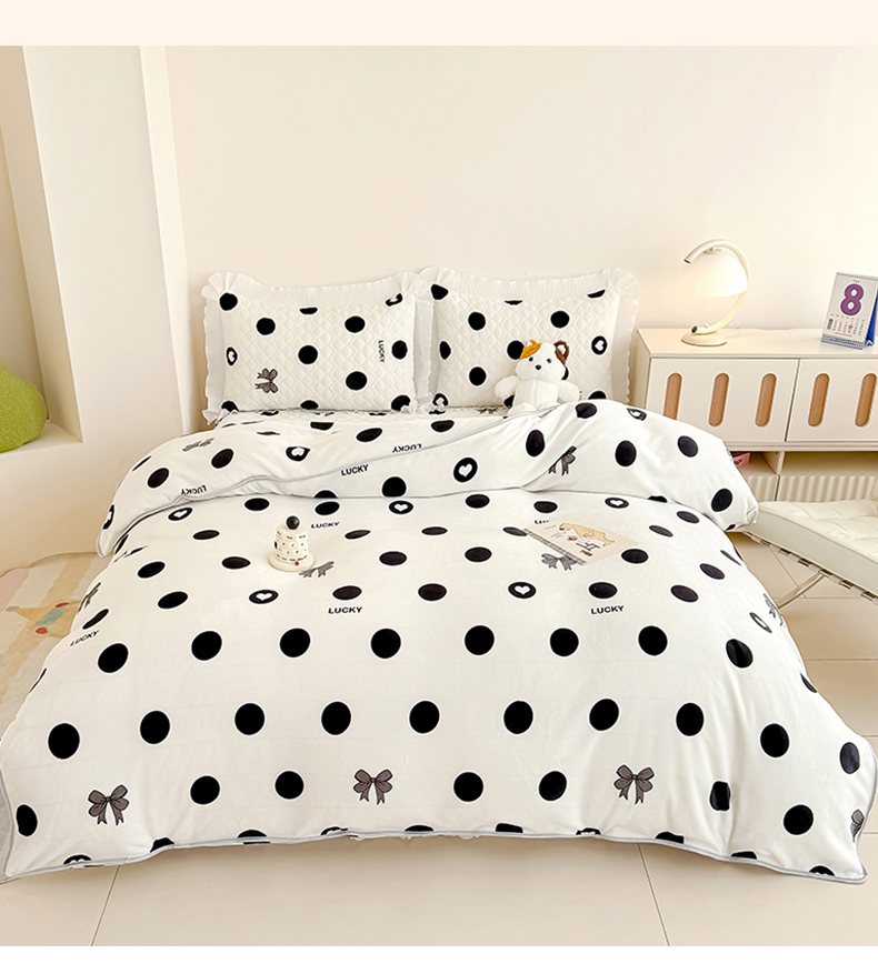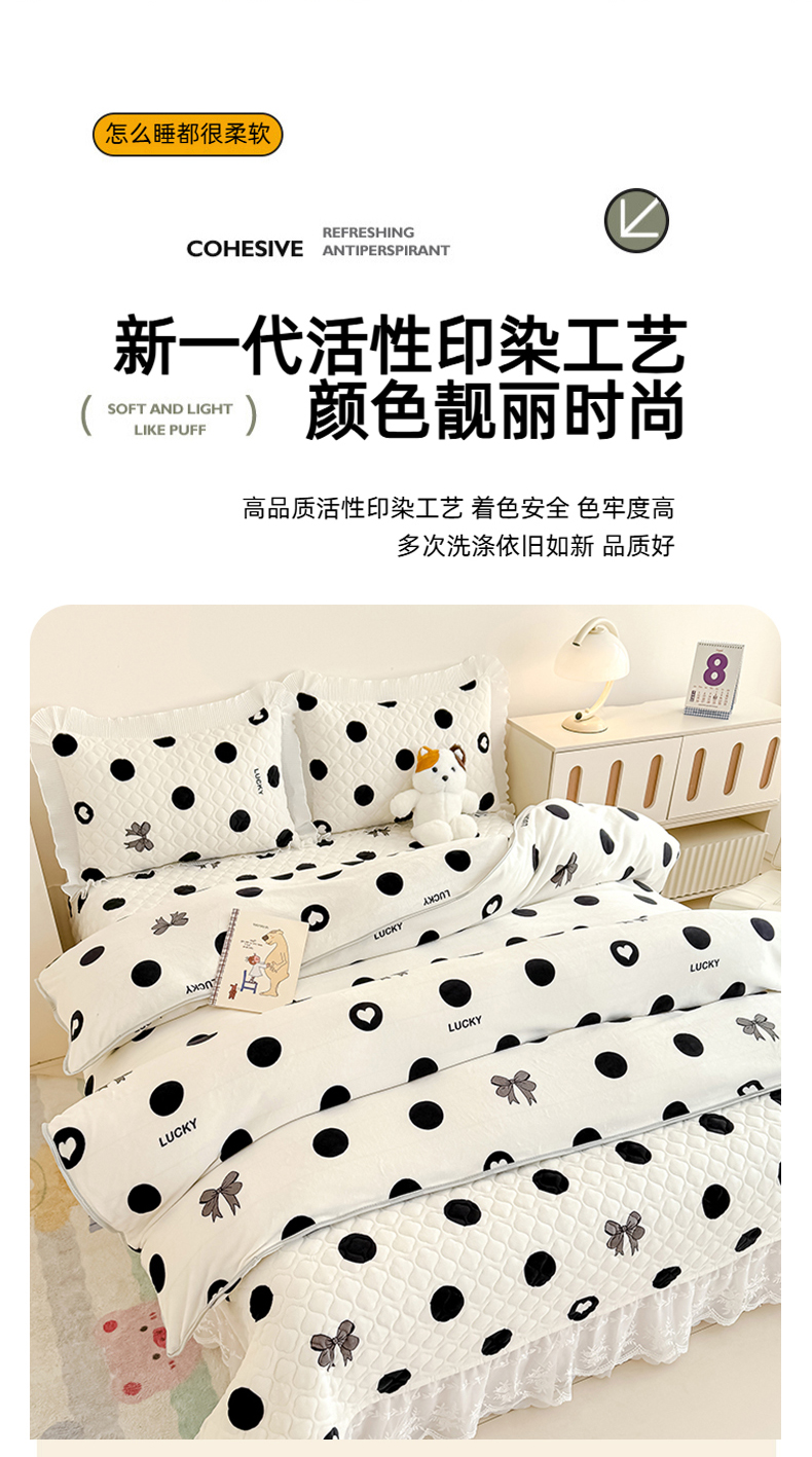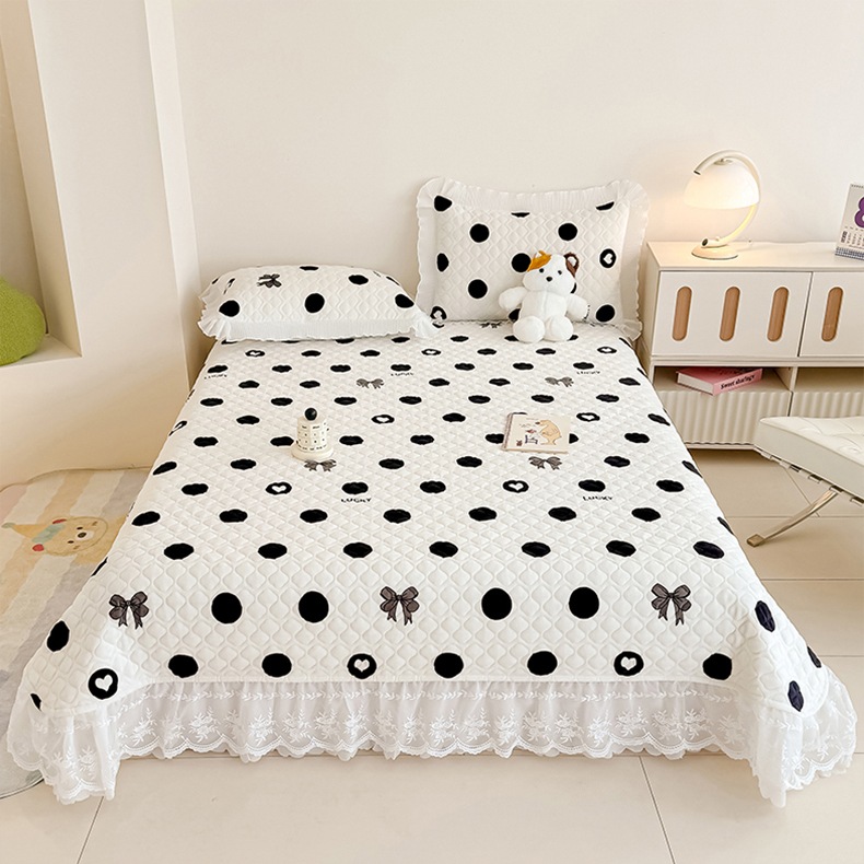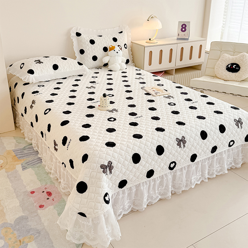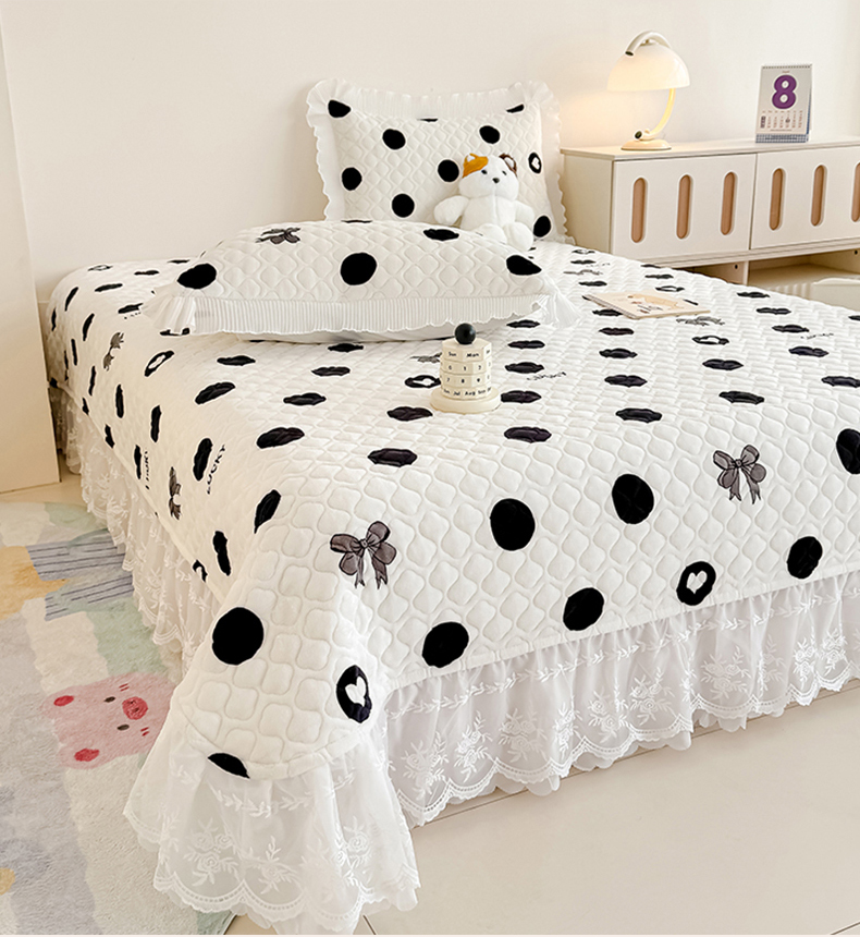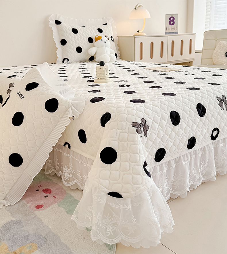 冬然家纺 2025新款高克重牛奶绒蕾丝花边床盖系列 幸运点点
