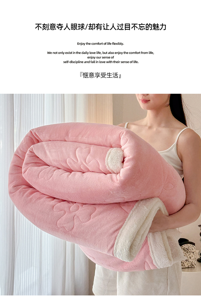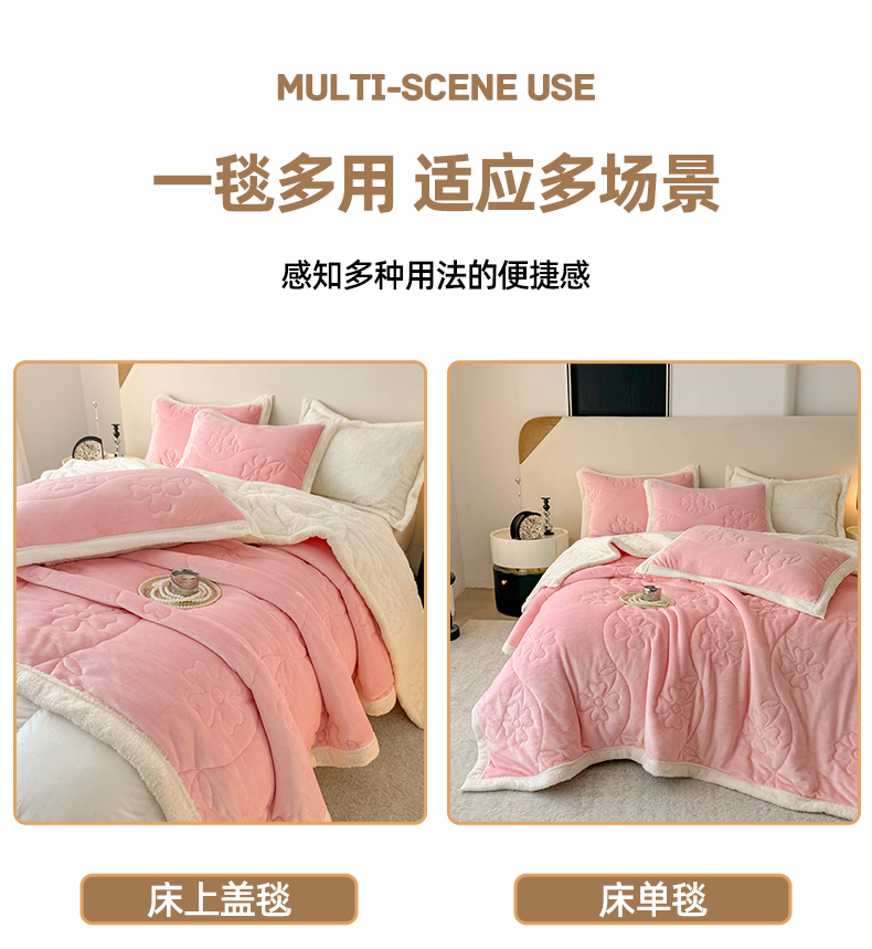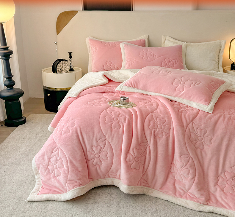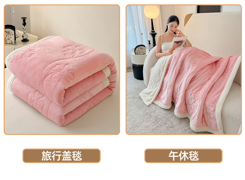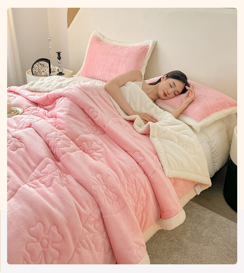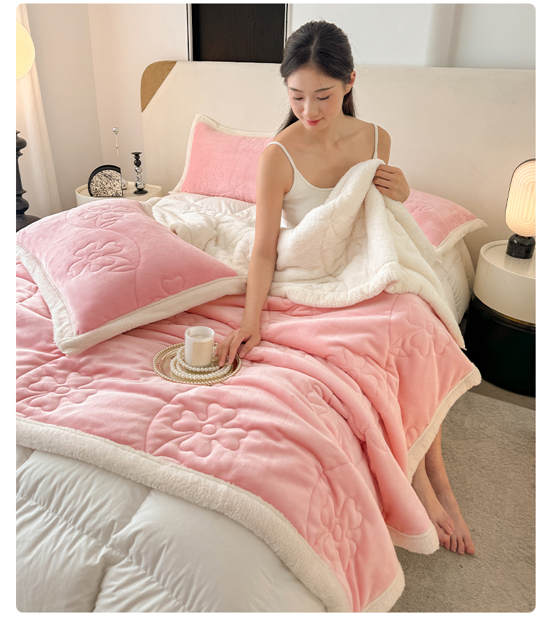 商品名称:青竹苑 2025新款A类婴儿绒北极绒羽丝棉三层夹棉盖毯多功能盖毯 玉粉