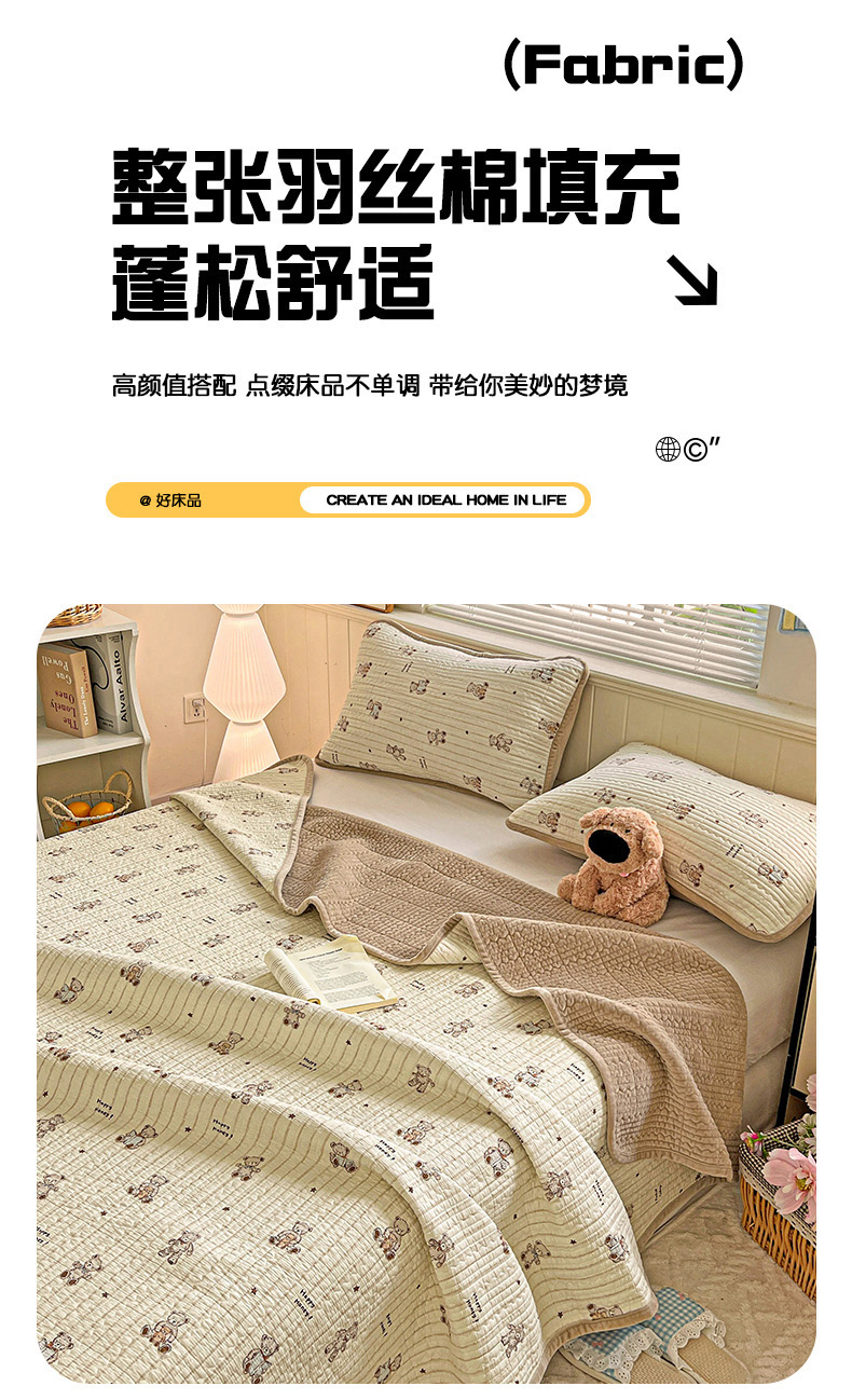 (总)漫时光 2025新款正面纯棉反面宝宝绒印花夹棉砂洗床盖三件套,班尼熊,风铃小兔,花间小兔,花园兔,开心屋,蕾丝小狗,猫咪派对,曲奇小狗,条纹熊,汪汪曲,小狗日记,小伙伴,小熊猫