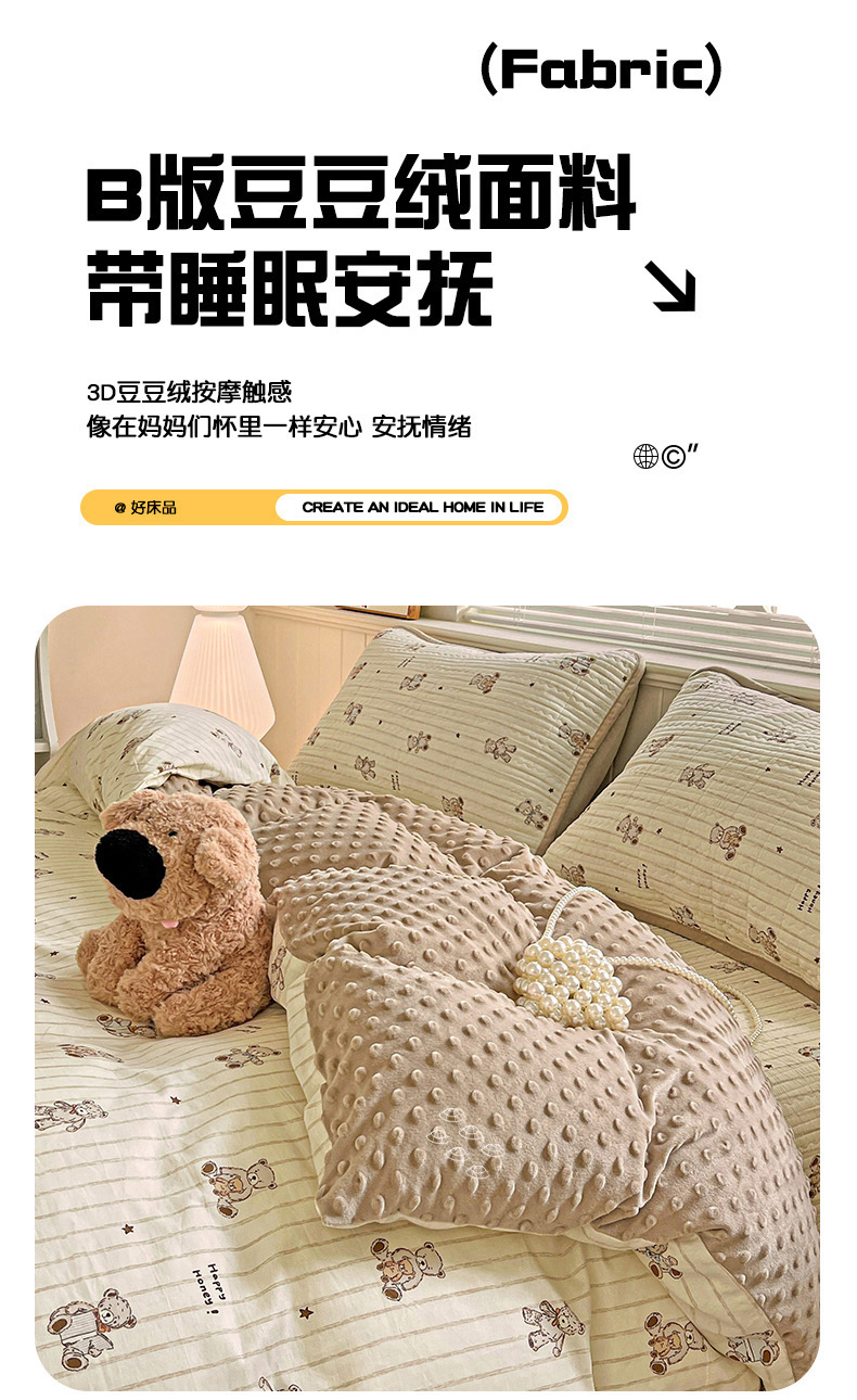 (总)漫时光 2025新款正面纯棉反面宝宝绒印花夹棉砂洗床盖四件套,班尼熊,曲奇小狗,条纹熊,蕾丝小狗,汪汪曲,开心屋,小狗日记,花园兔,小伙伴,花间小兔,小熊猫,风铃小兔,猫咪派对