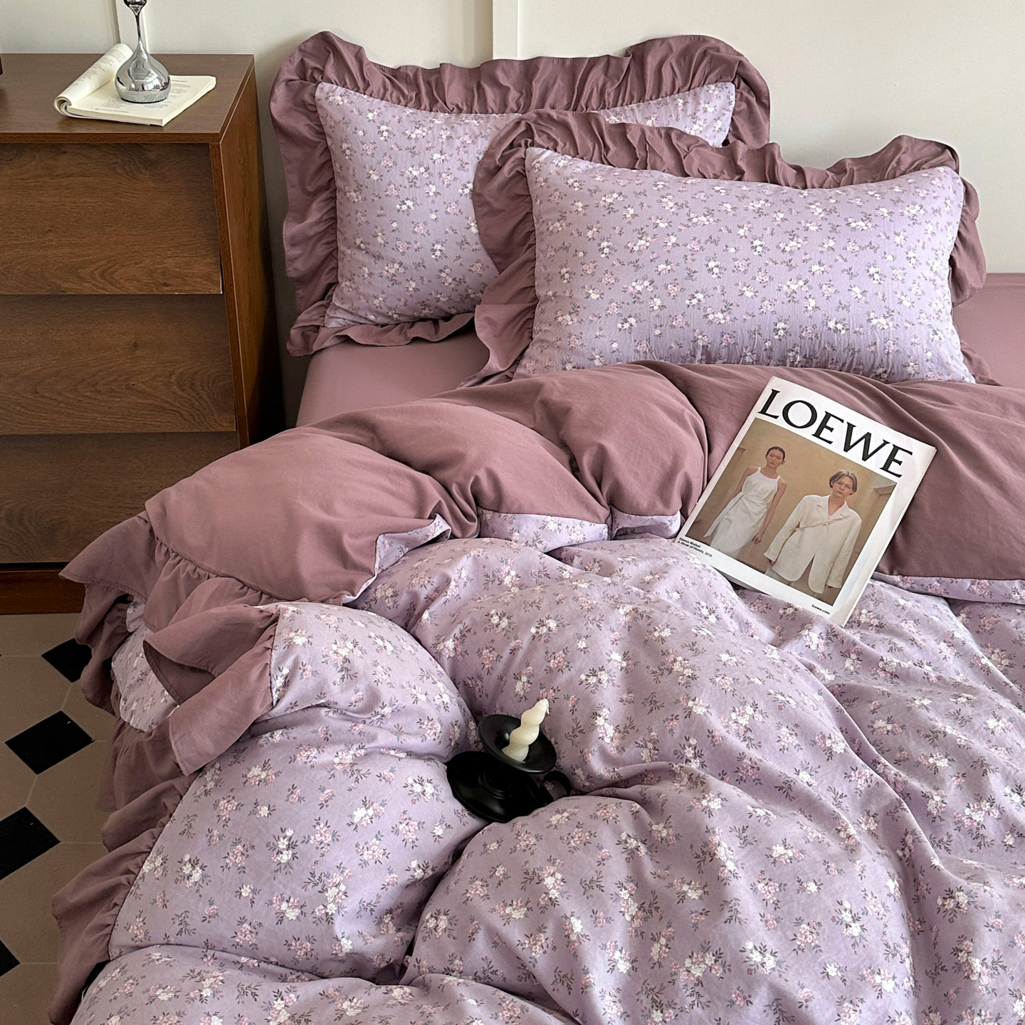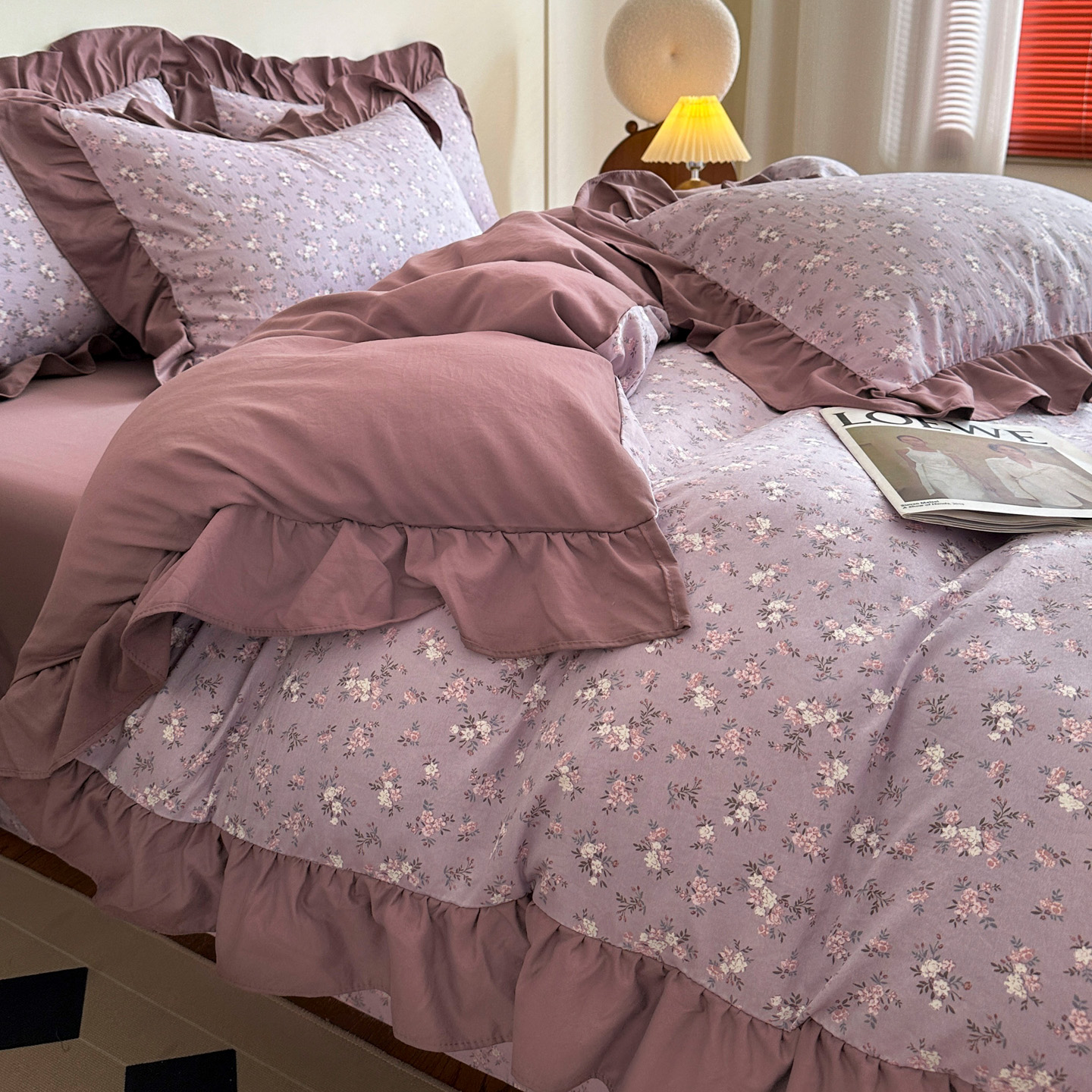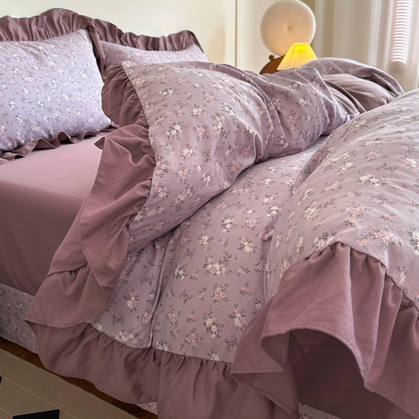 梦莱斯 2025新款高克重云感棉四件套-花边款 柔紫花绪