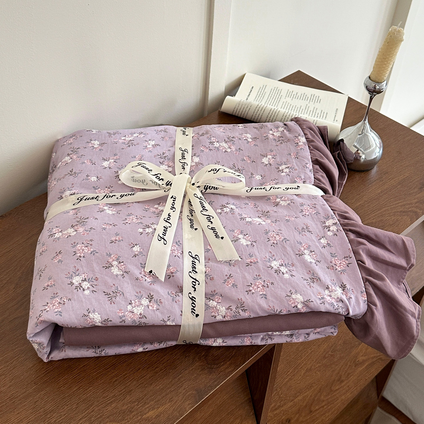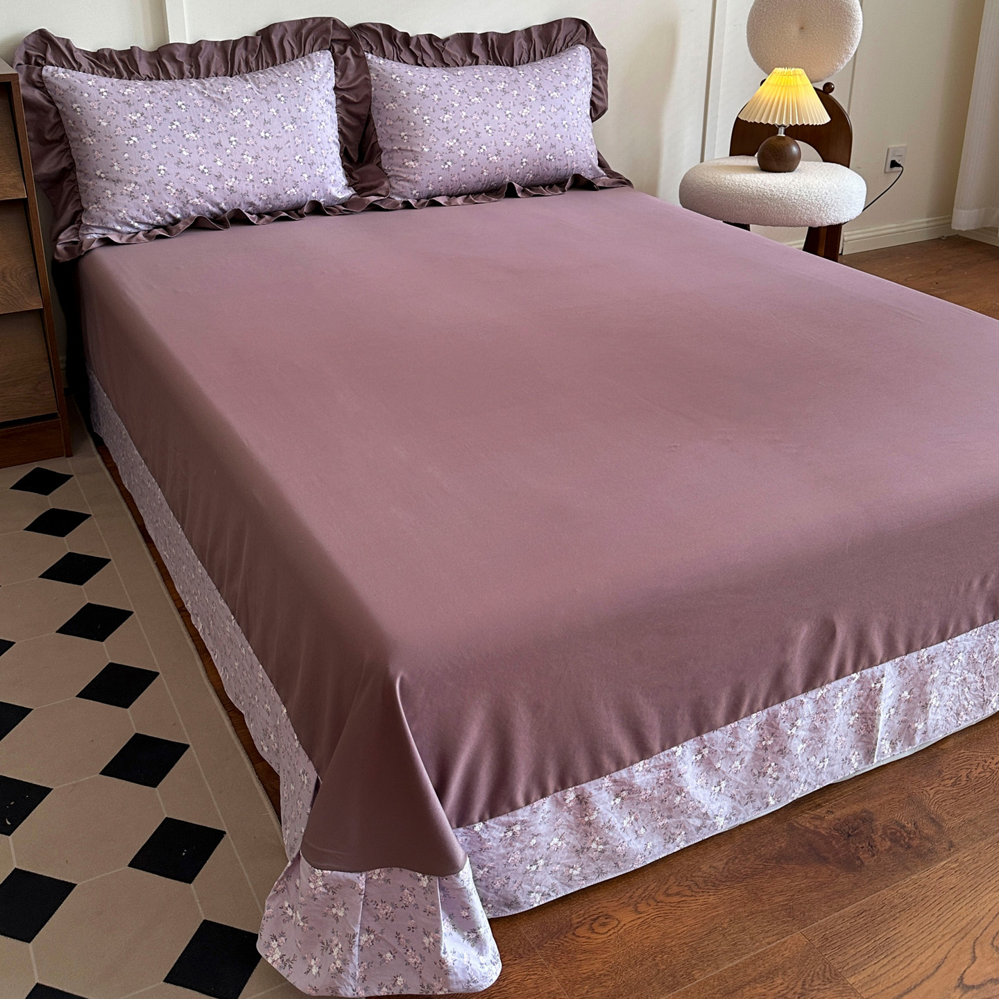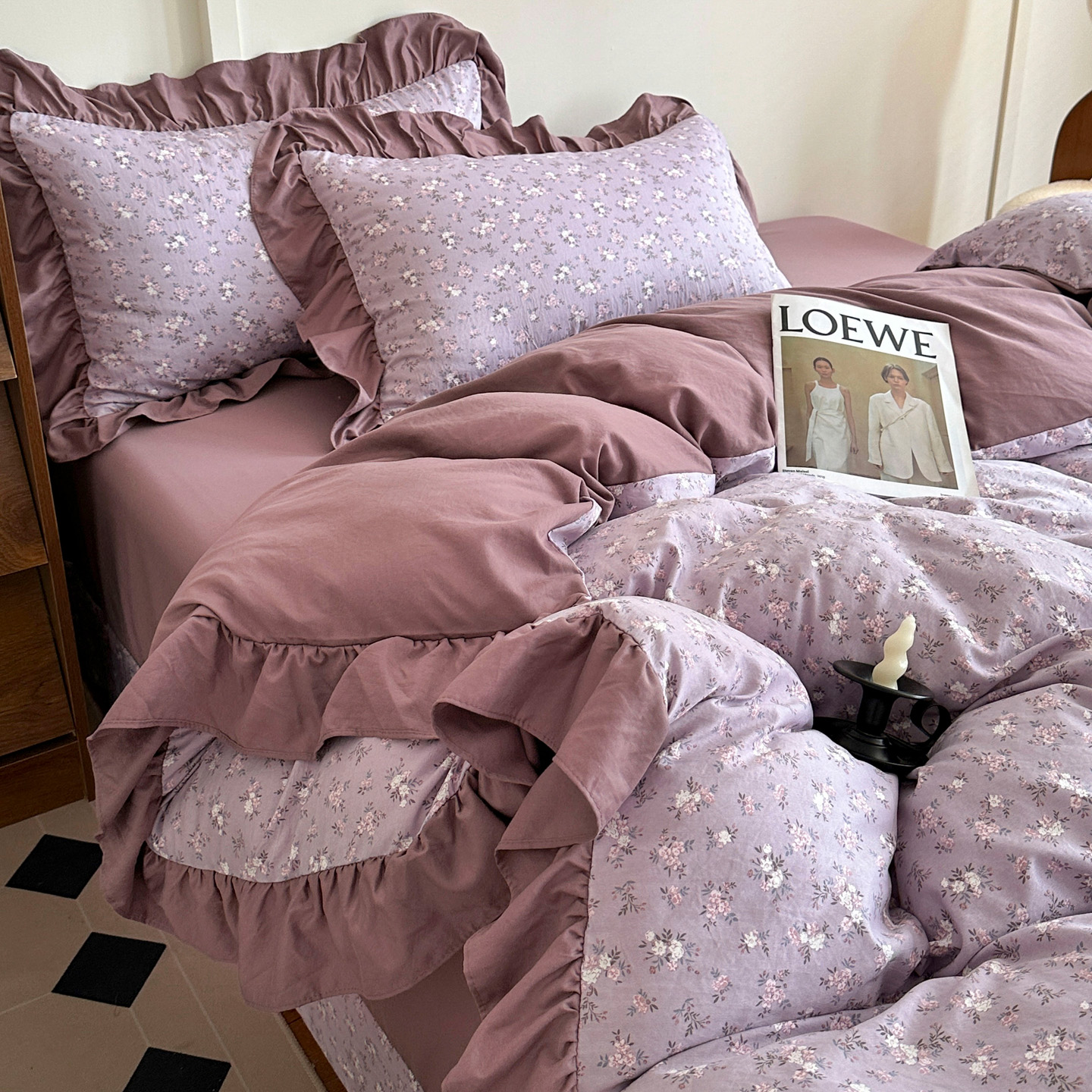 梦莱斯 2025新款高克重云感棉四件套-花边款 柔紫花绪