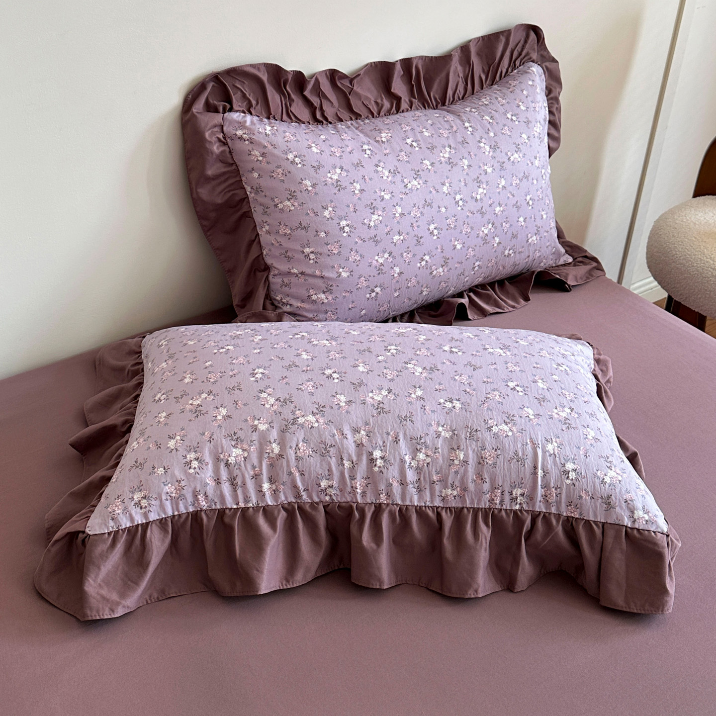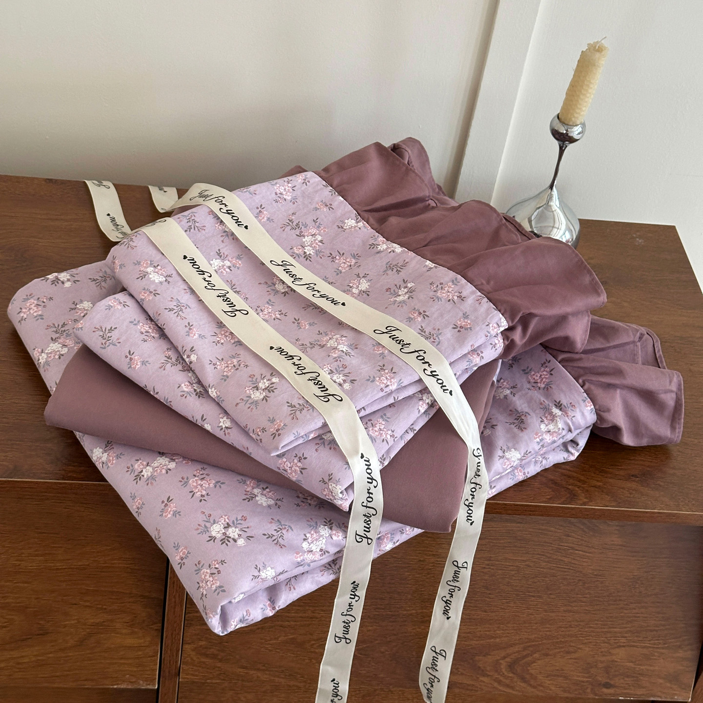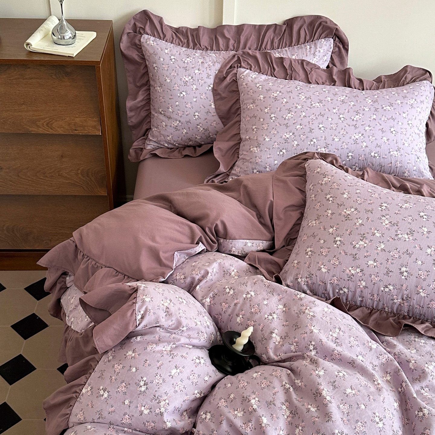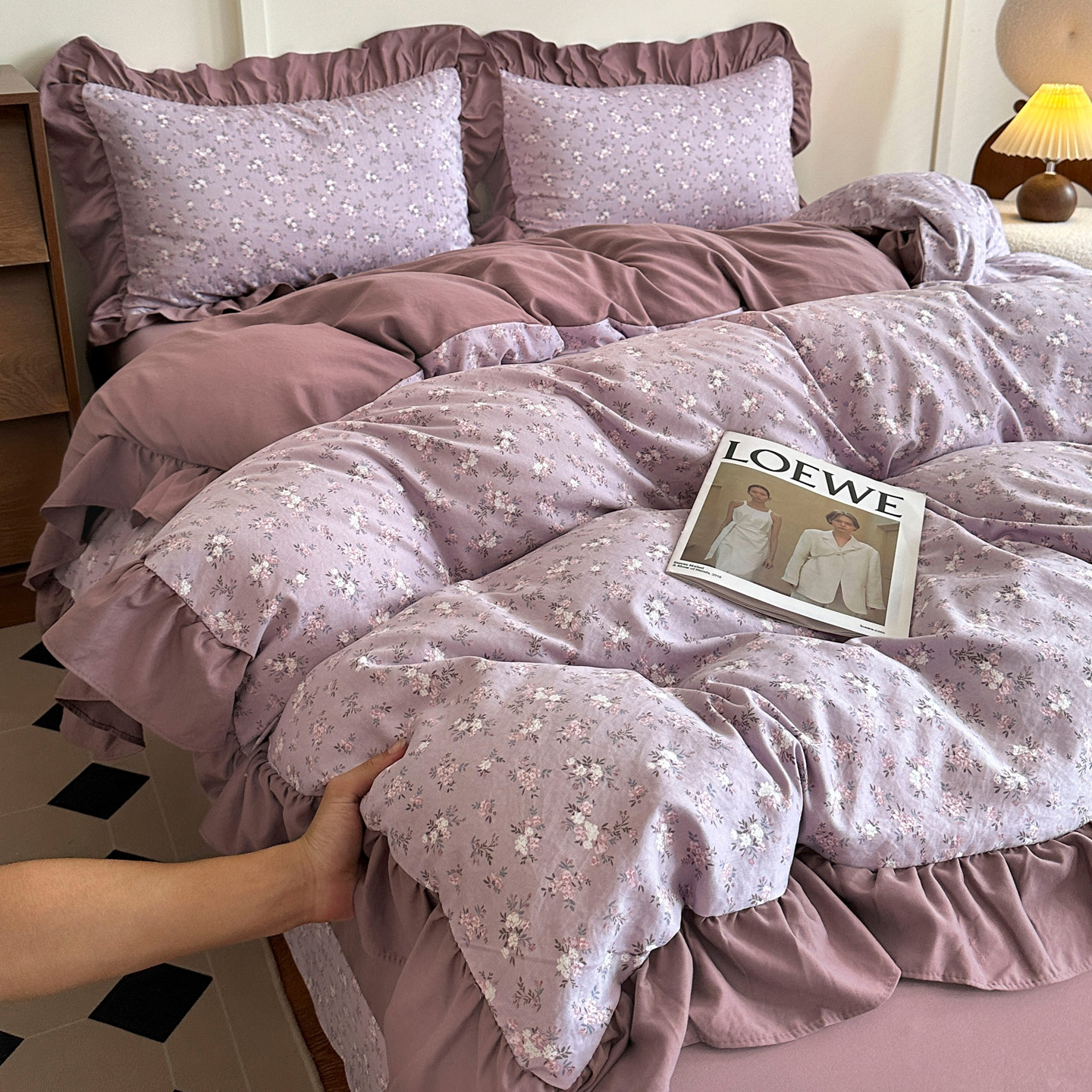 商品名称:梦莱斯 2025新款高克重云感棉四件套-花边款 柔紫花绪