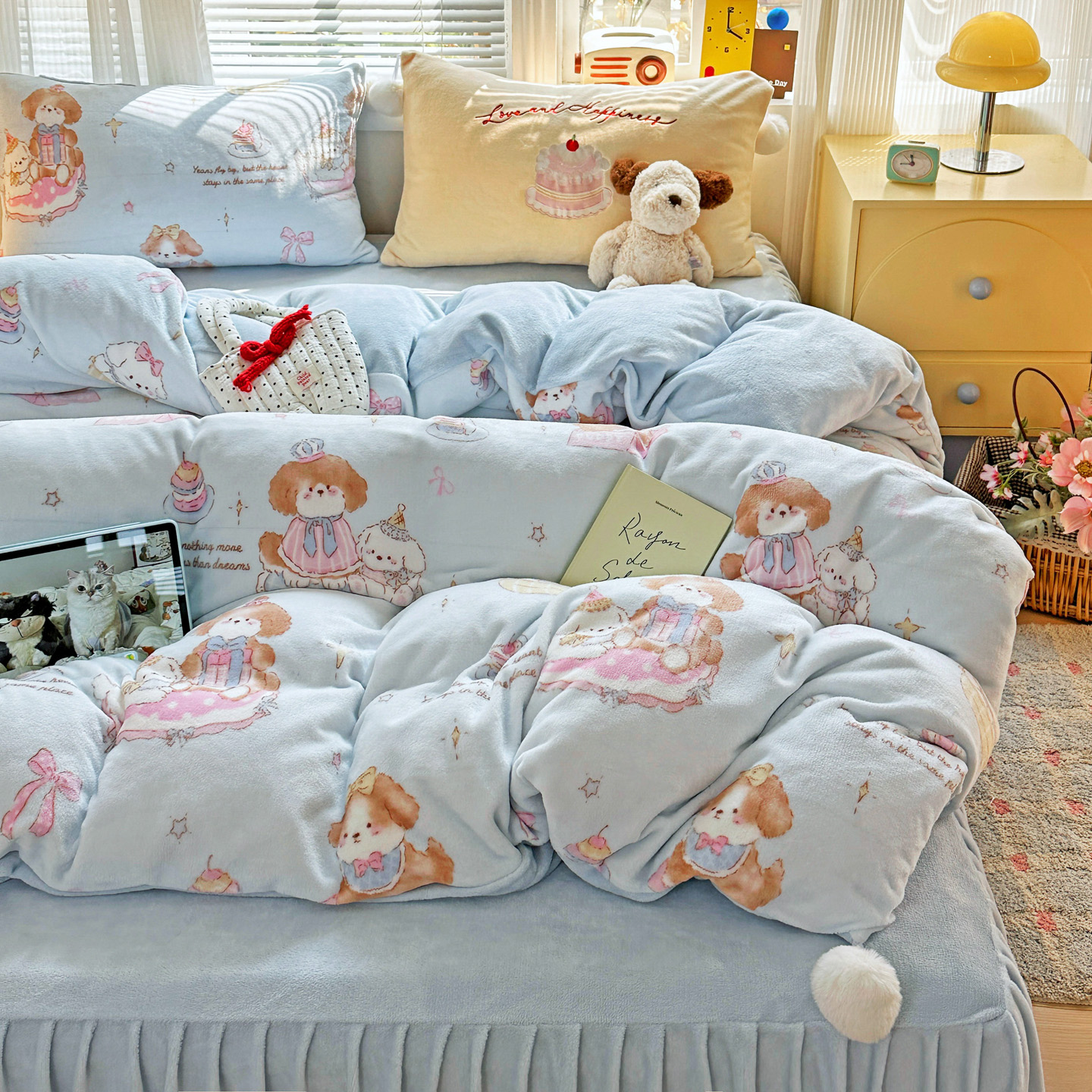 当前位置: 91家纺网 > 商品网购 > 床品套件 > 四件套 > 牛奶绒四件套 > 麦朵家居 2025新款高克重毛球绣花四件套印花牛奶绒四件套高克重宝宝绒床裙款四件套牛奶绒床笠兔绒三件套 可爱女孩