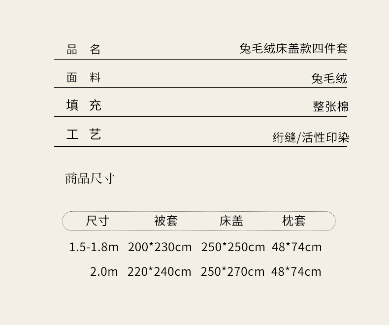 商品名称:美伦美焕 2025新款直播热款高克重兔毛绒床盖款四件套 暖桔