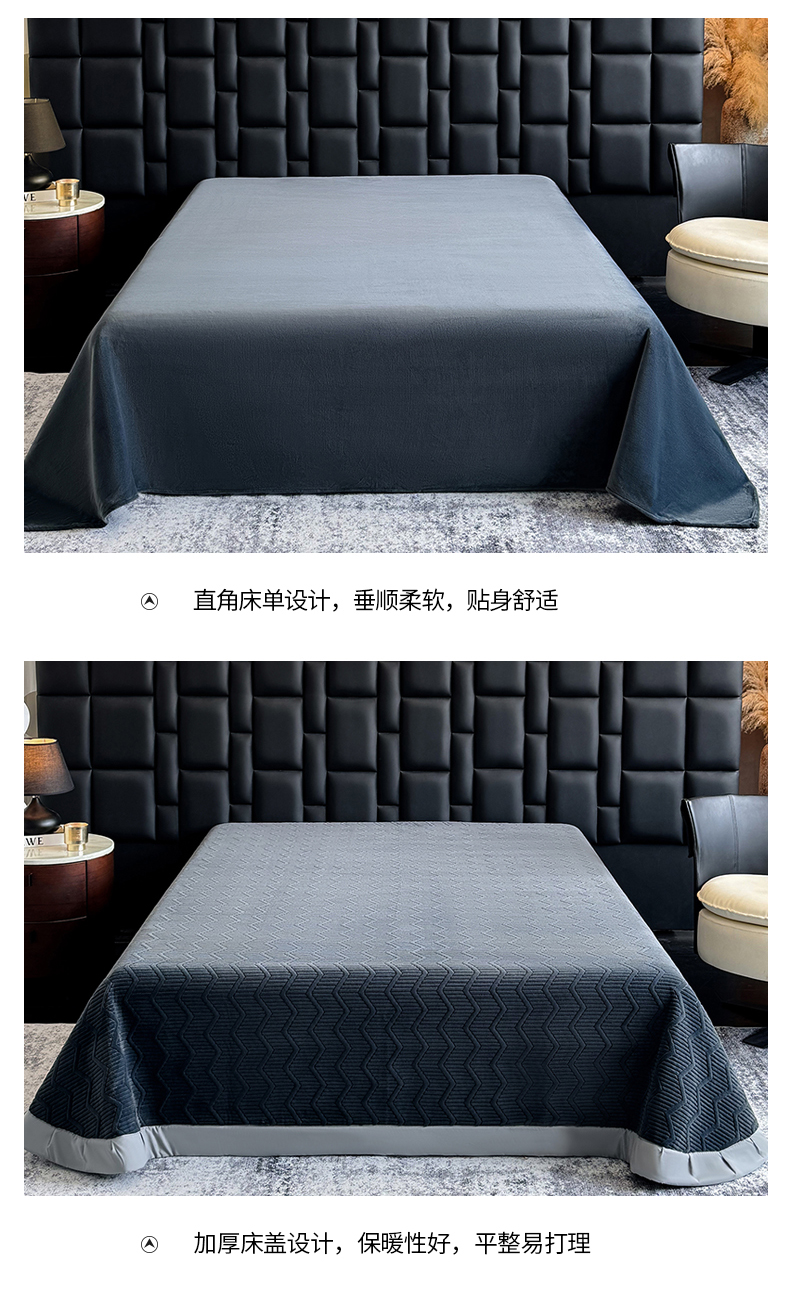商品名称:新方向 2025新款240克全消光A类数码印花牛奶绒四件套床盖款-情怀 情怀-爵士灰