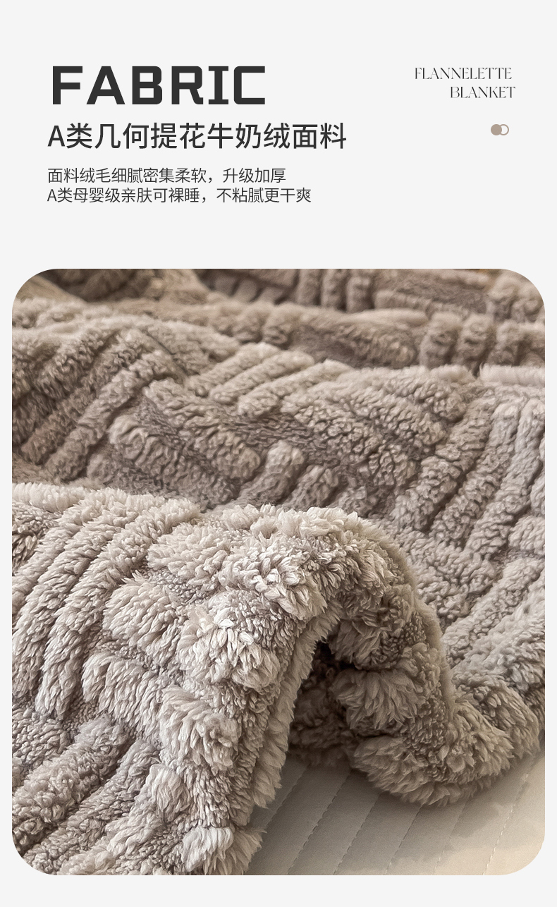 商品名称:世纪绒品 2025新款A类几何牛奶绒提花毛毯 几何-幻影灰