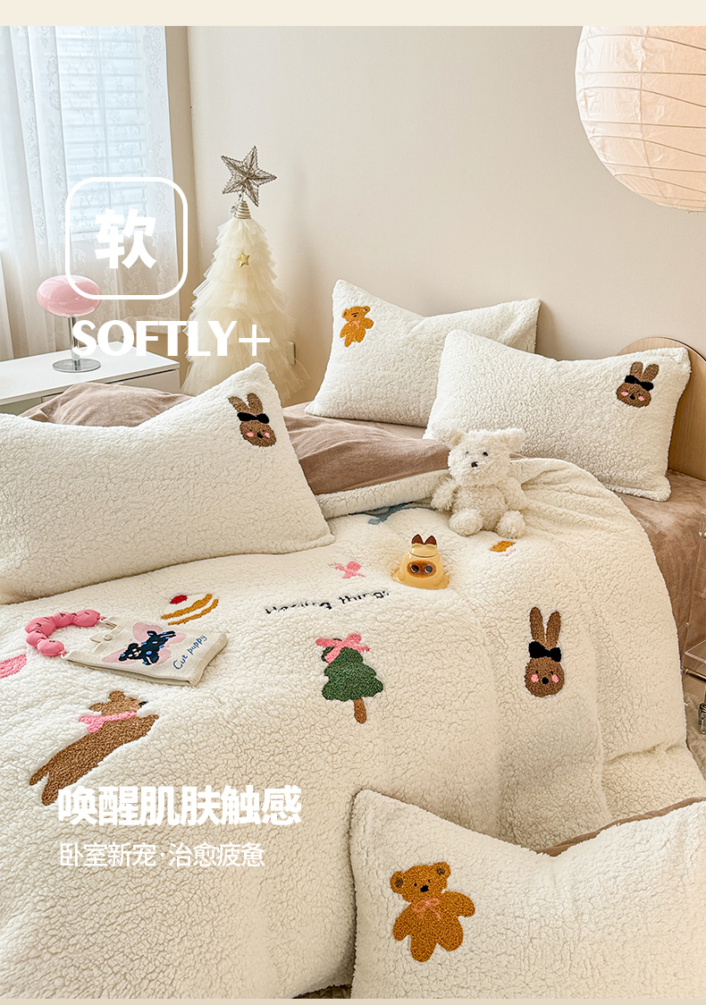 商品名称:懒猫家纺 2025新款羊羔绒毛巾绣四件套 暖心熊