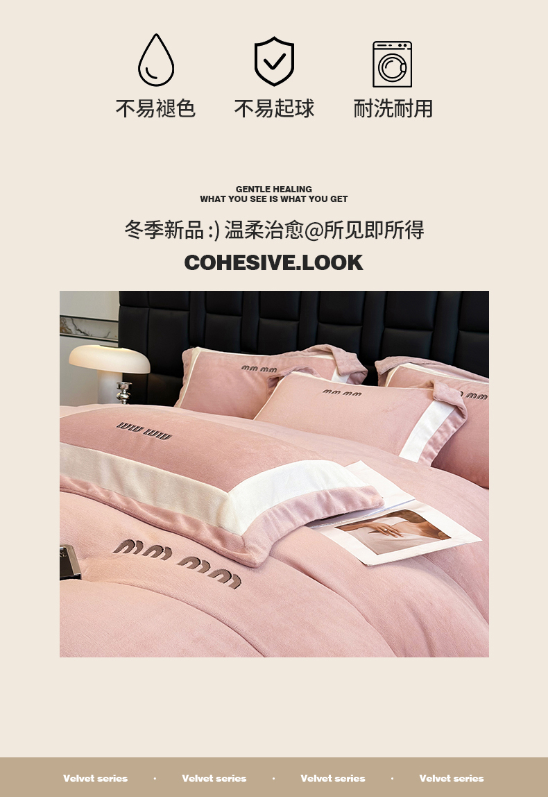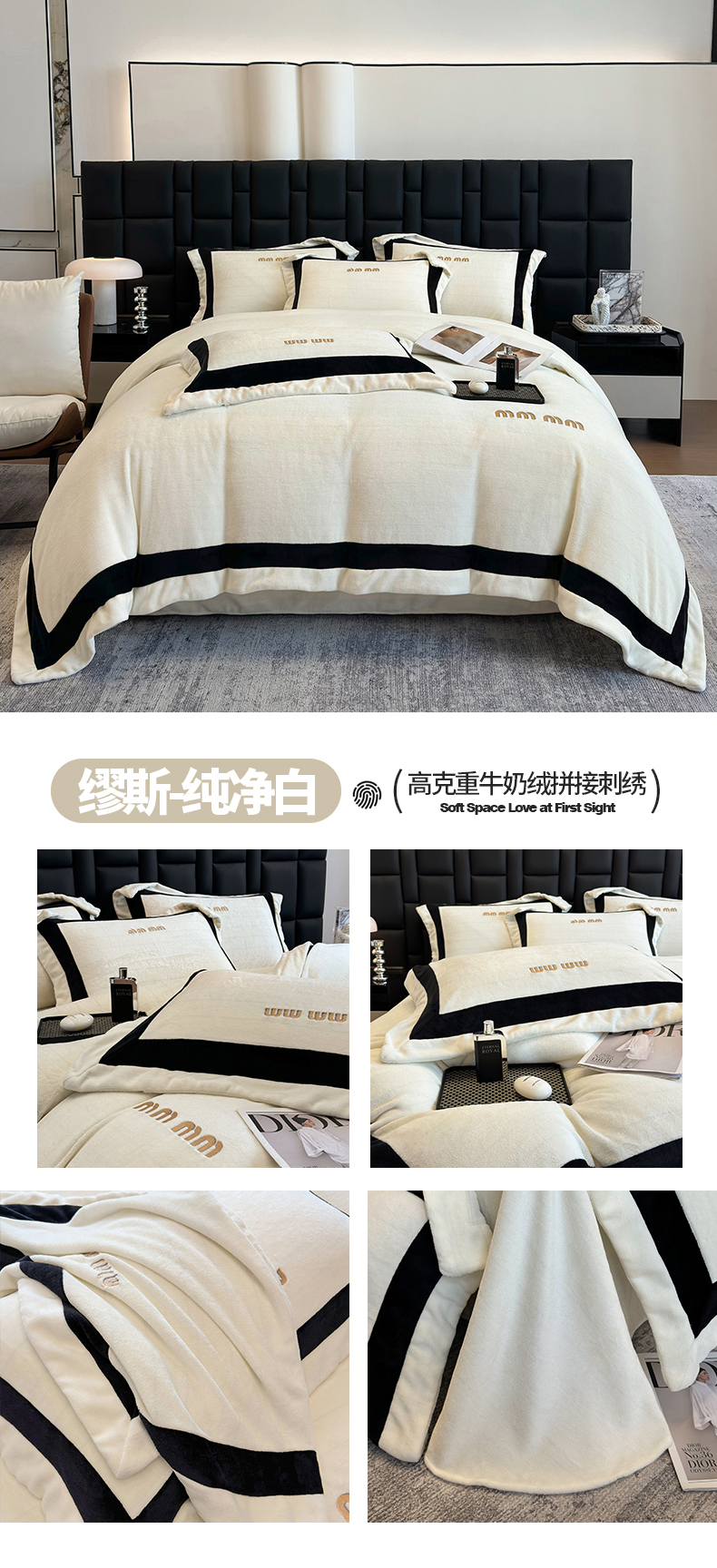 (总)懒猫家纺 2025新款亲肤舒适牛奶绒四件套-可可小姐系列,可可小姐-瓷白,可可小姐-水粉