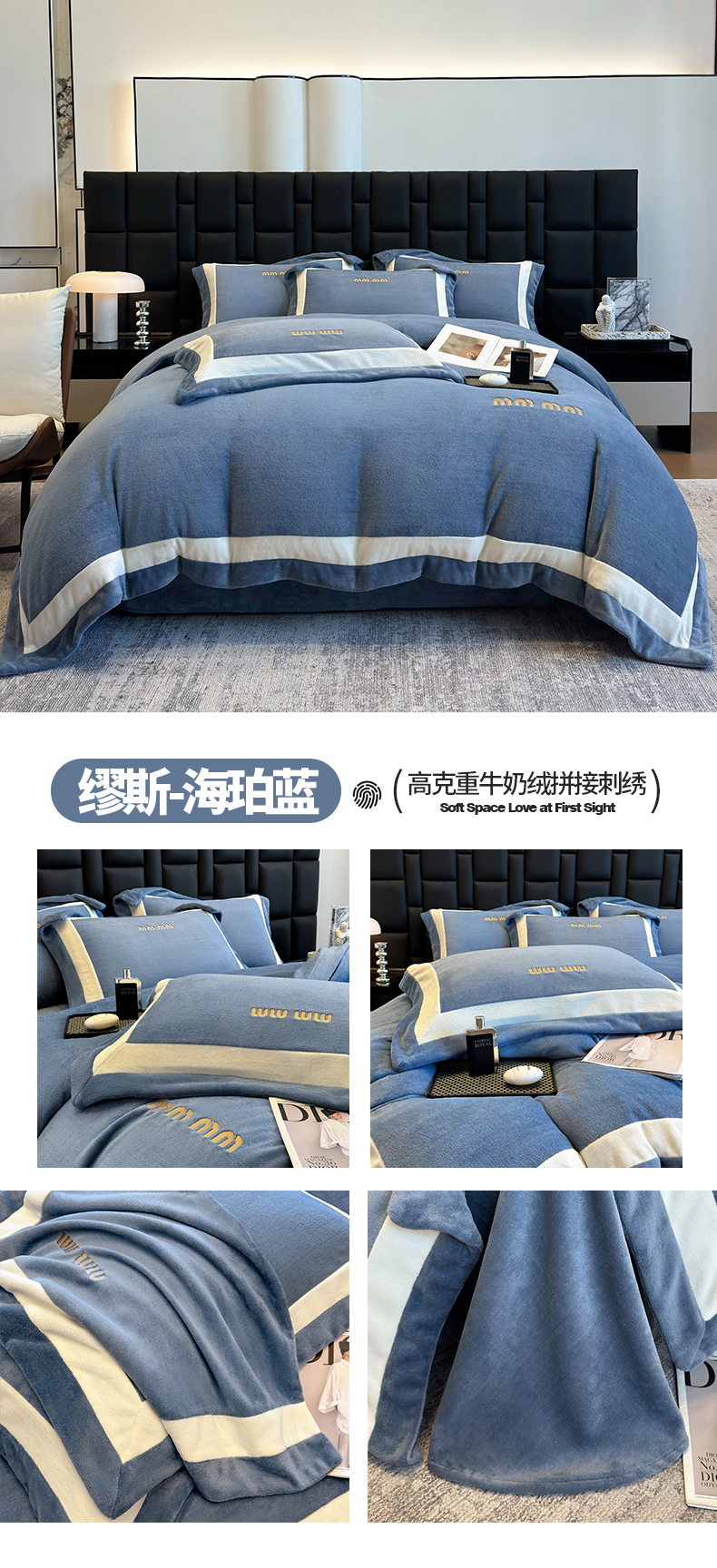 商品名称:懒猫家纺 2025新款轻奢拼接牛奶绒四件套-缪斯 缪斯-焦糖栗