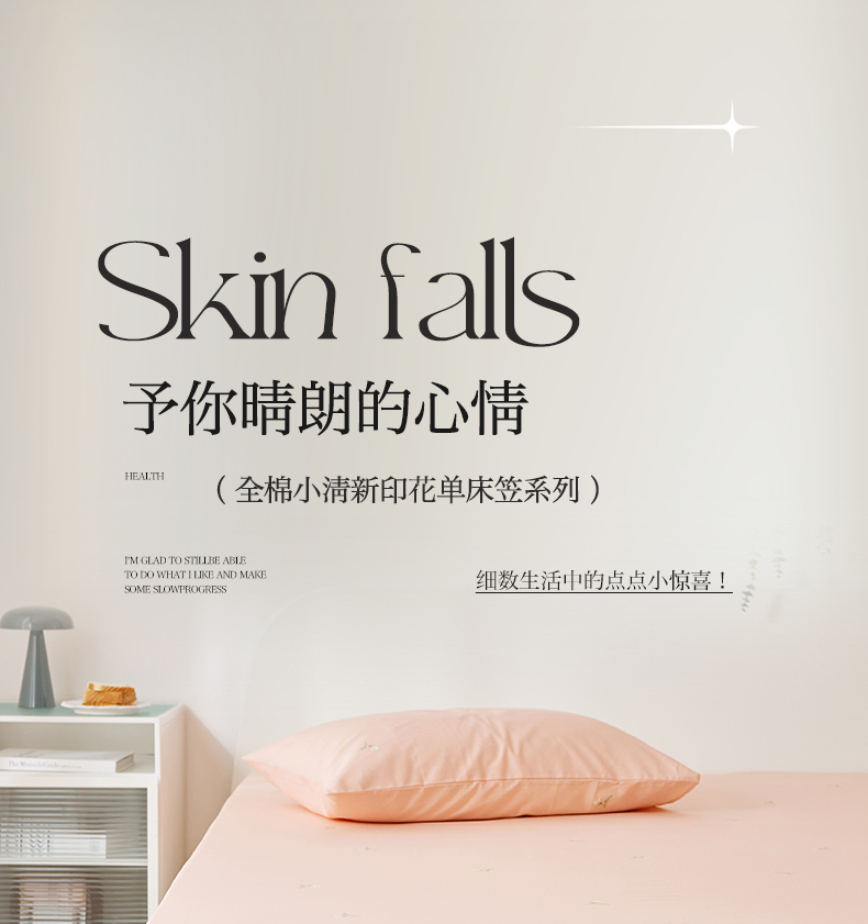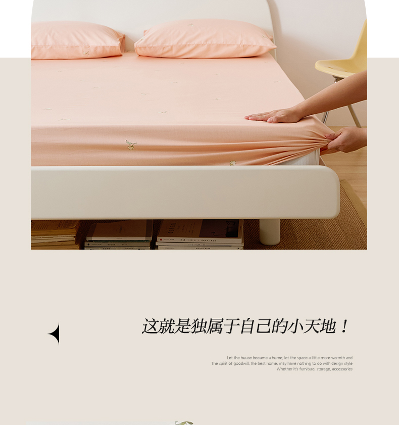 商品名称:EH家居 2025新款全棉小清新印花单床笠-织光系列 粉玉兰