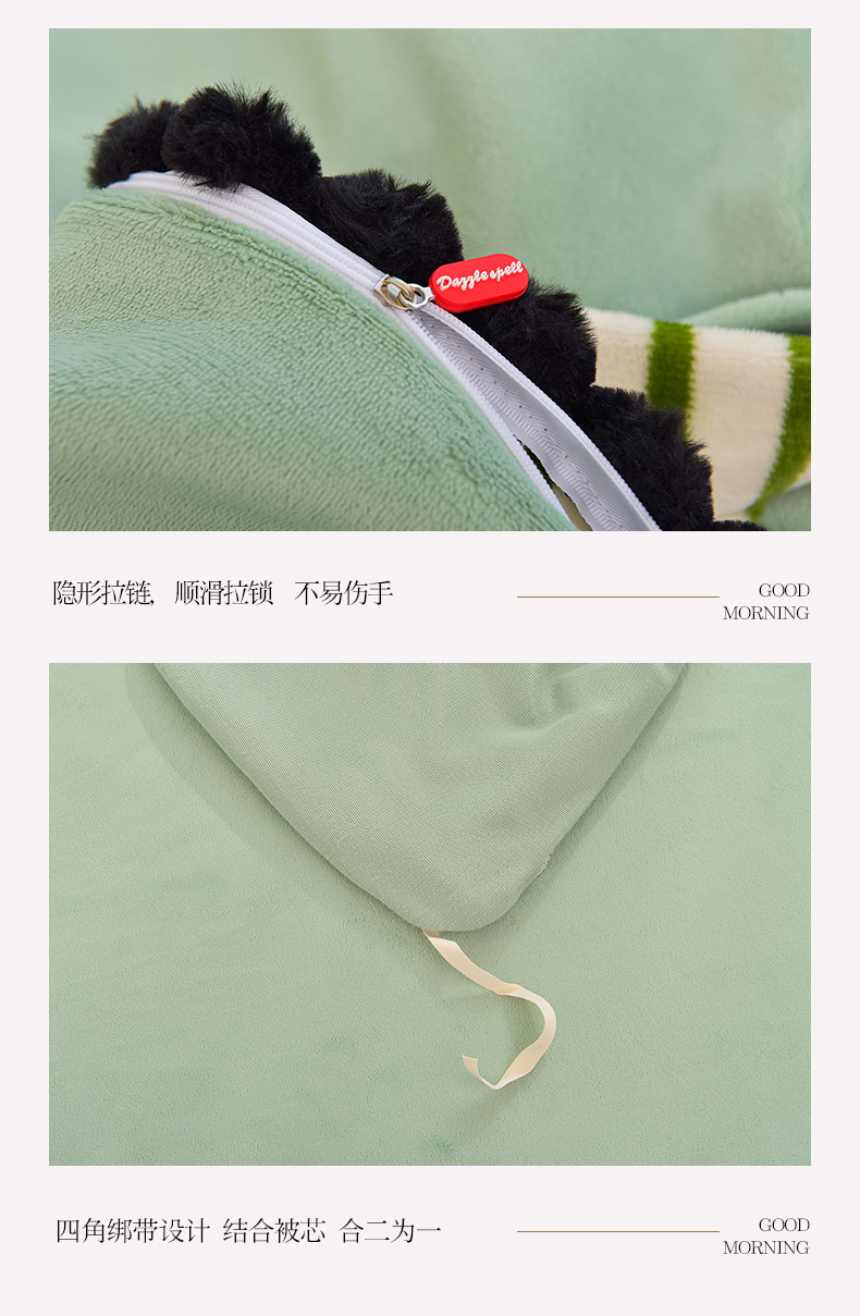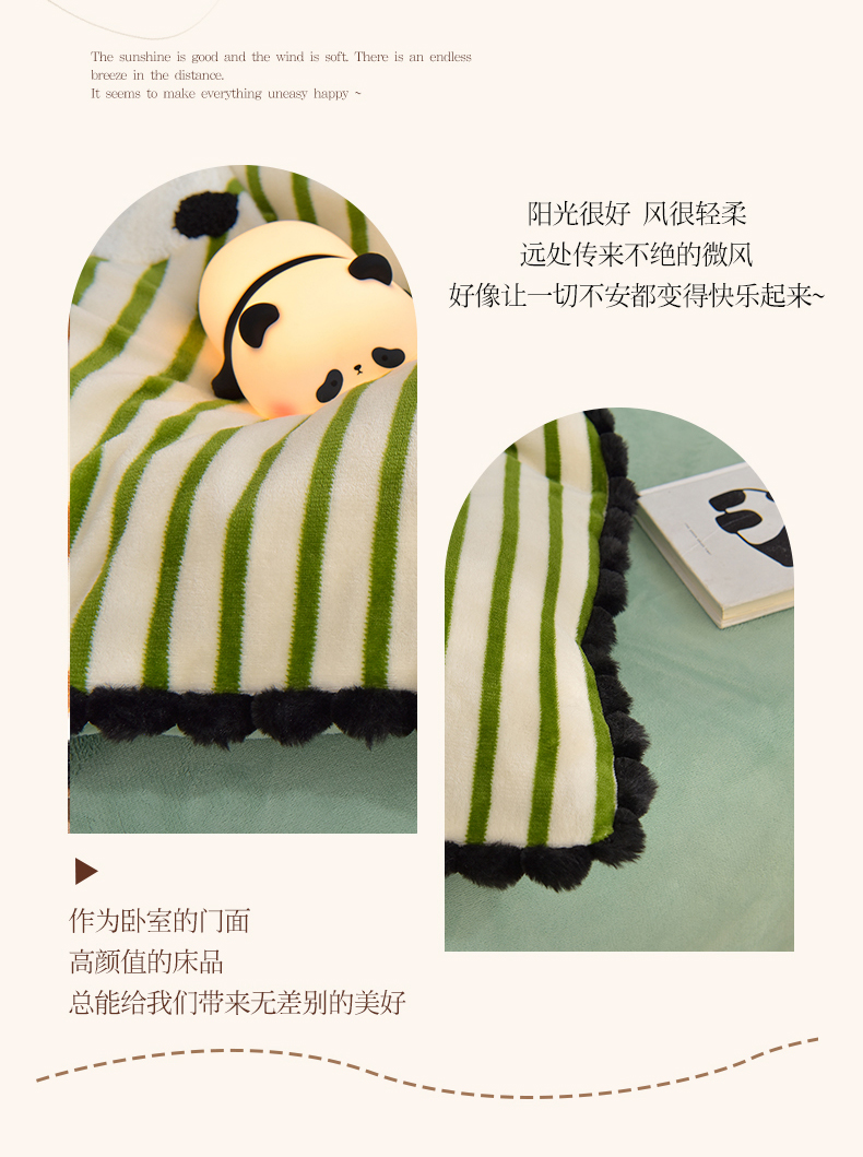 商品名称:炫拼家纺 2025新款大眼萌小熊韩系黑毛球毛巾绣牛奶绒四件套 大眼萌小熊猫-绿