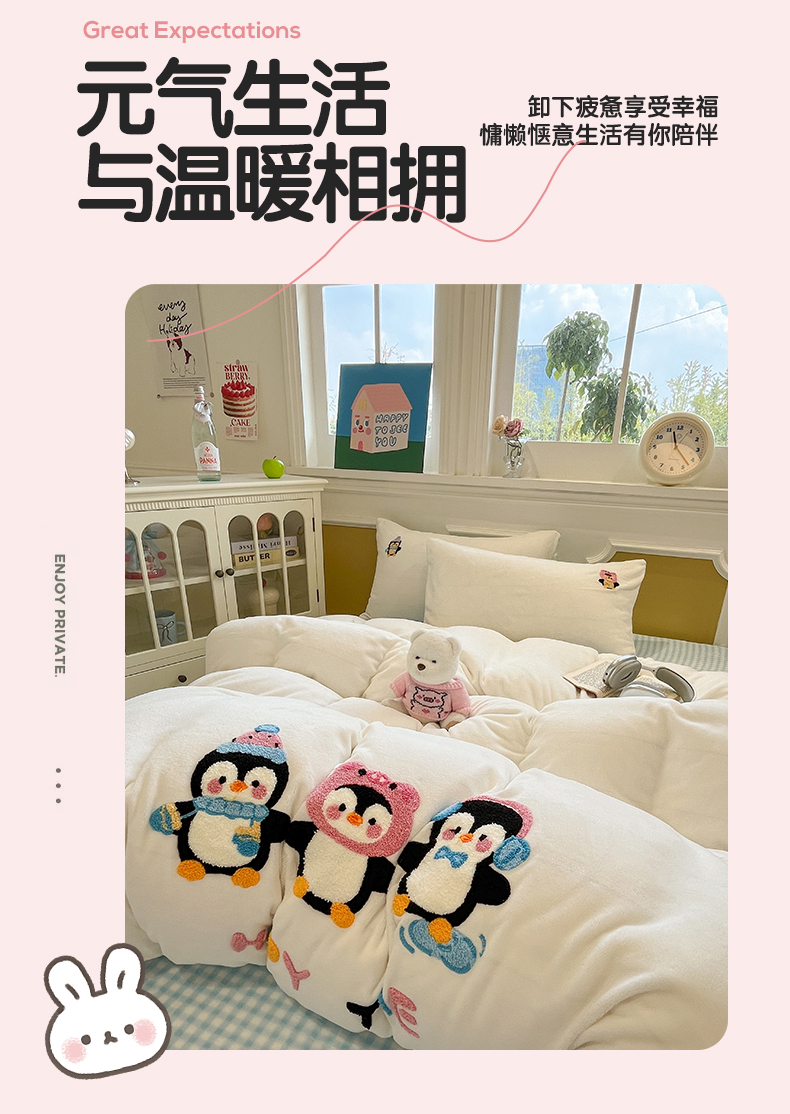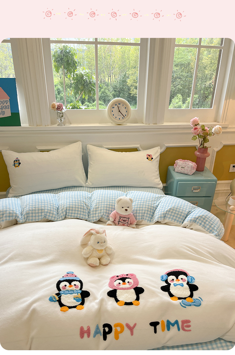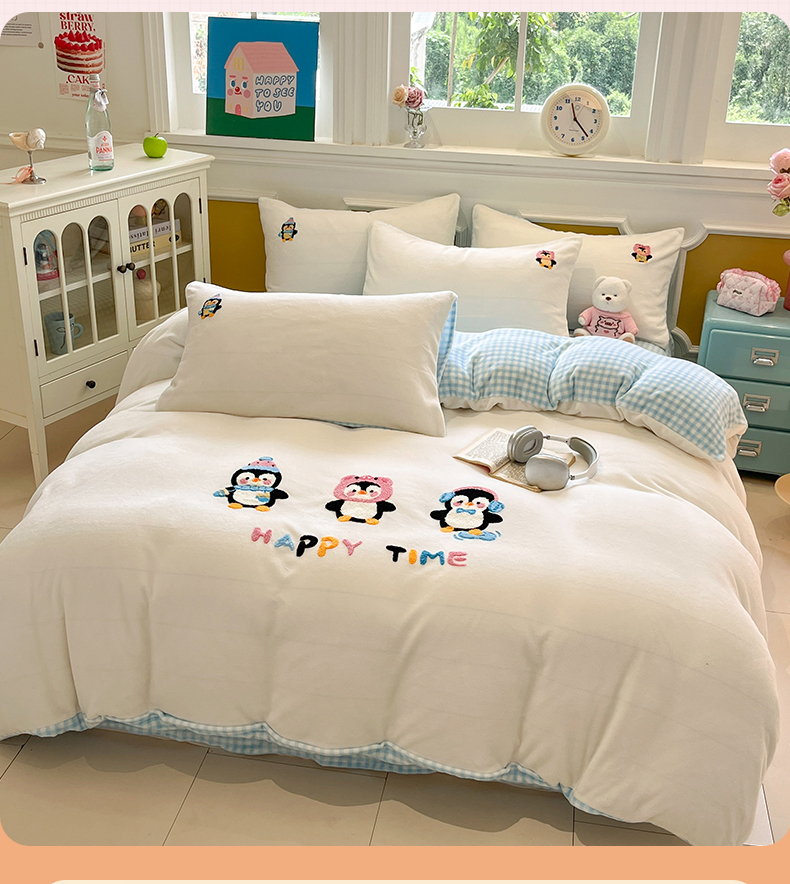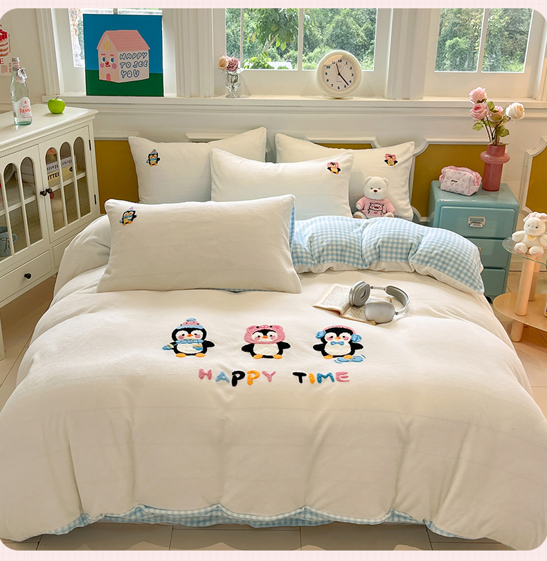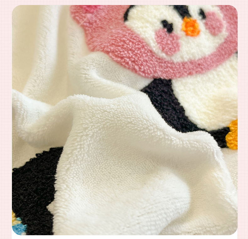商品名称:优迈 2025新款A类卡通200g牛奶绒毛巾绣四件套 企鹅伙伴