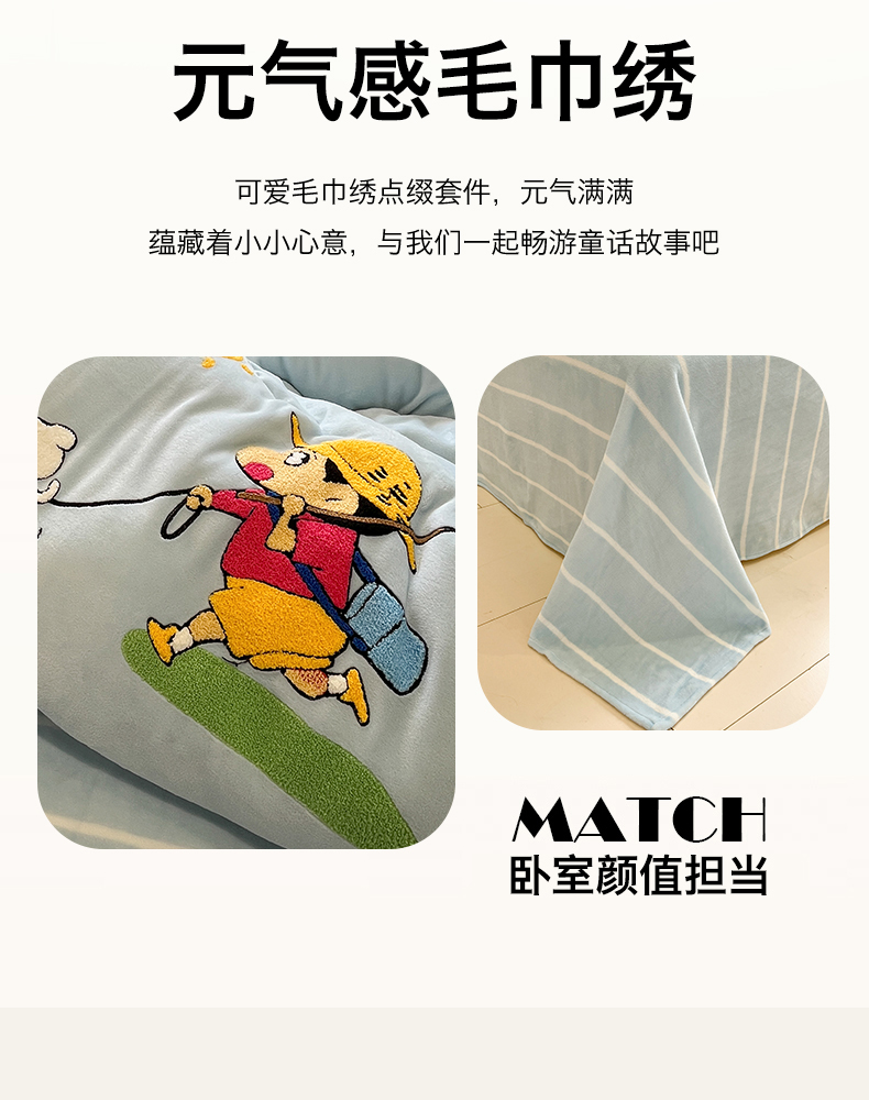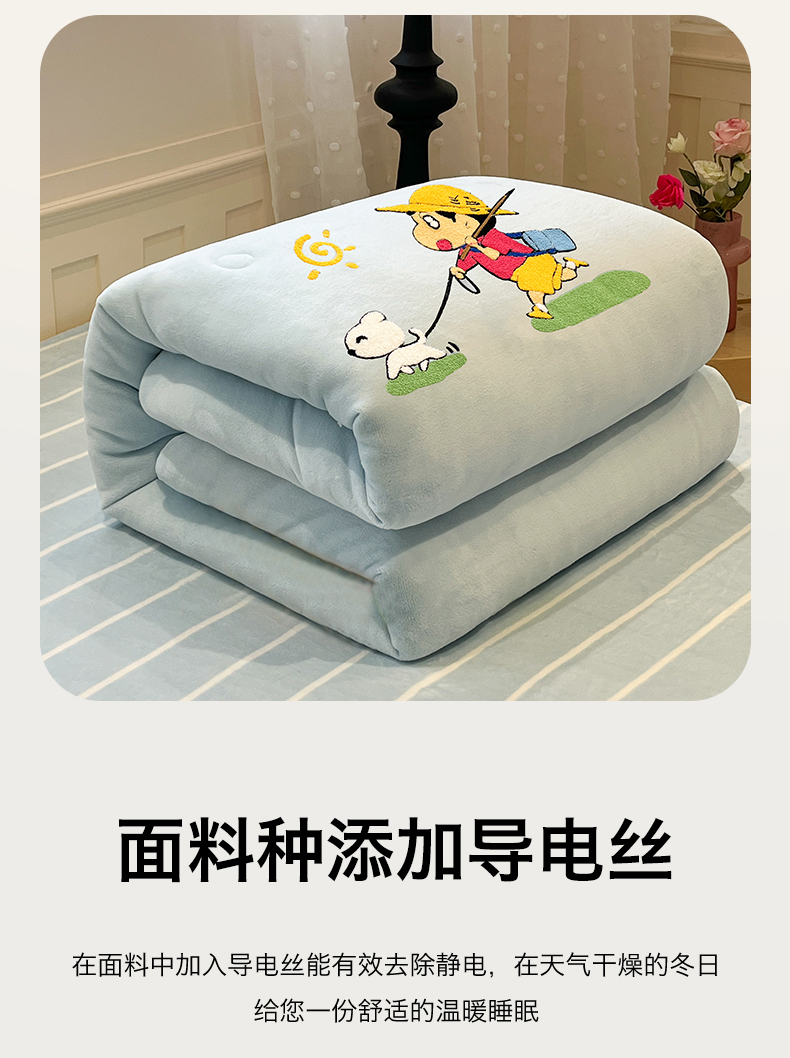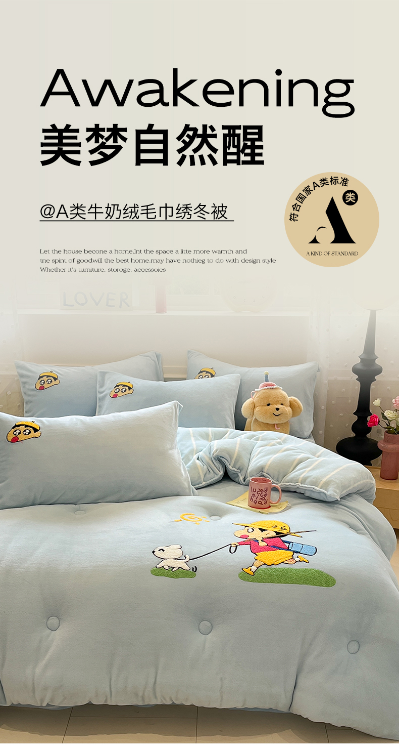 商品名称:优迈 2025新品牛奶绒毛巾绣冬被 被子被芯 冬被-春日漫游