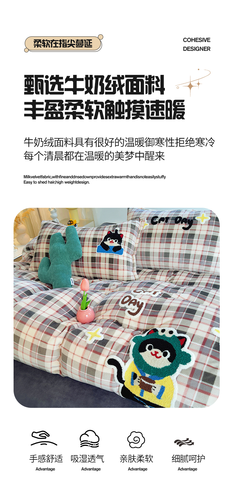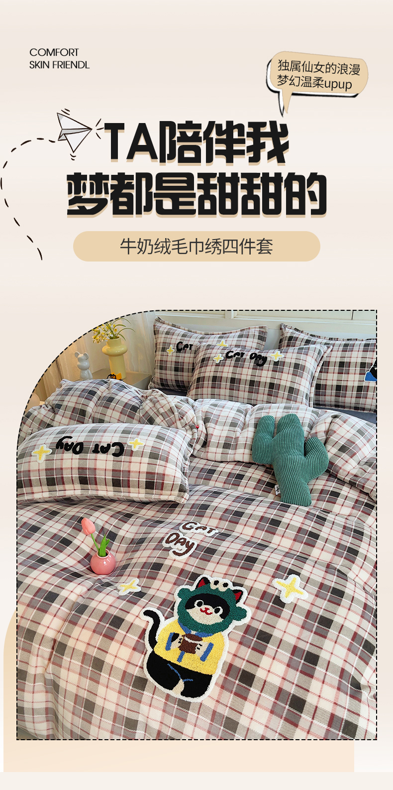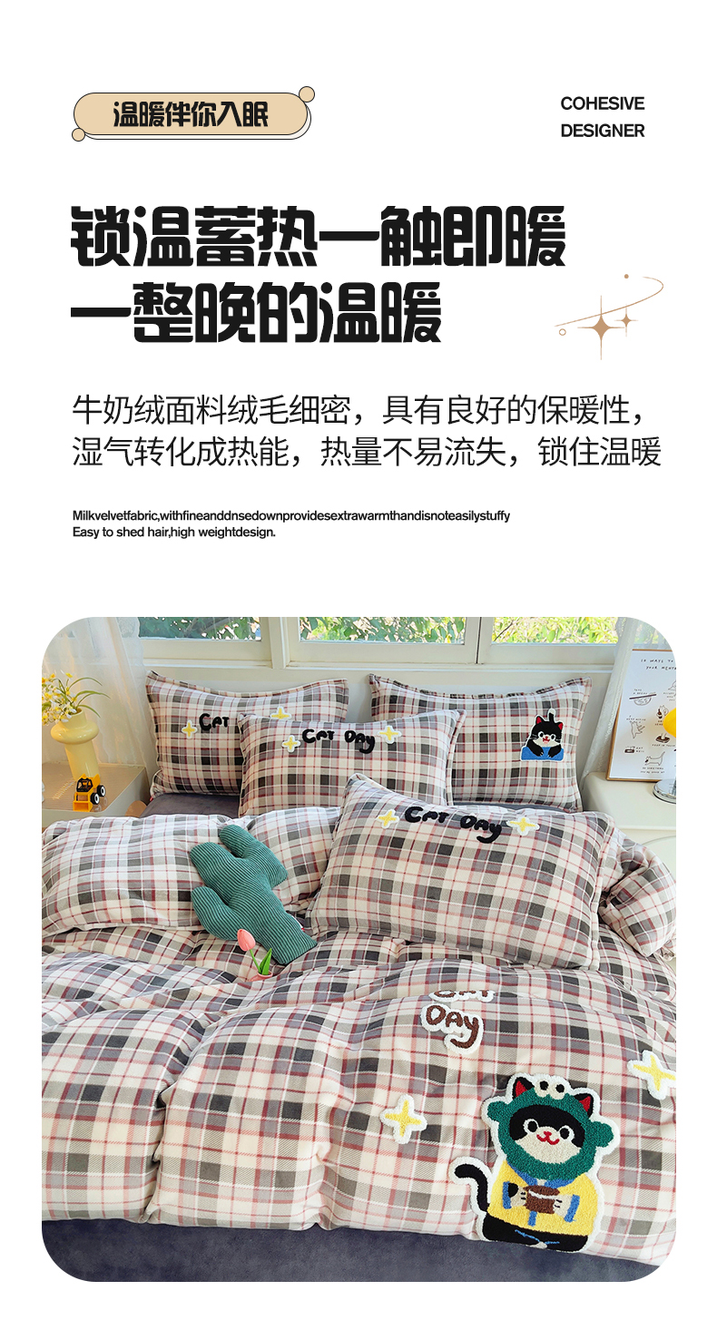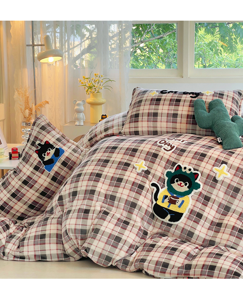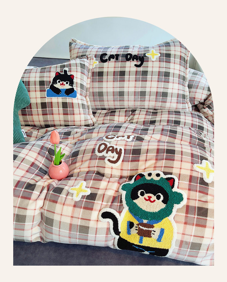 (总)炫拼家纺 2025新款高克重牛奶绒格子卡通毛巾绣加厚四件套-糖宝系列,糖宝-半勺清风,糖宝-喵了个咪,糖宝-甜豆女孩,糖宝-汪星日记,糖宝-星球萌宠,糖宝-元气小猪